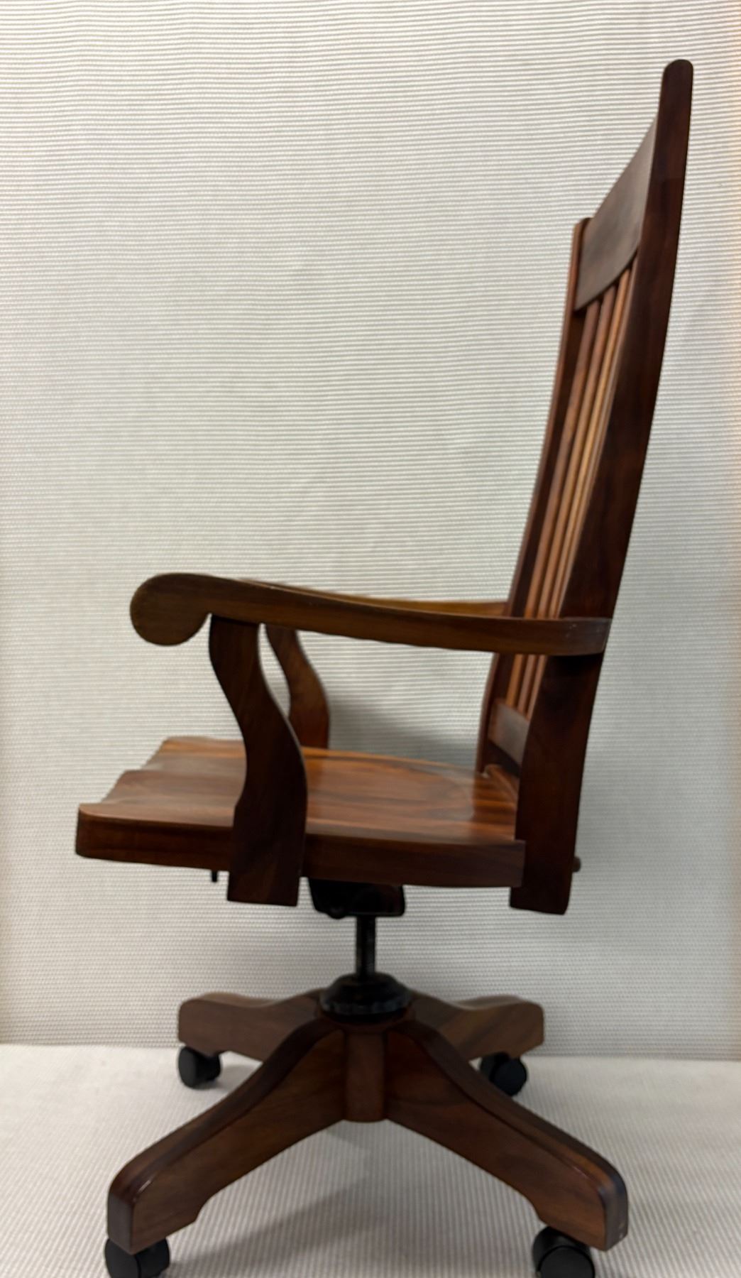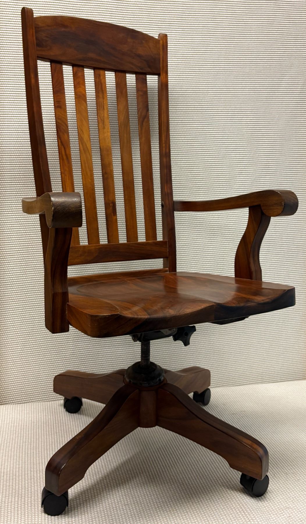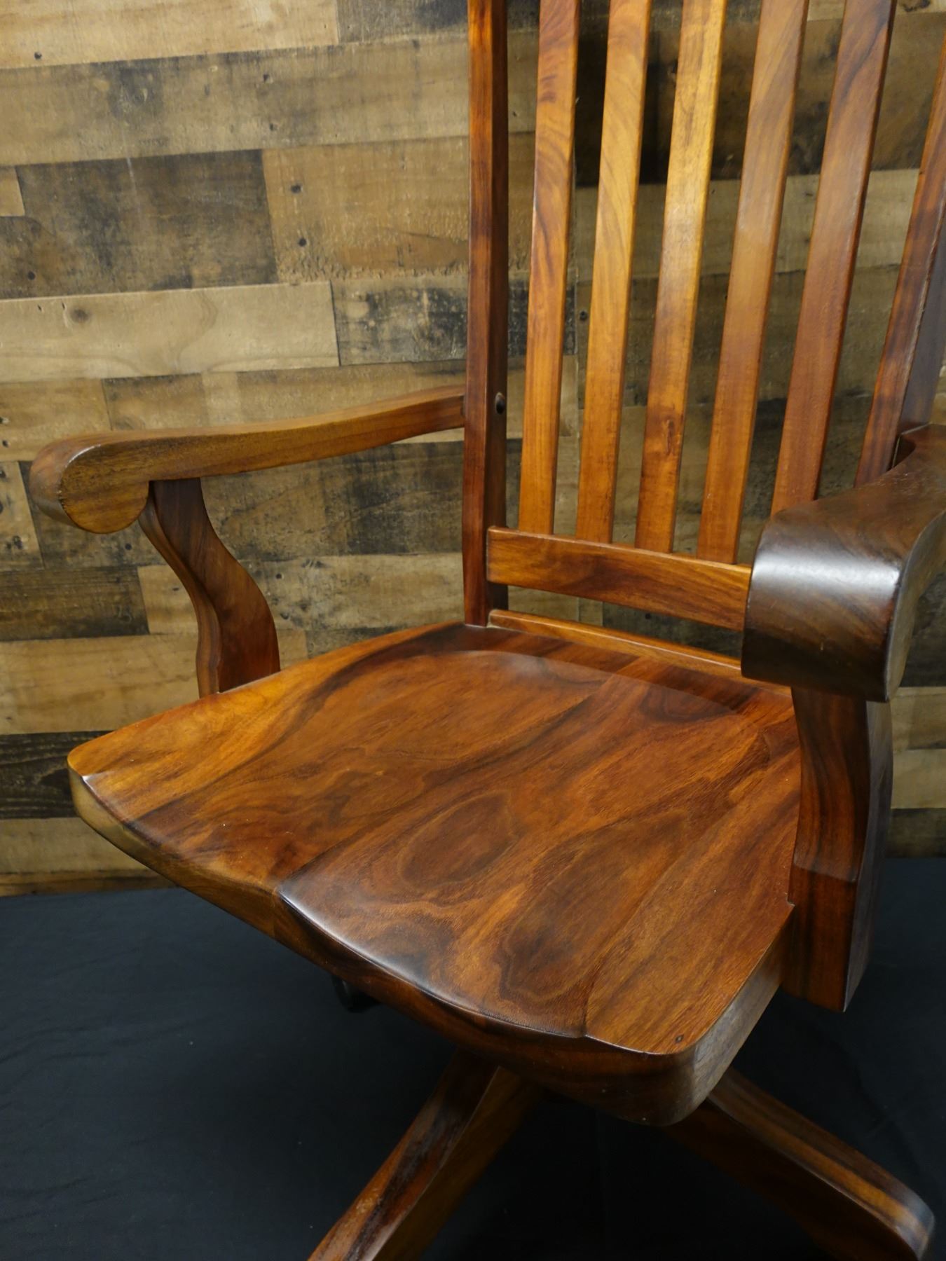 Martin & MacArthur Jim Jones Koa Wood High Back Executive Swing Chair 24" x 18" x 47"H. Was purchased from Martin & MacArthur for $1762 in 1988.