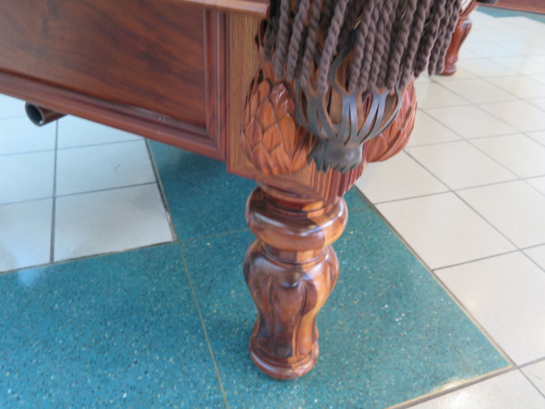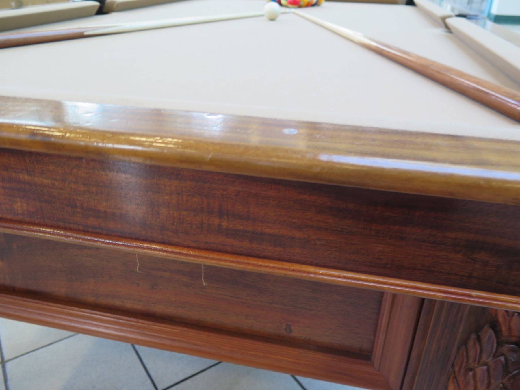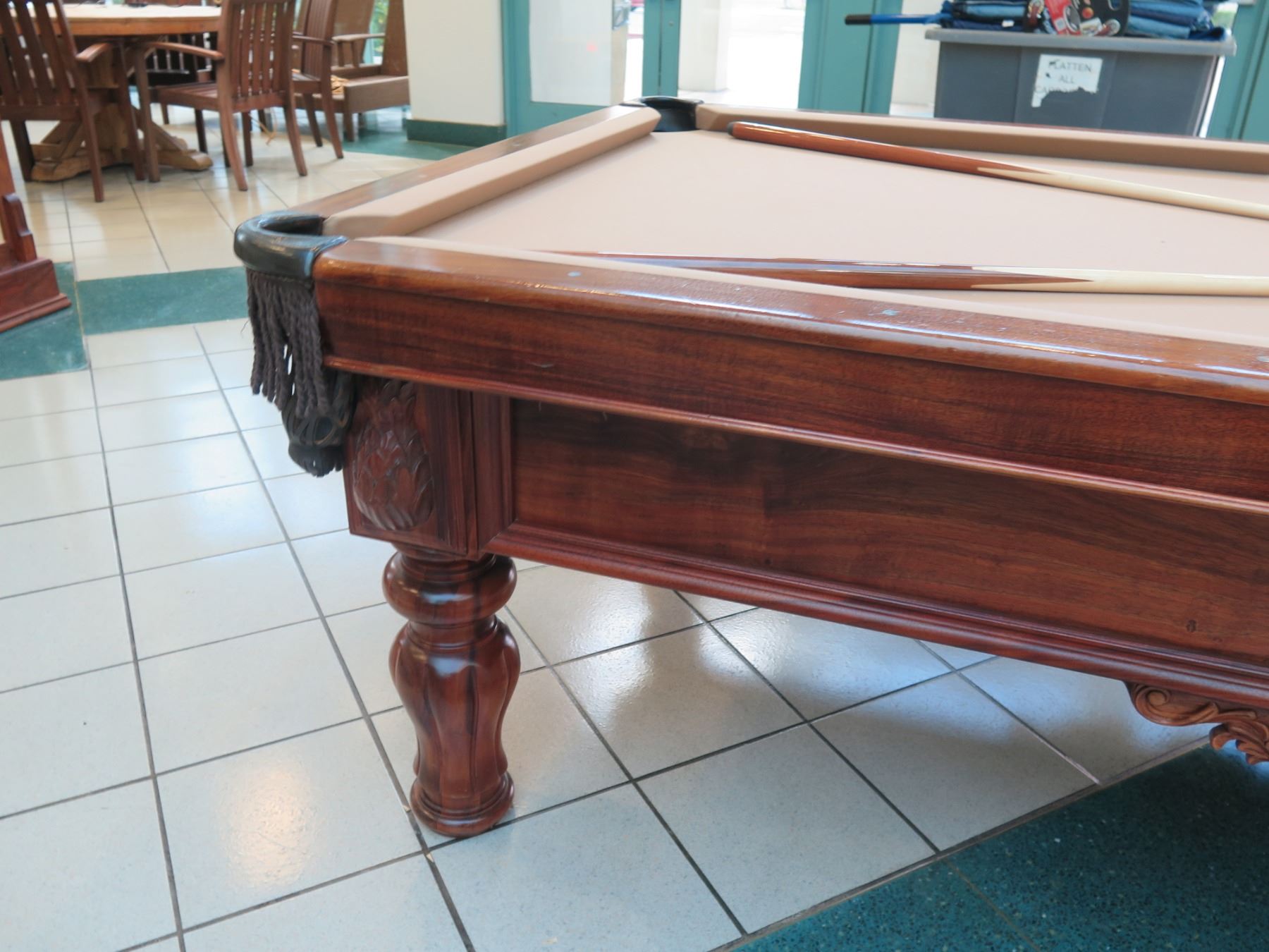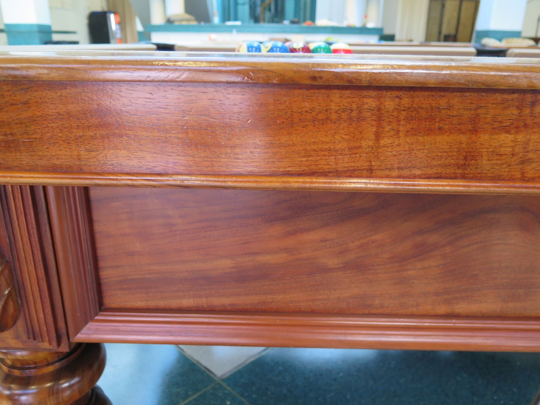 Martin & MacArthur Koa Wood Billiards Table w/ Original Italian Slate & Carved Details 97"x53"x32"