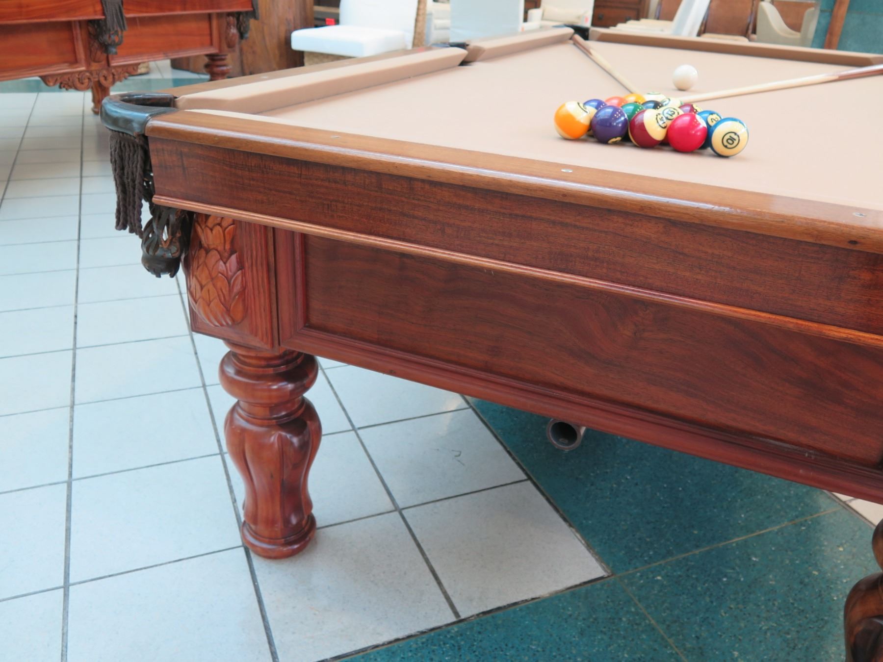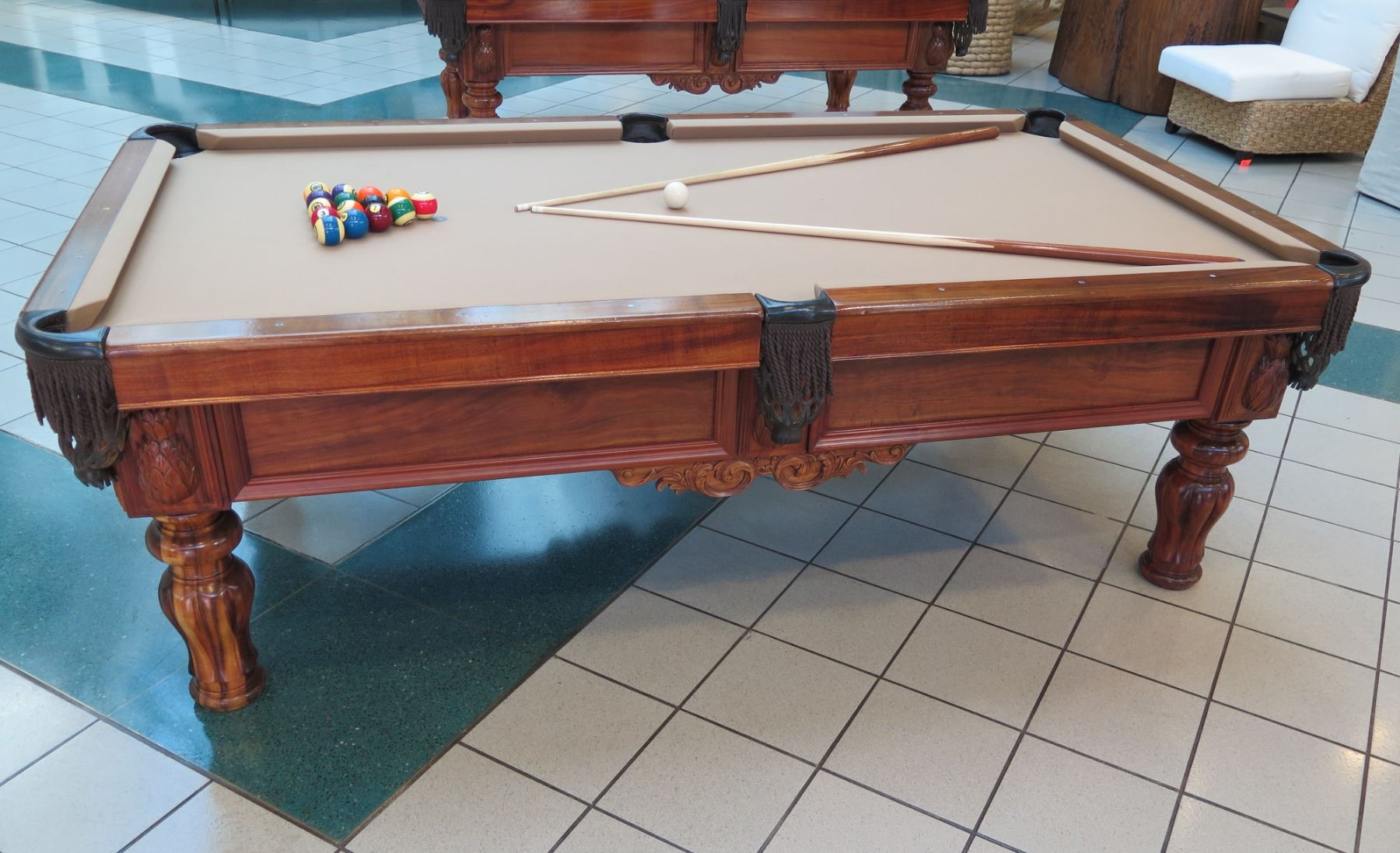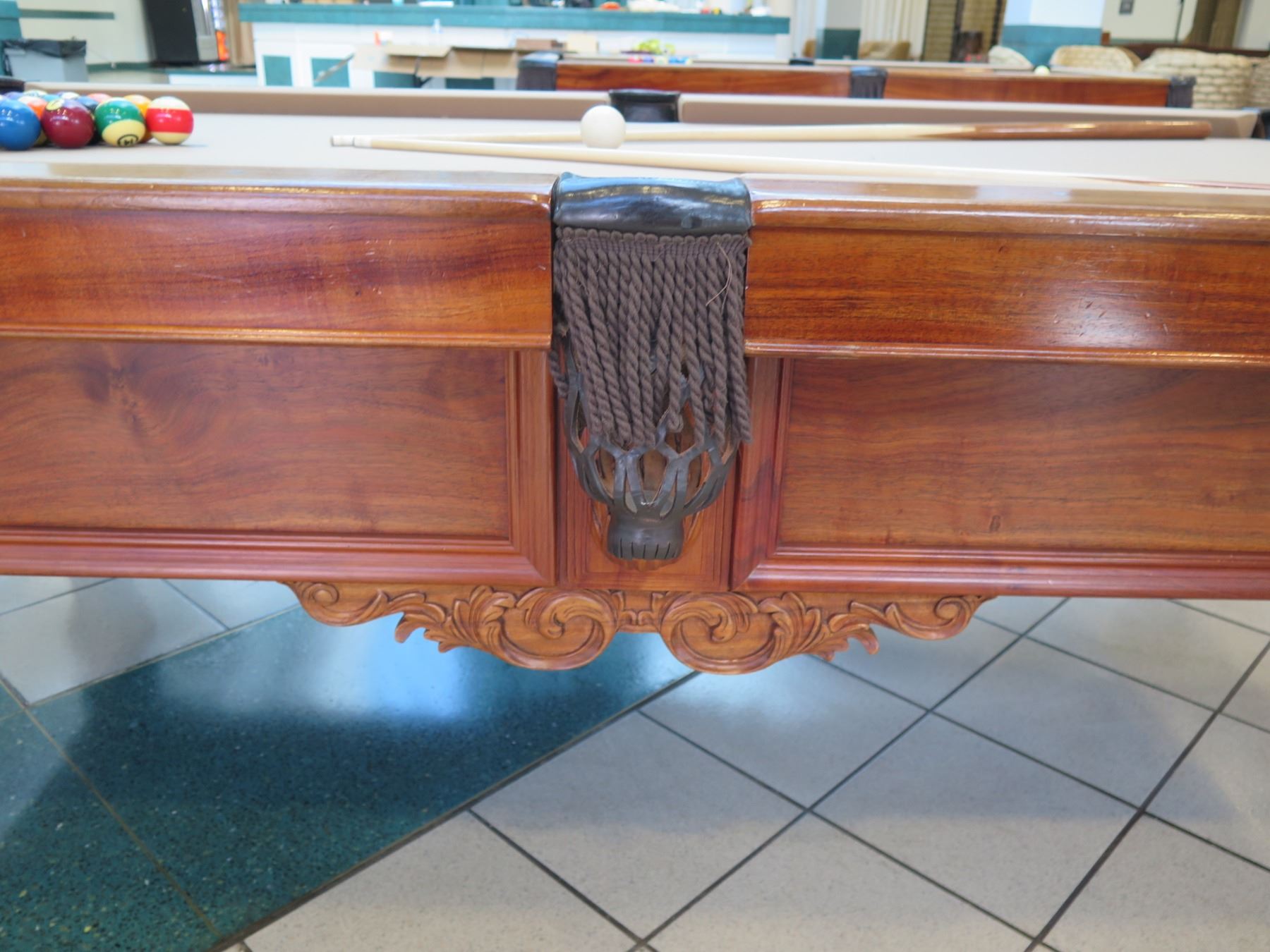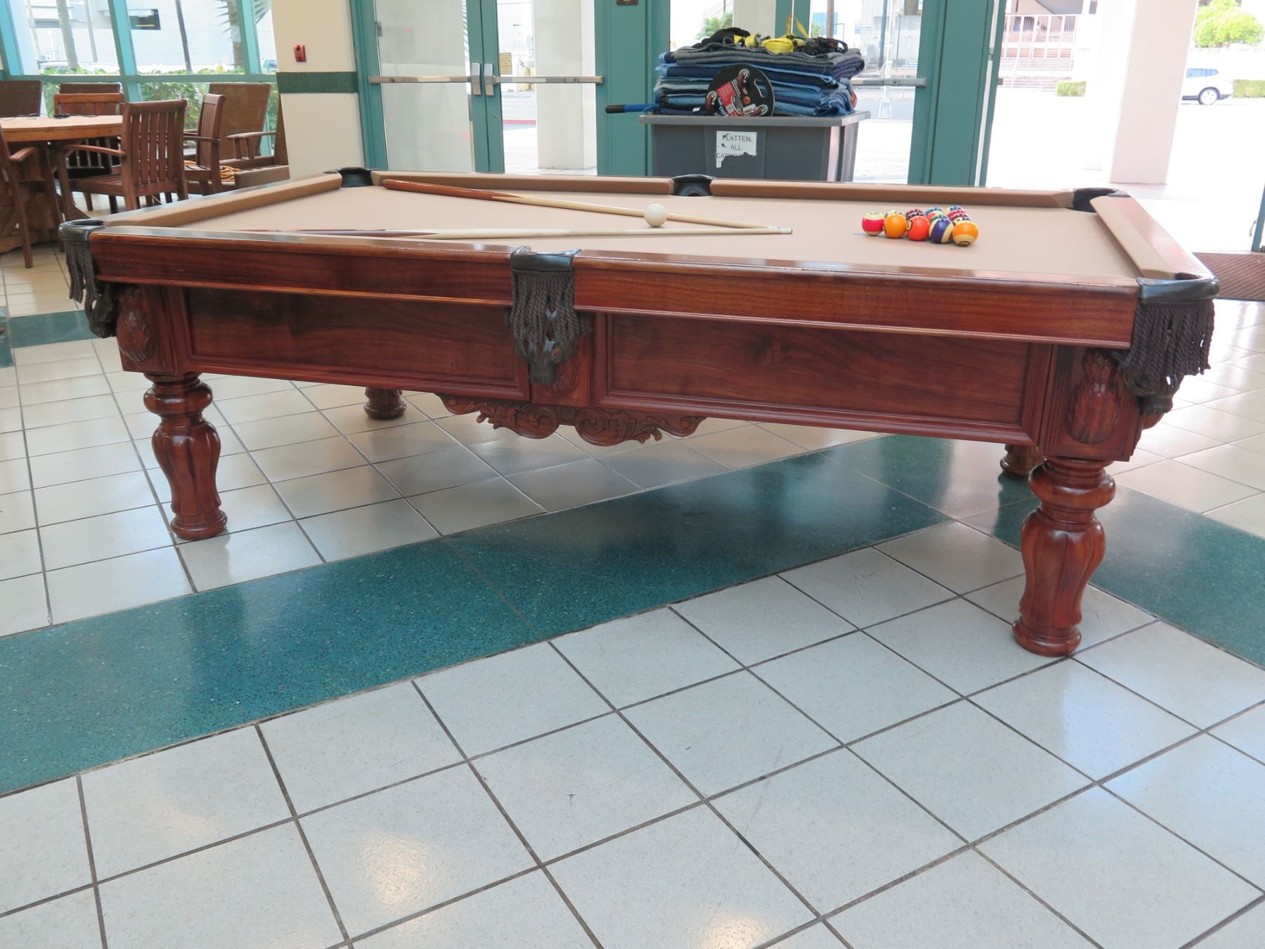 Martin & MacArthur Koa Wood Billiards Table w/ Original Italian Slate & Carved Details 97"x53"x32"