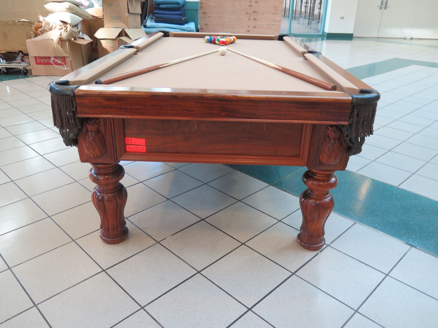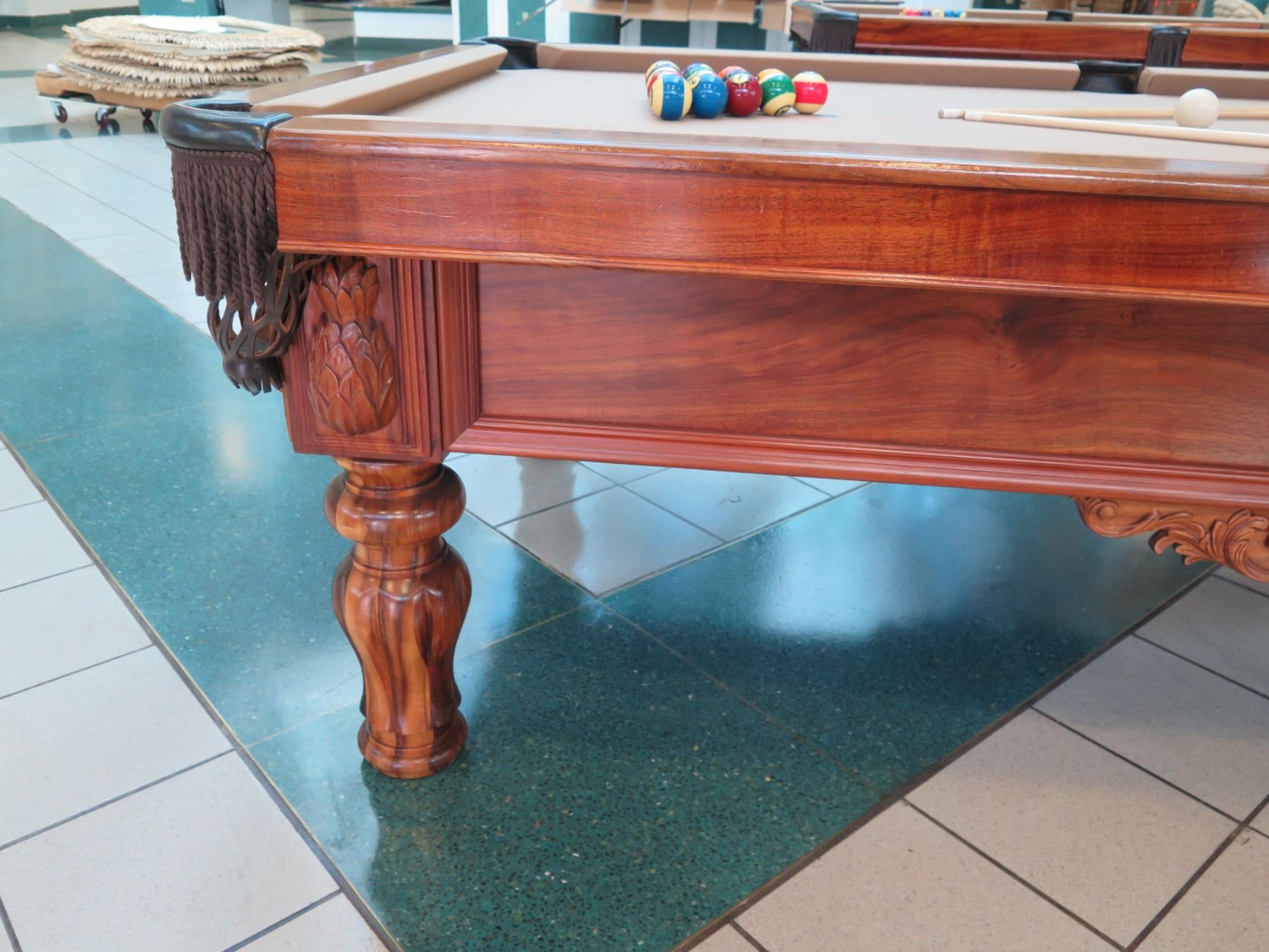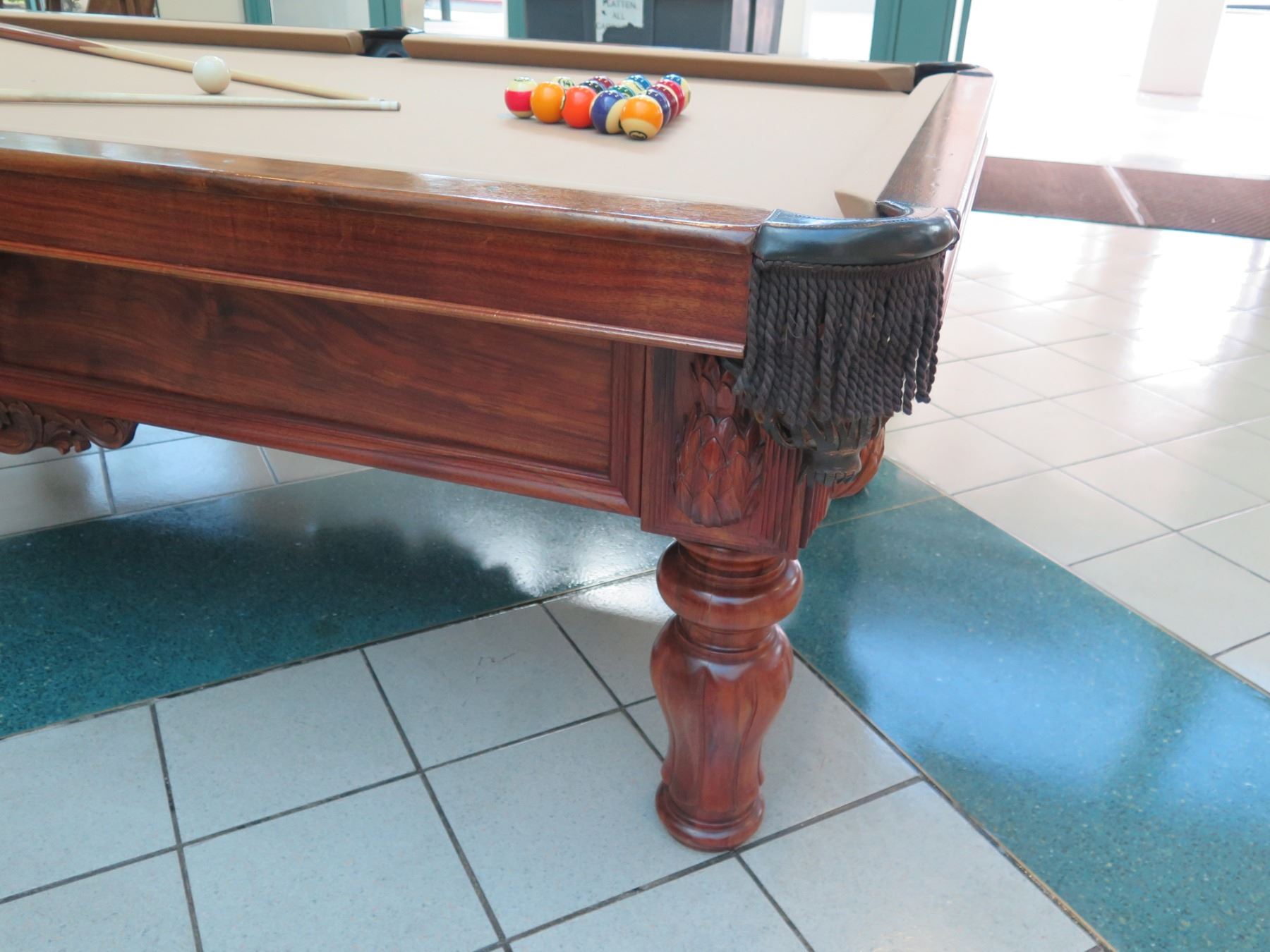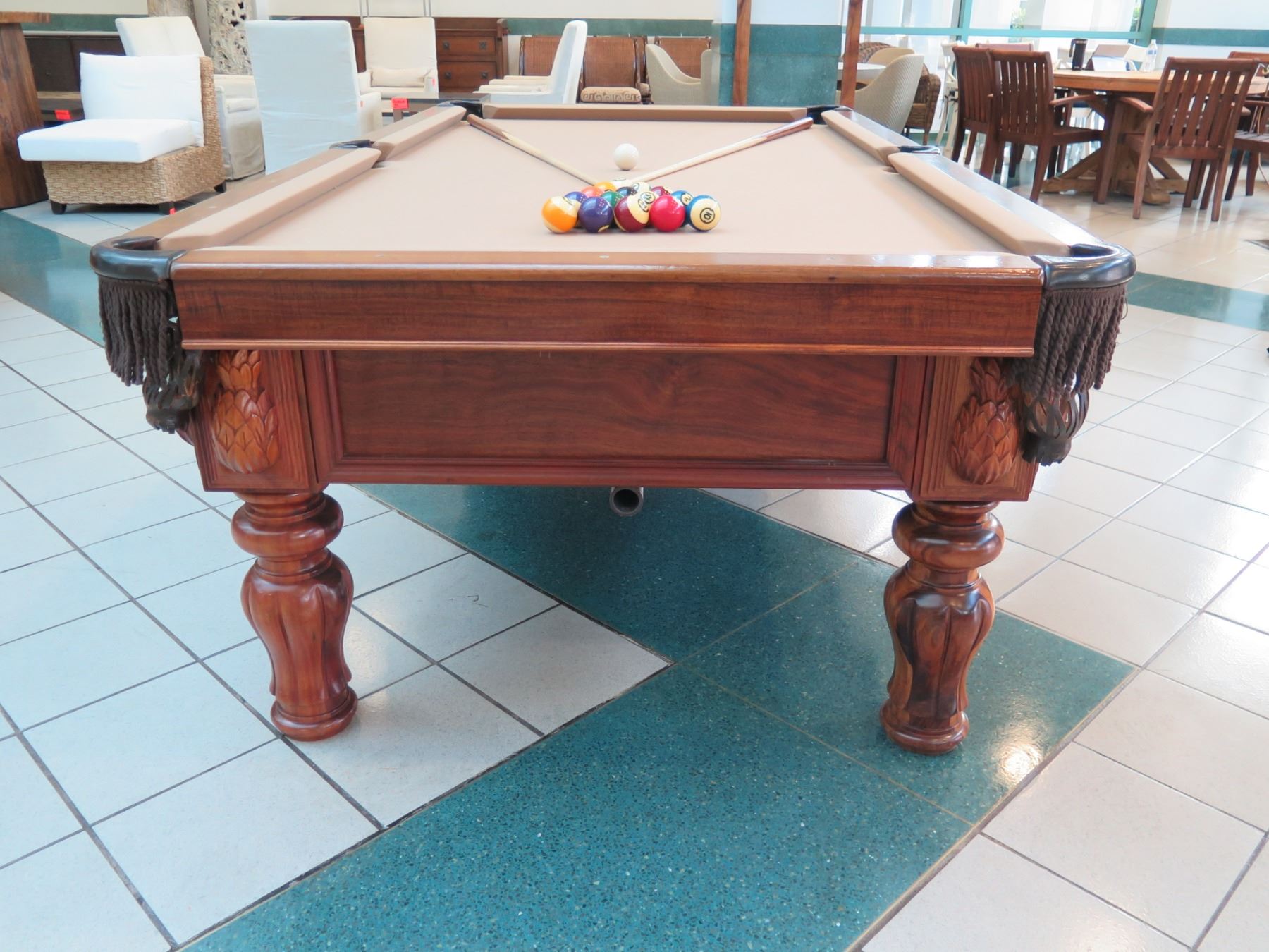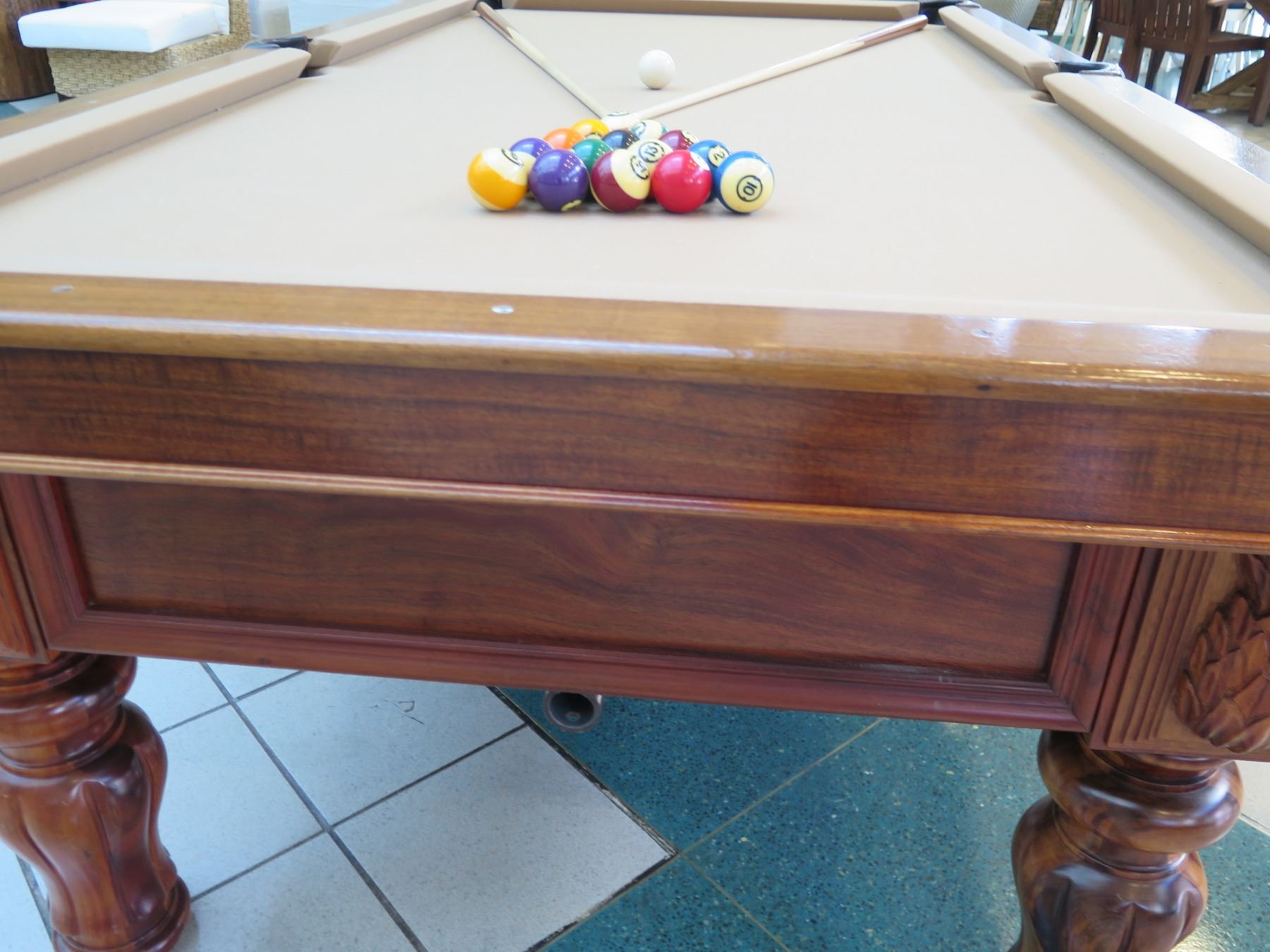 Martin & MacArthur Koa Wood Billiards Table w/ Original Italian Slate & Carved Details 97"x53"x32"