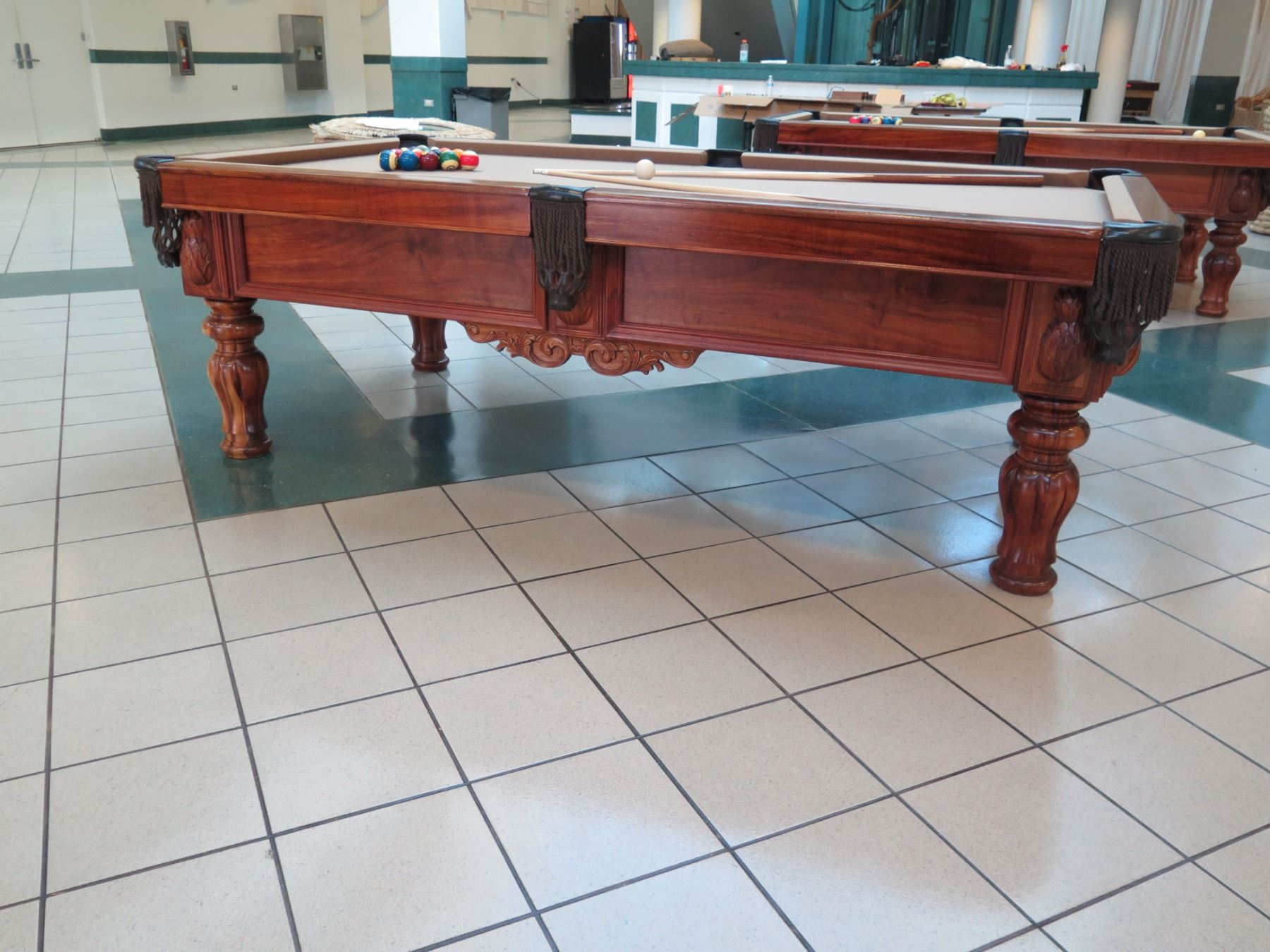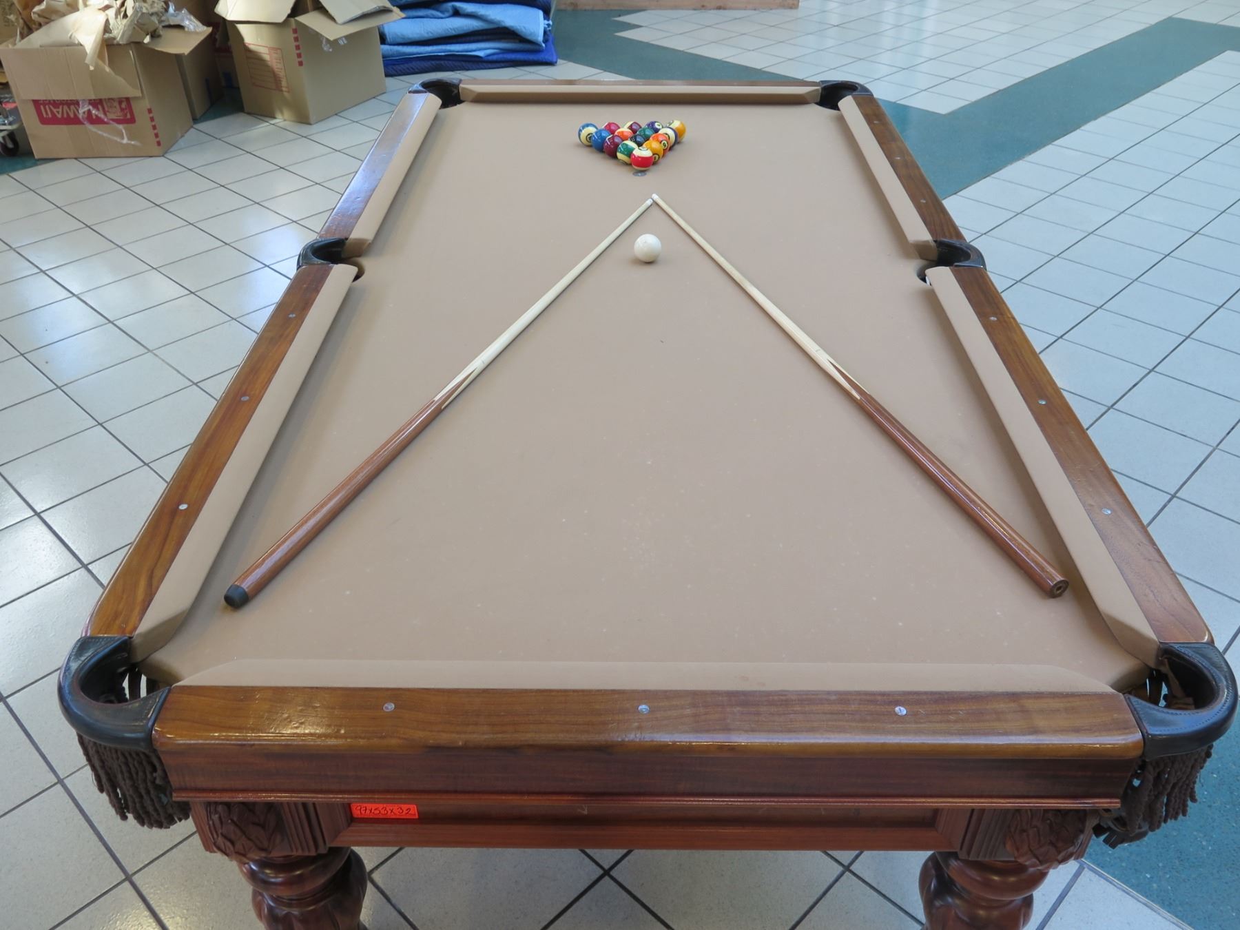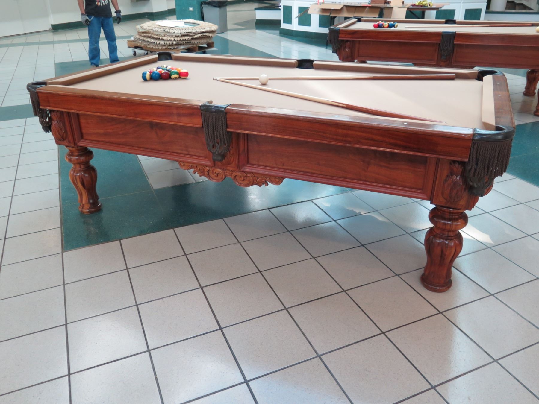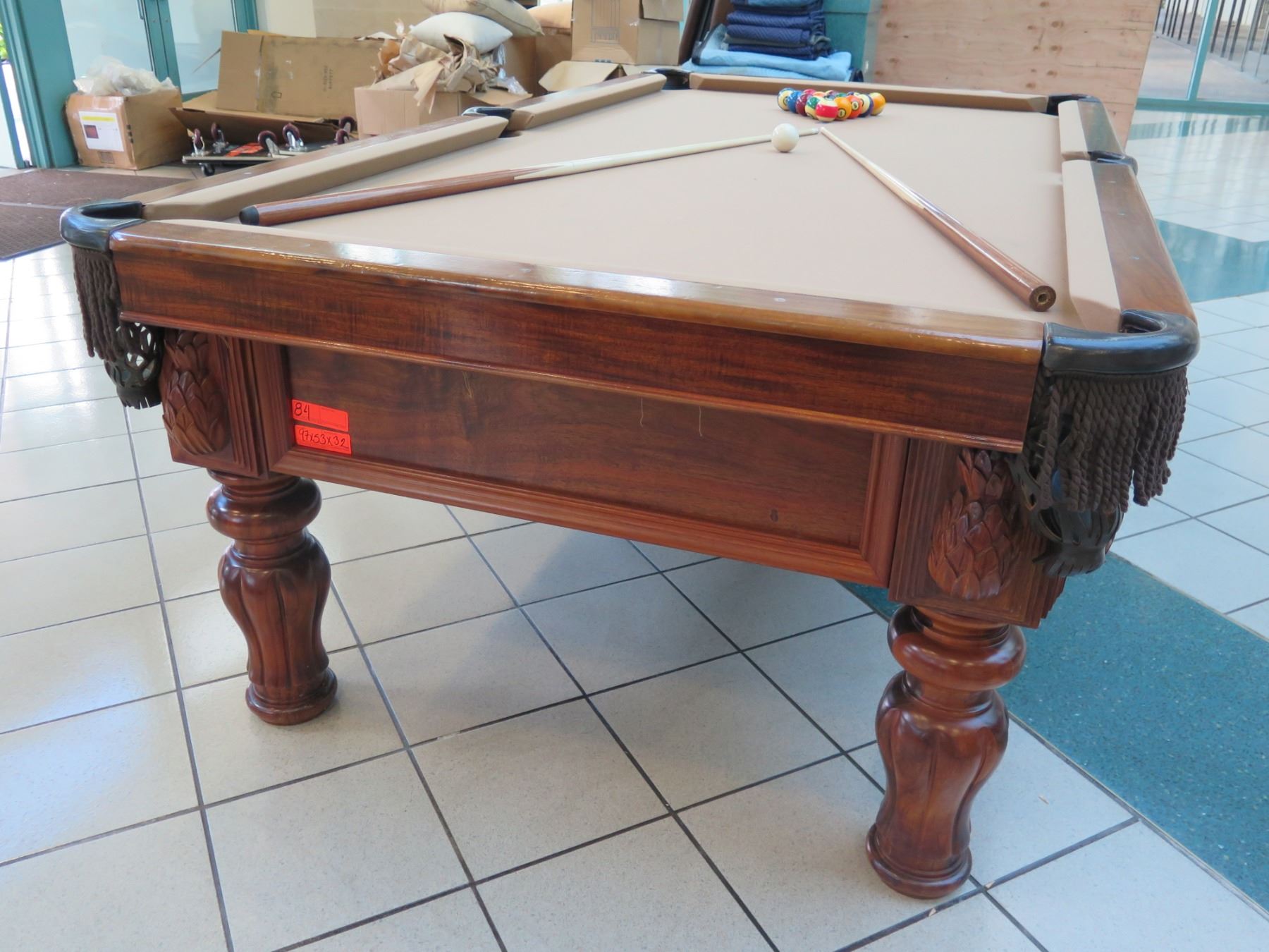 Martin & MacArthur Koa Wood Billiards Table w/ Original Italian Slate & Carved Details 97"x53"x32"