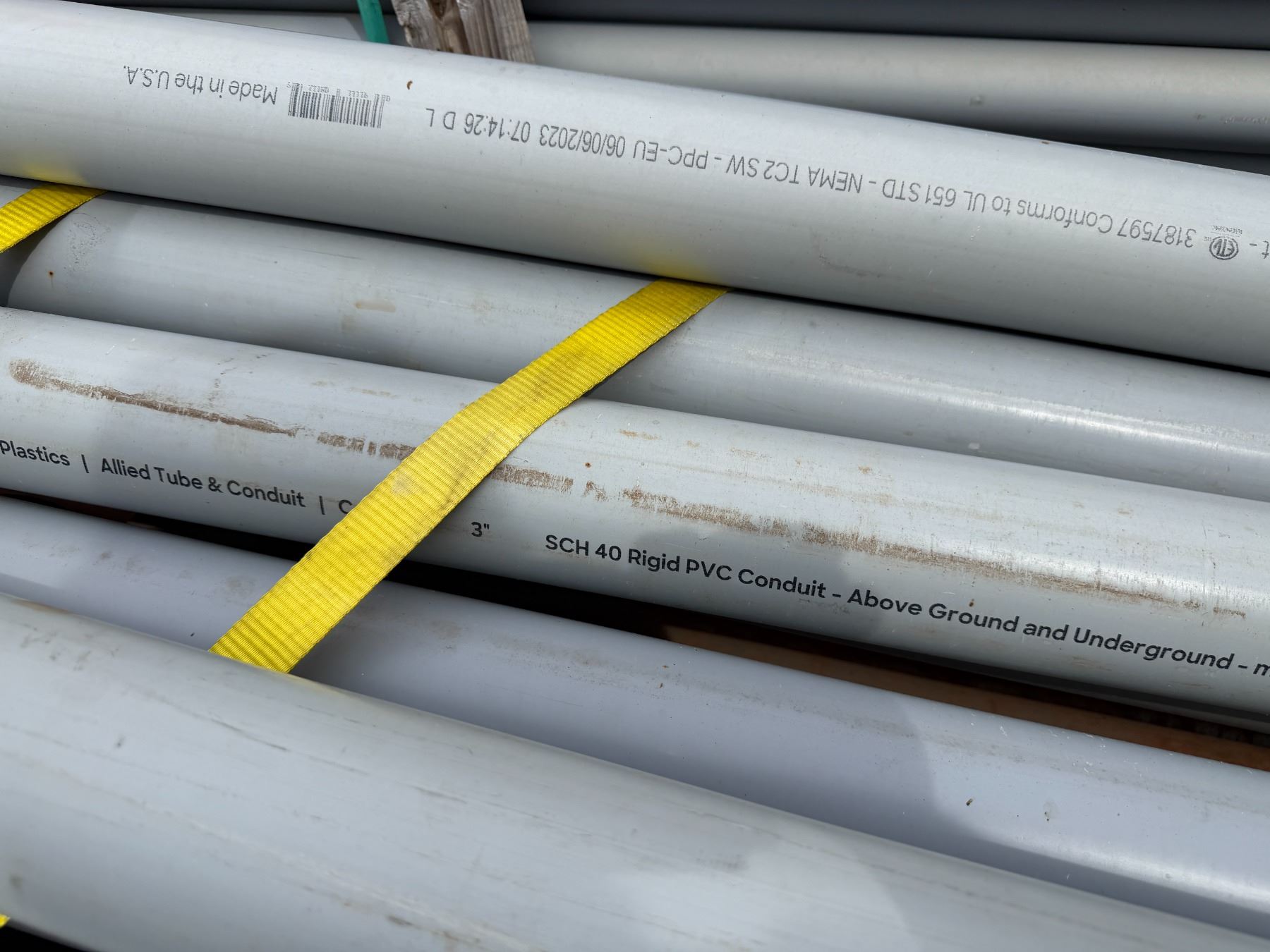 Massive Lot of Conduit Pipe approx. 971 Pieces, 10-ft lengths, 2"–3", Metal & Plastic.