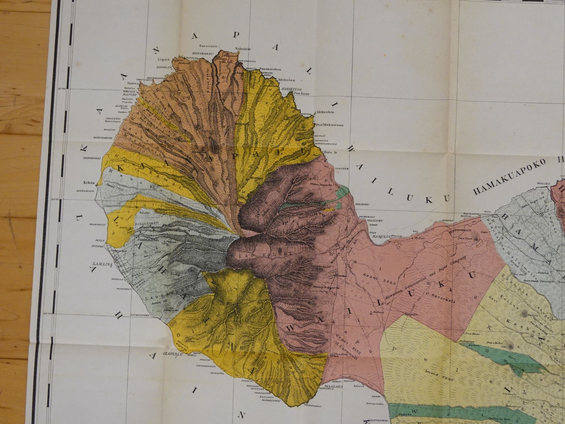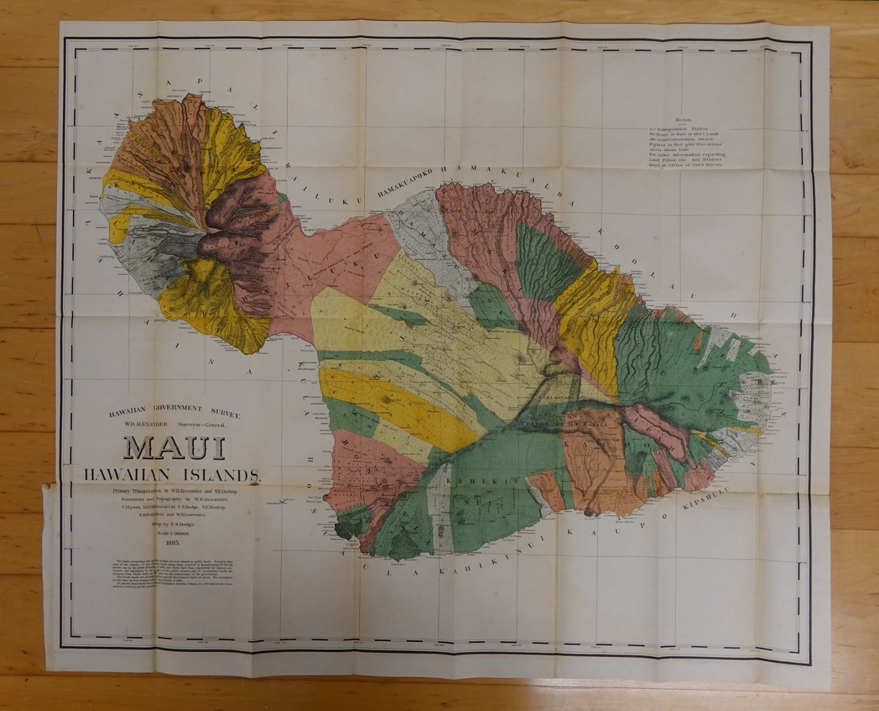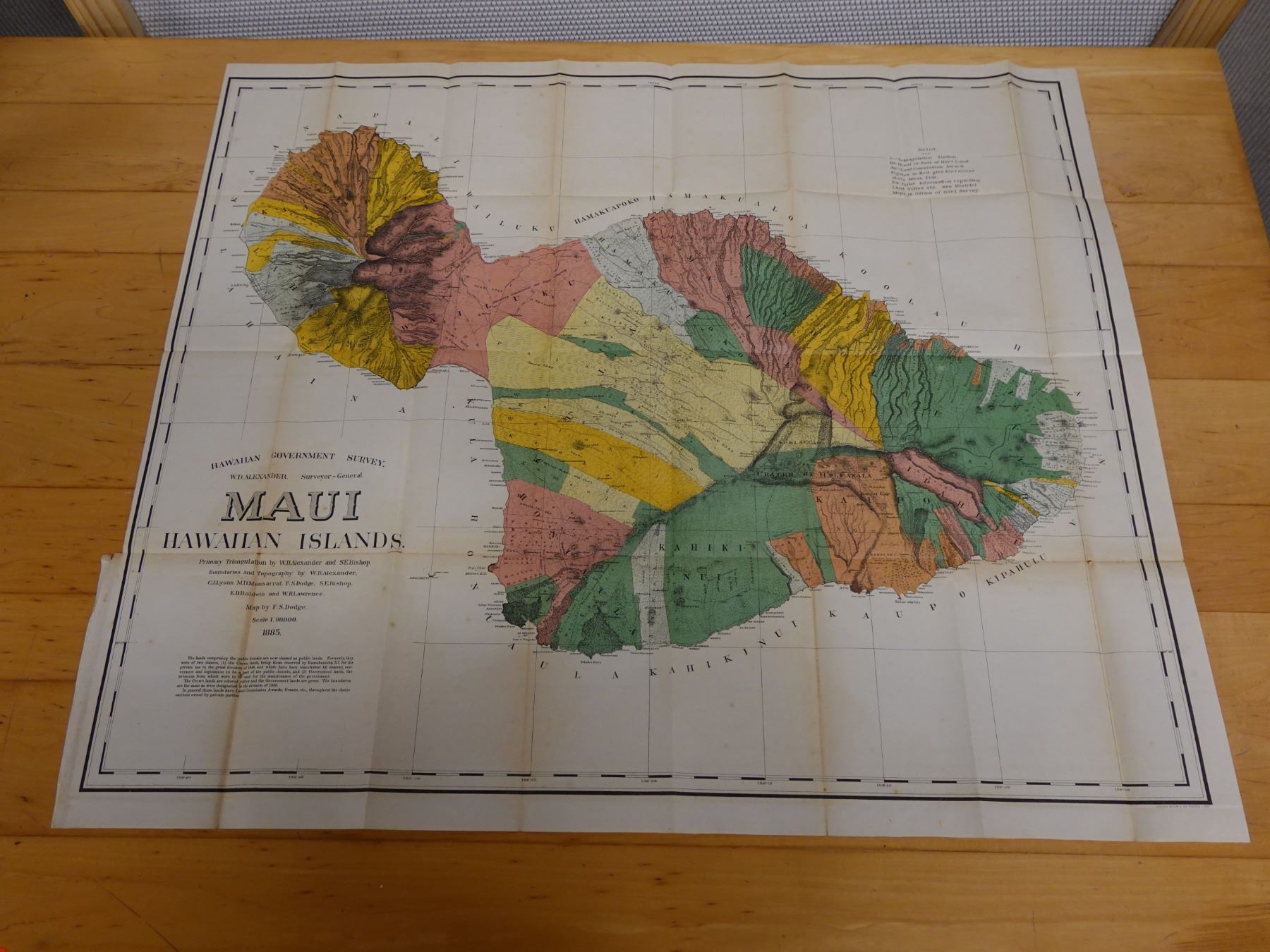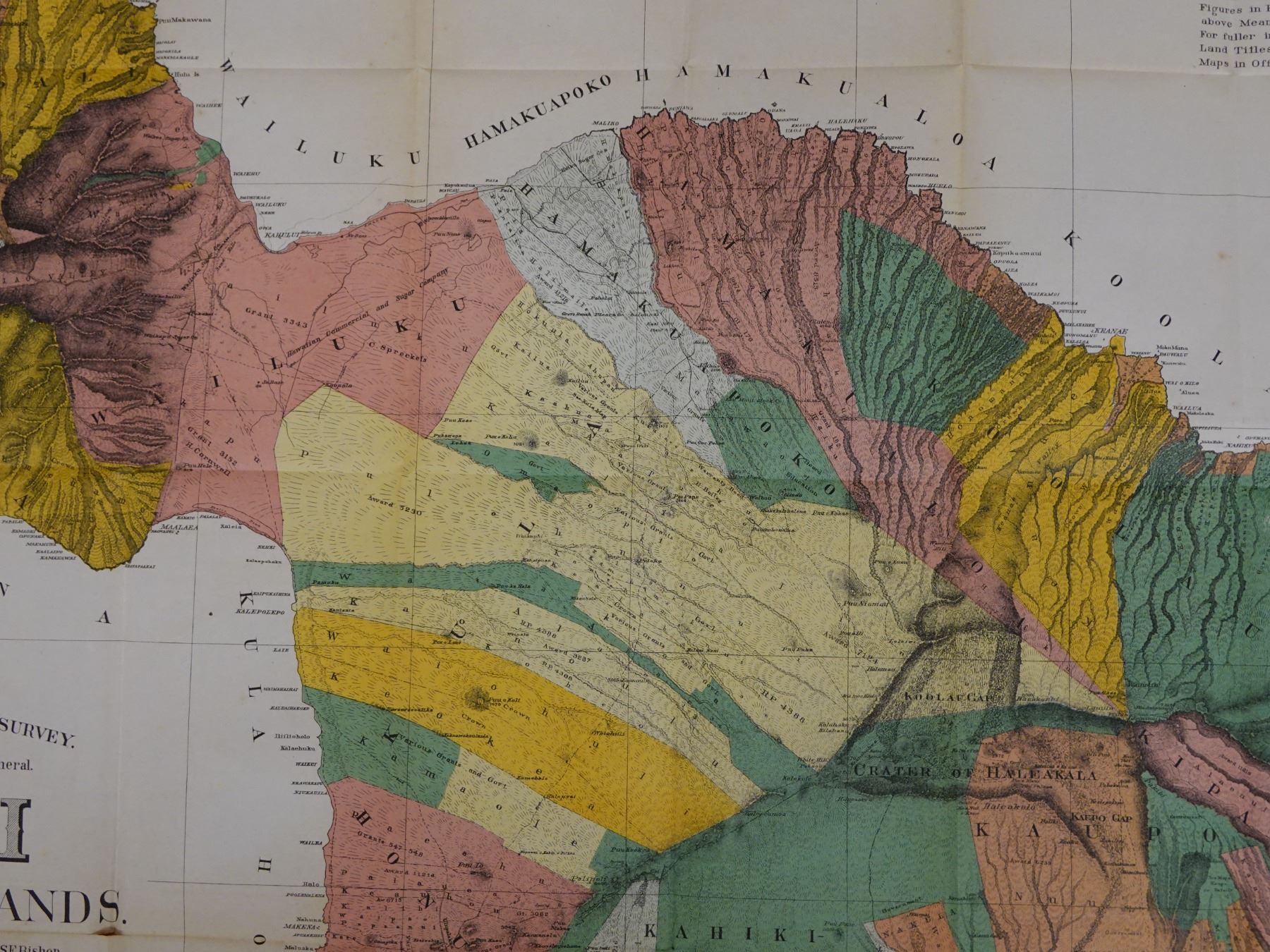Maui Hawaiian Islands Territorial Map Lithograph Dated 1885, Unframed 37" x 32"
