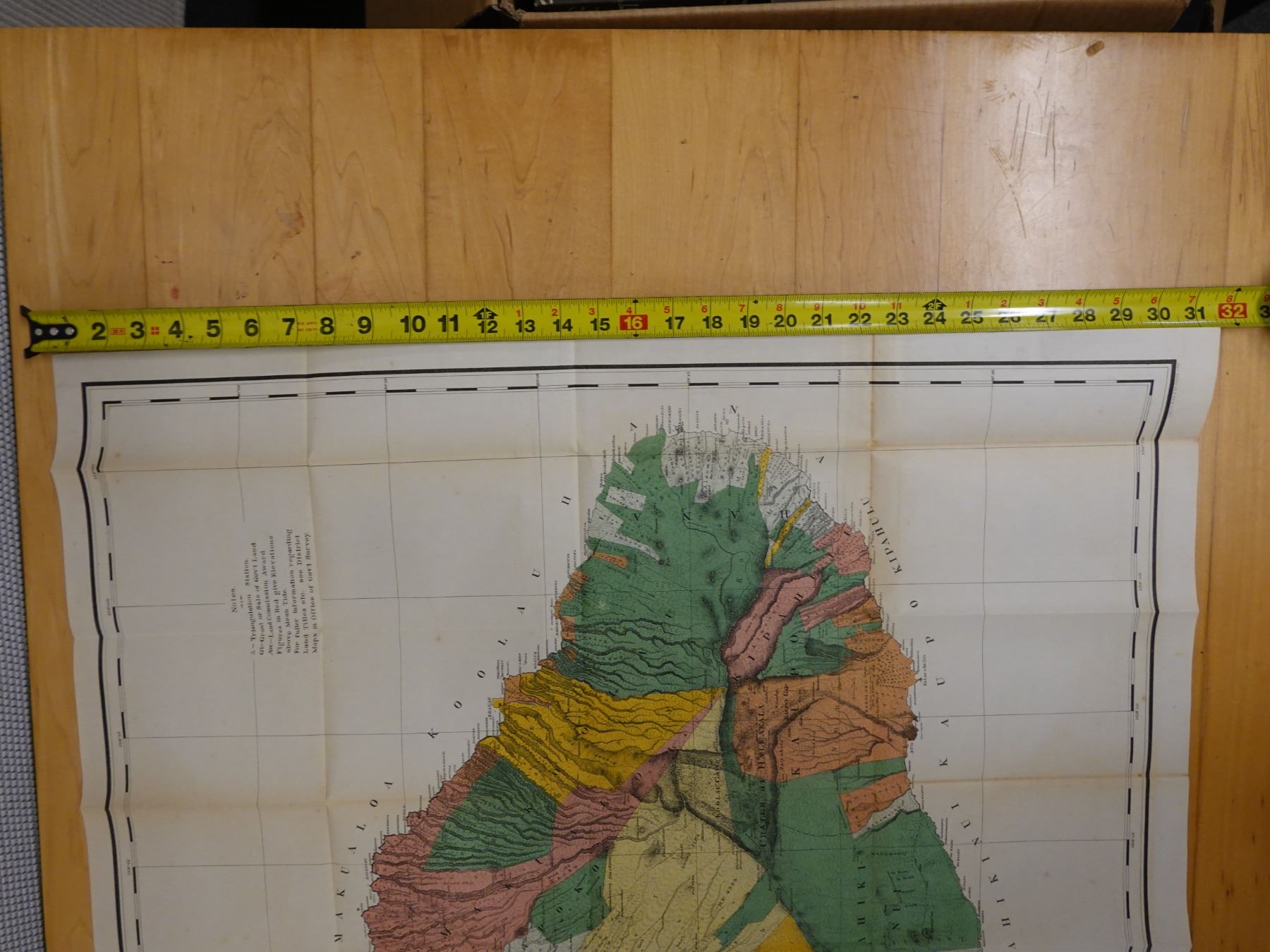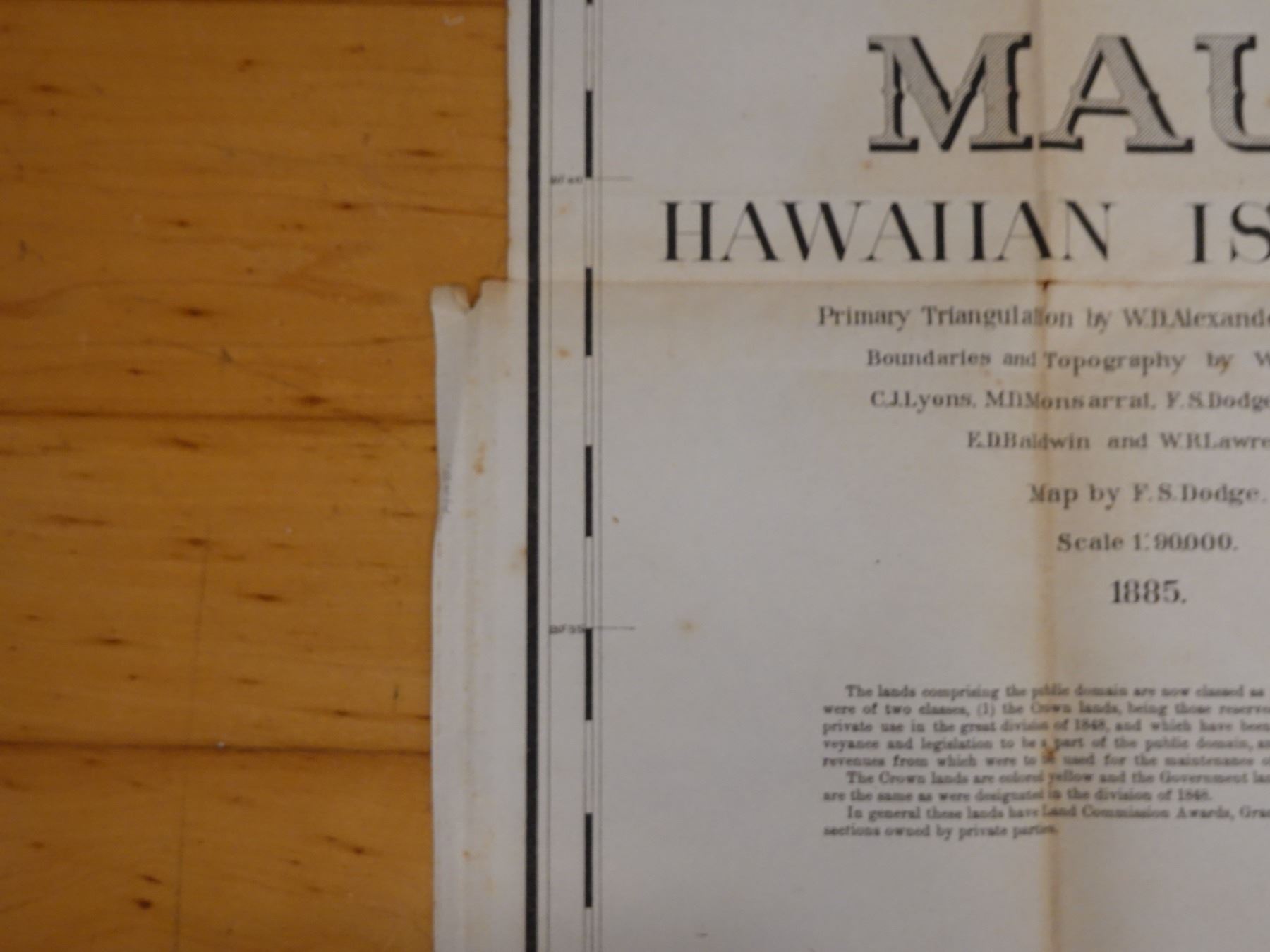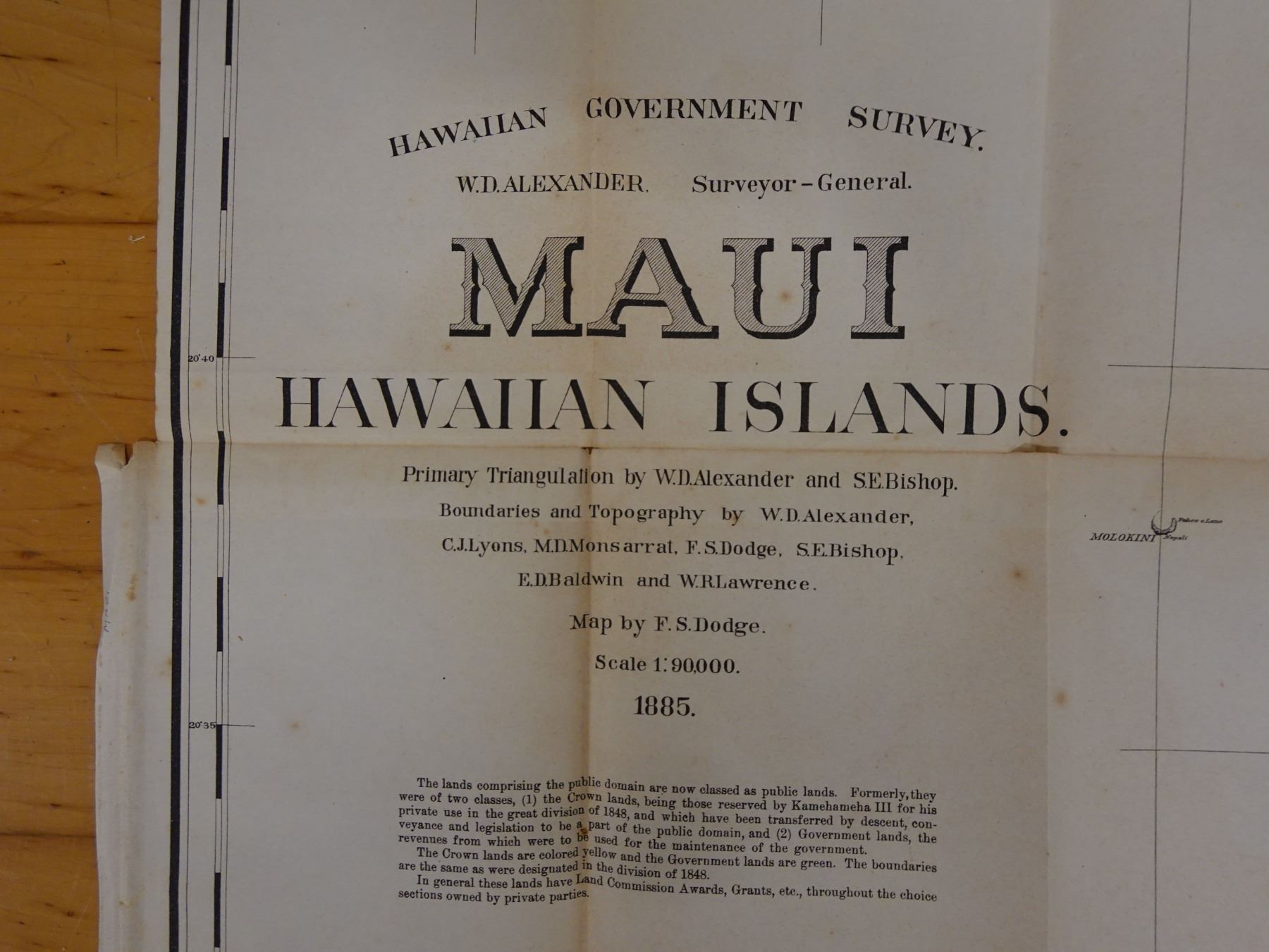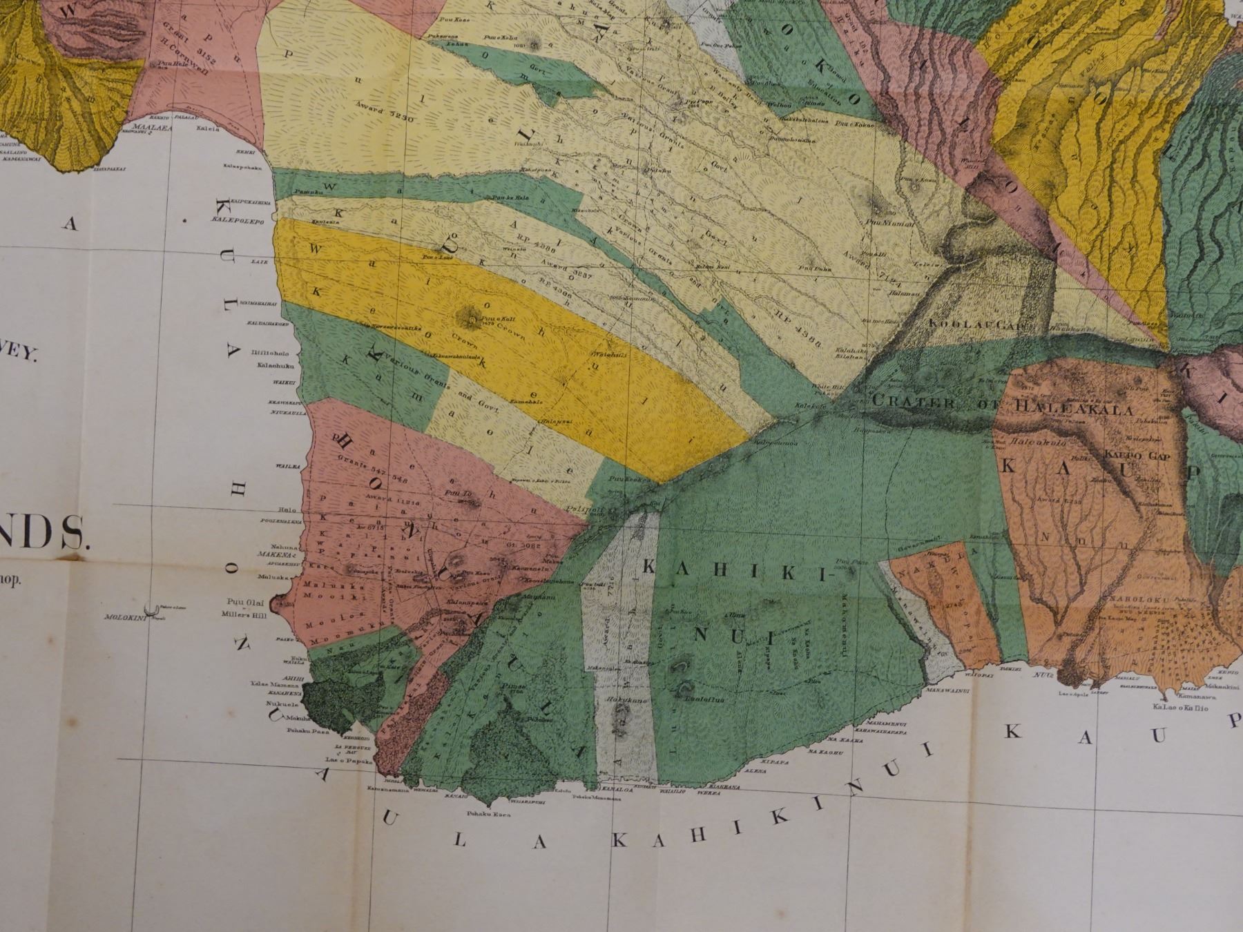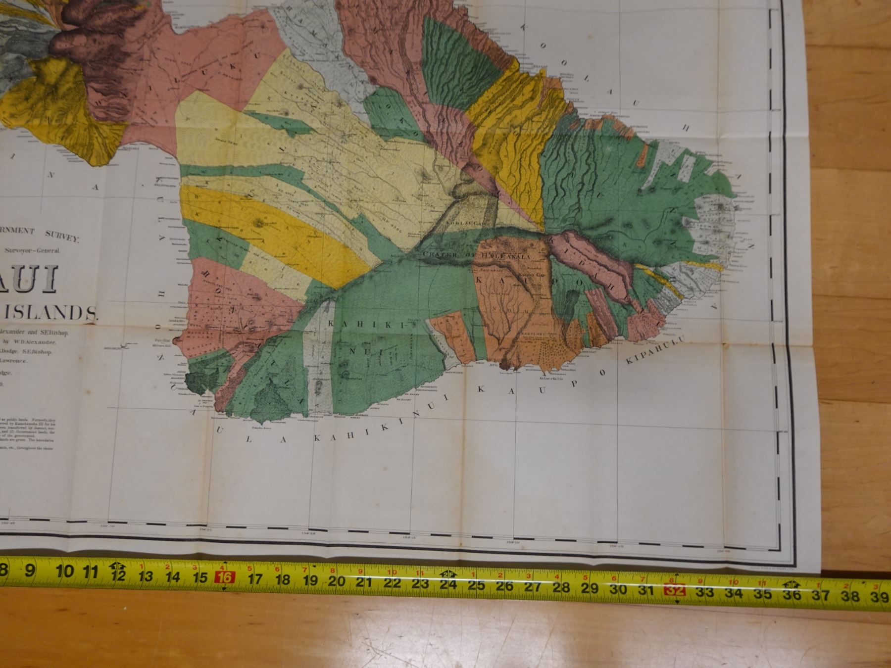 Maui Hawaiian Islands Territorial Map Lithograph Dated 1885, Unframed 37" x 32"