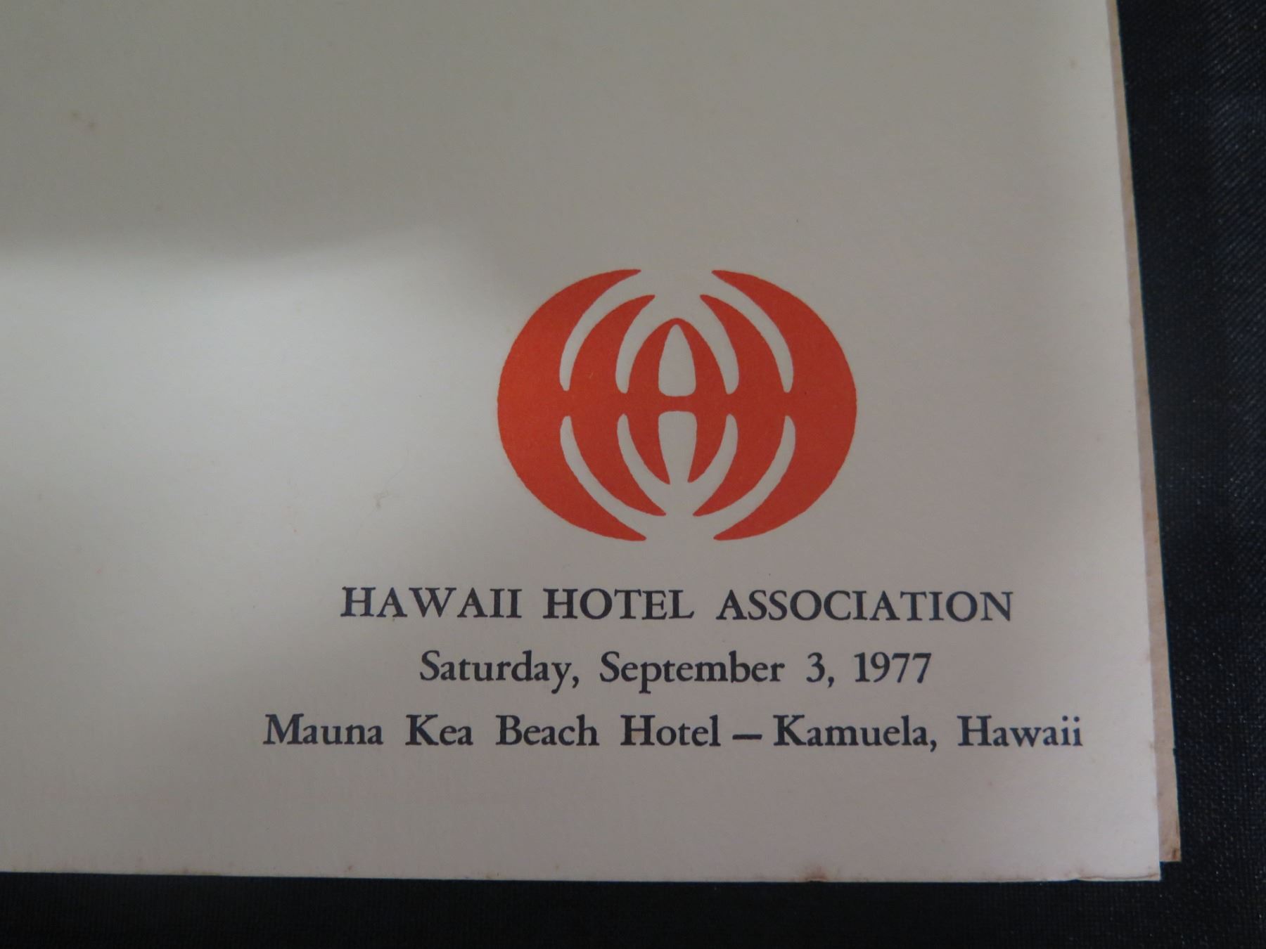 Mauna Kea Beach Hotel Kamuela Hawaii Hotel Association Menu, 1977, 17"x8.5"