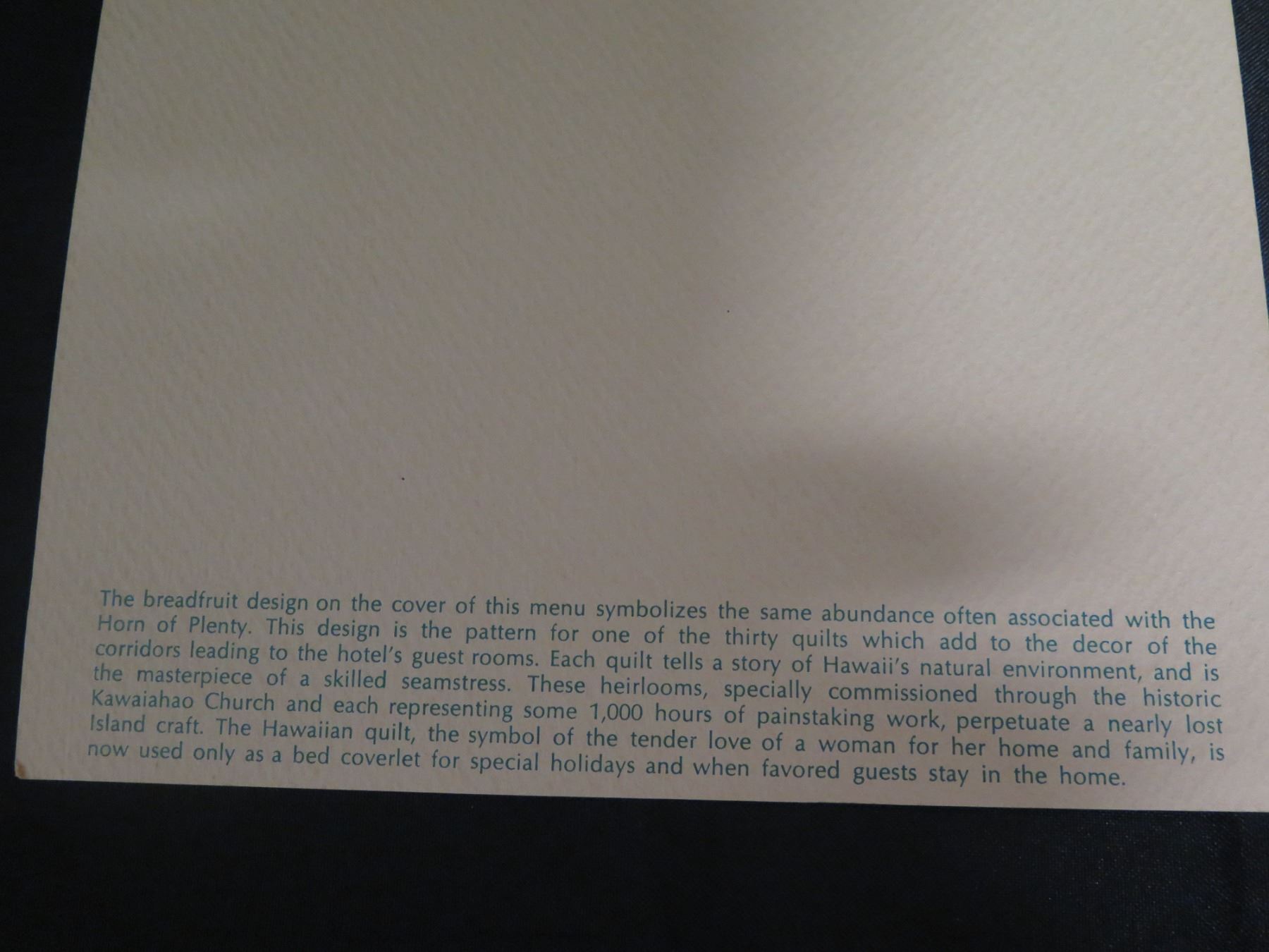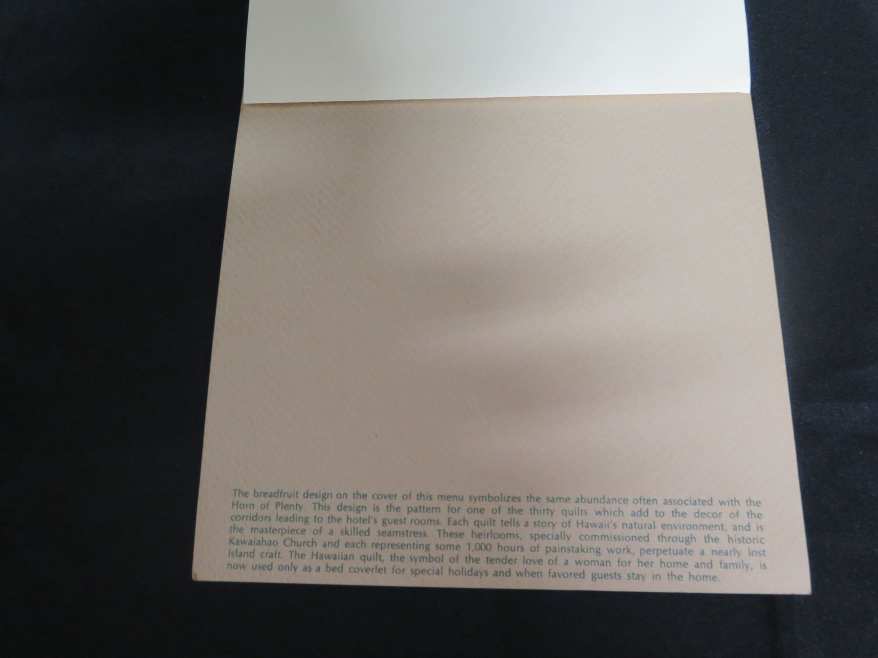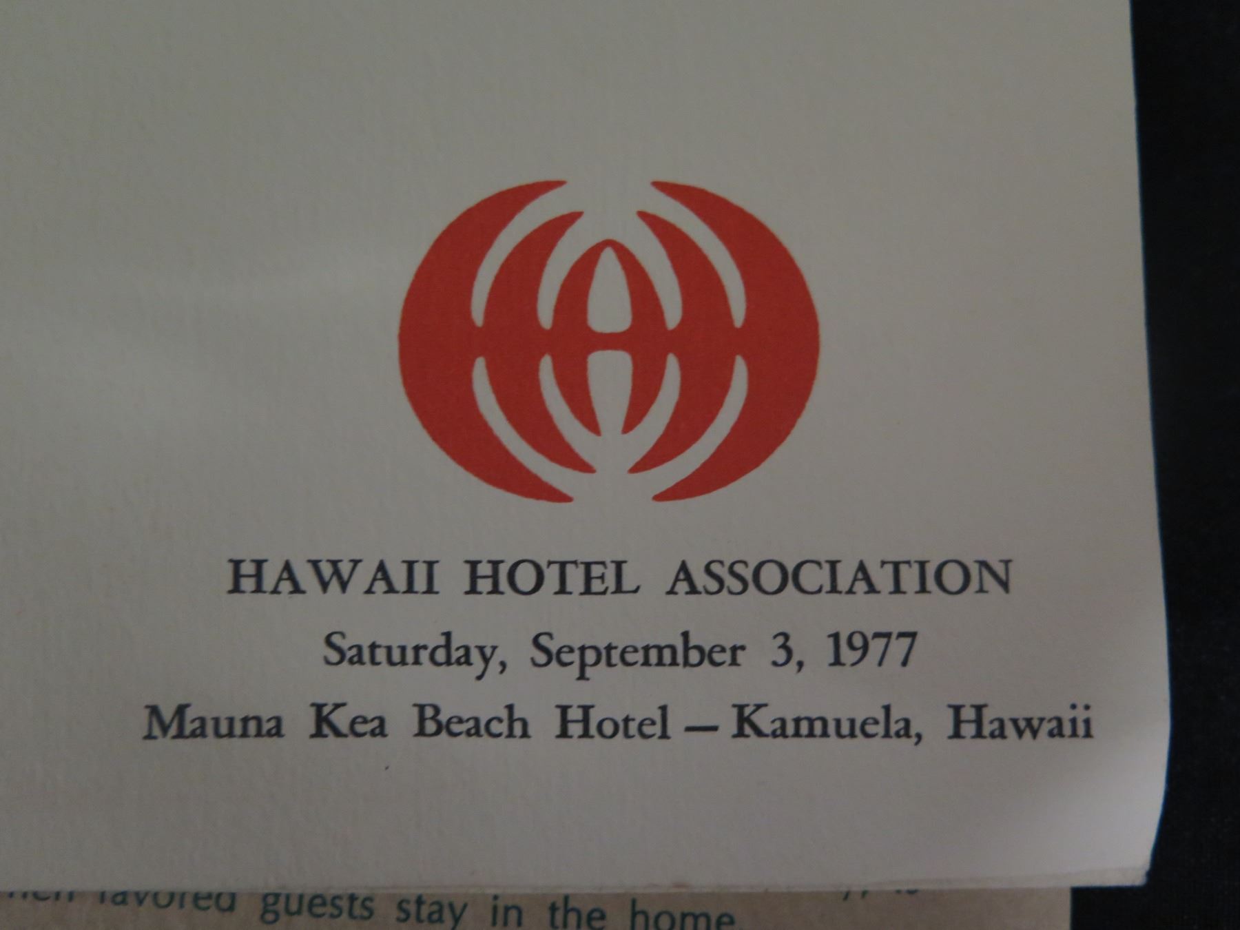 Mauna Kea Beach Hotel Kamuela Hawaii Hotel Association Menu, 1977, 17"x8.5"
