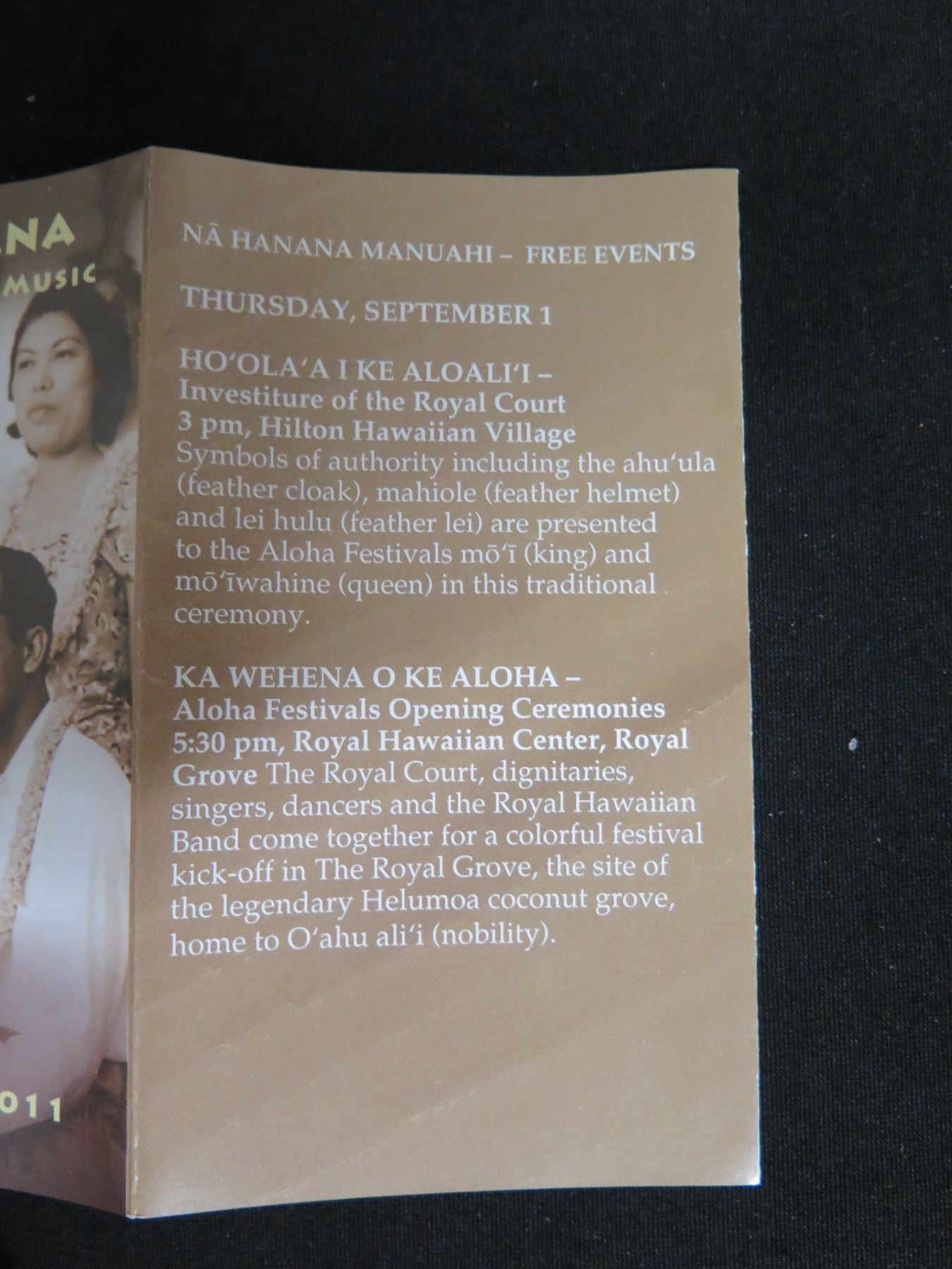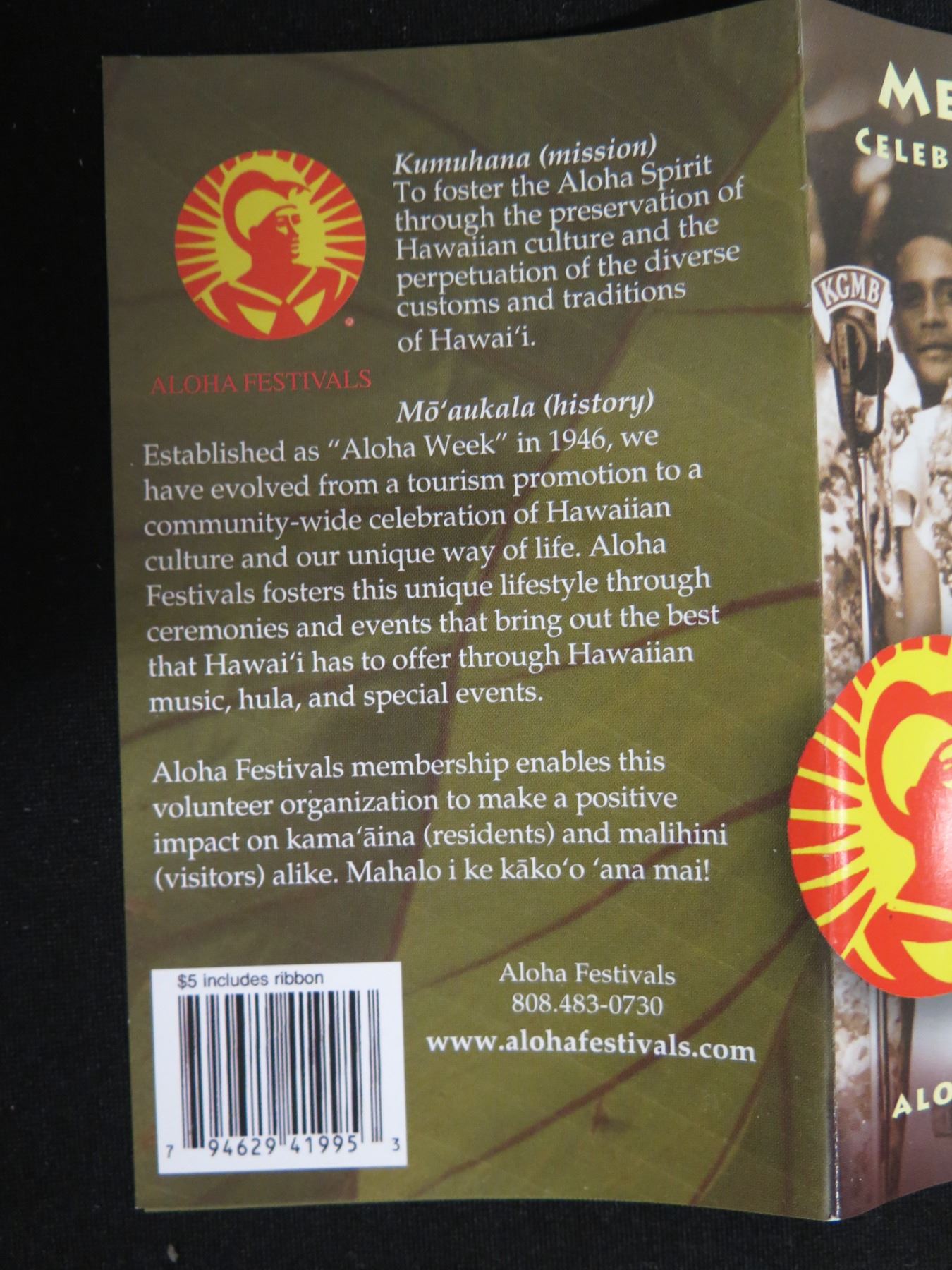 Mele 'Ailana Aloha Festivals 2011 Program & Ribbon