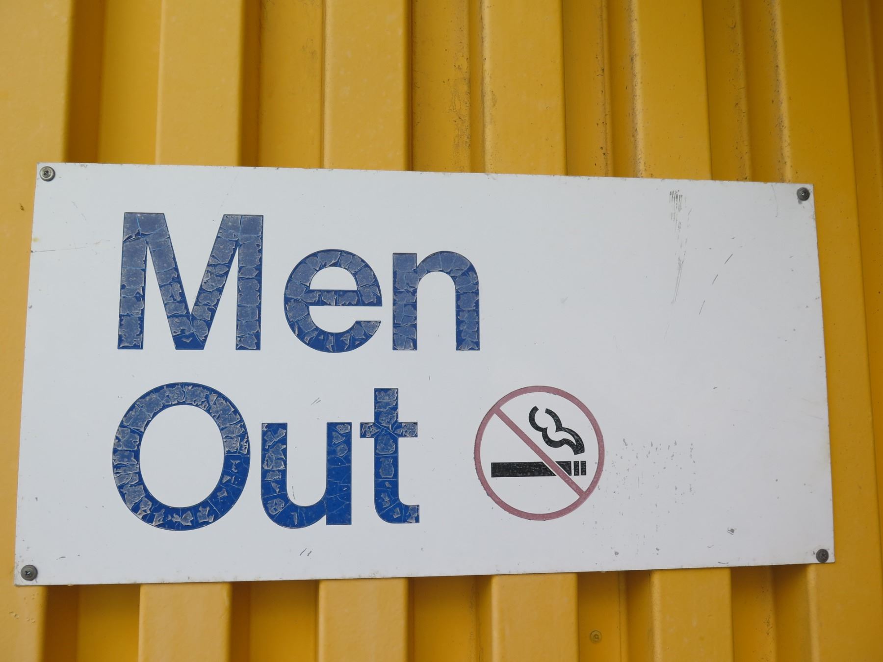 Men Out Sign w/ No Smoking Logo 24"x12". Note: Signs will be removed if hanging prior to pick up