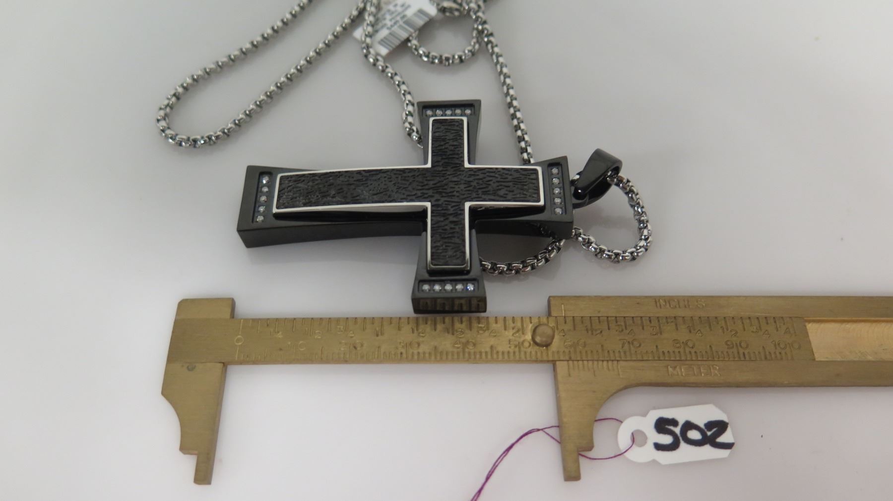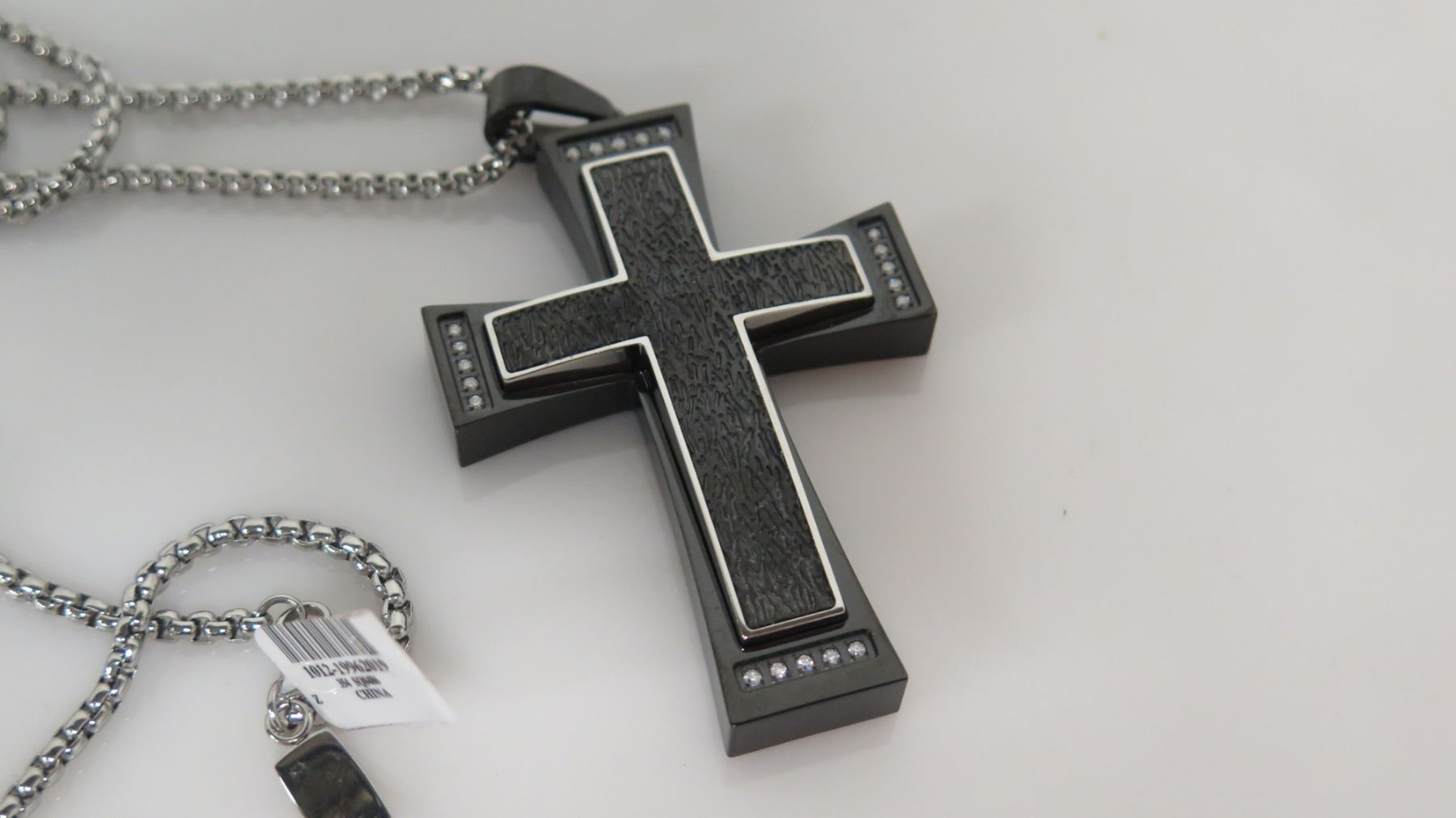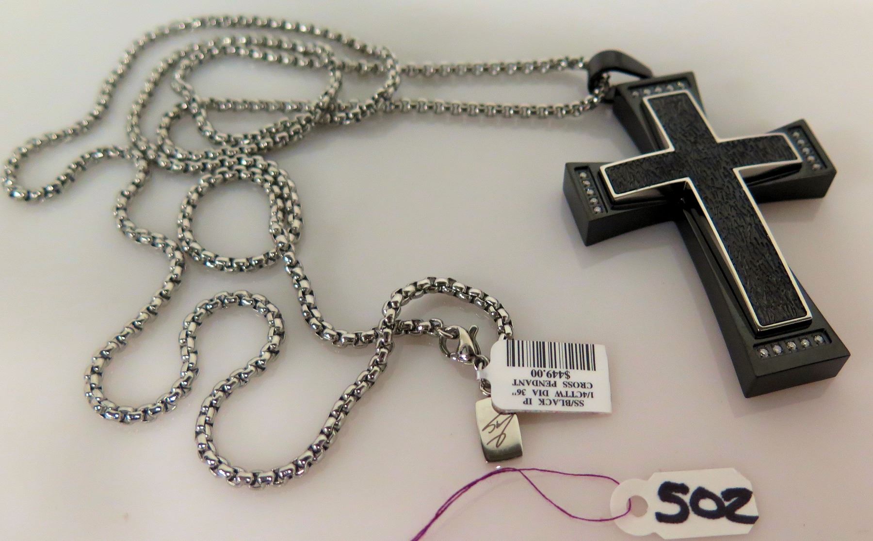 Men's Stainless Steel Necklace Black Cross Pendant Retail $449, New w/ Tag