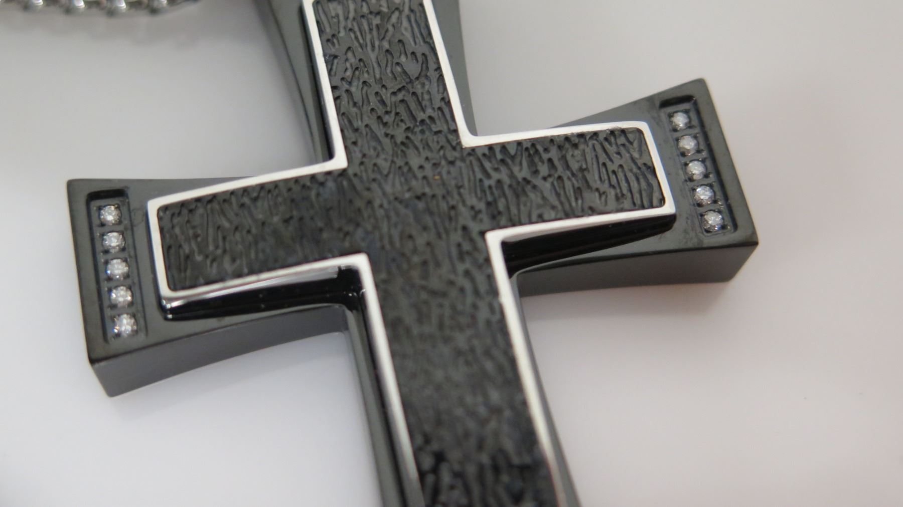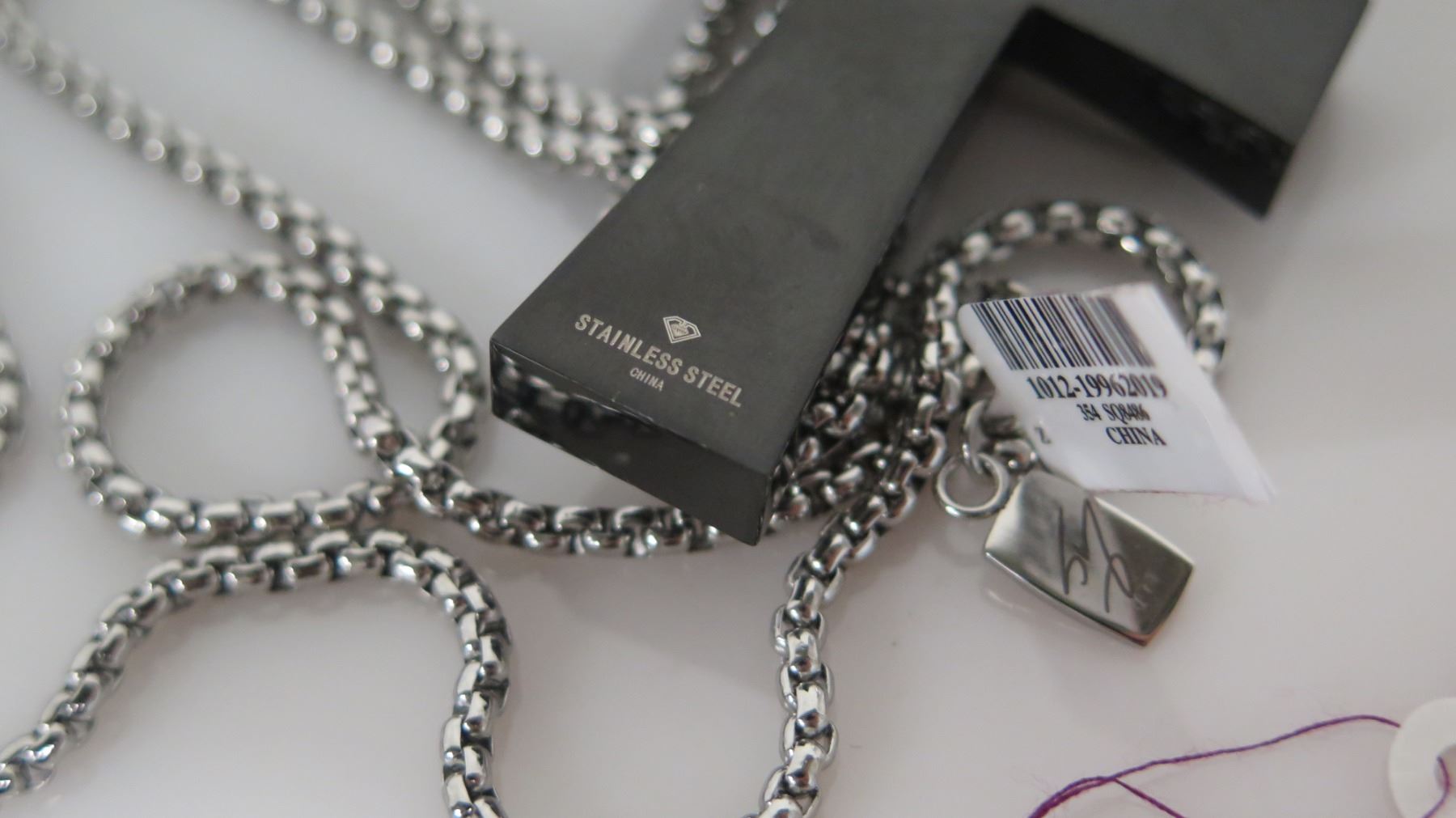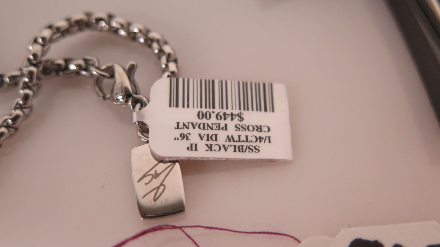 Men's Stainless Steel Necklace Black Cross Pendant Retail $449, New w/ Tag
