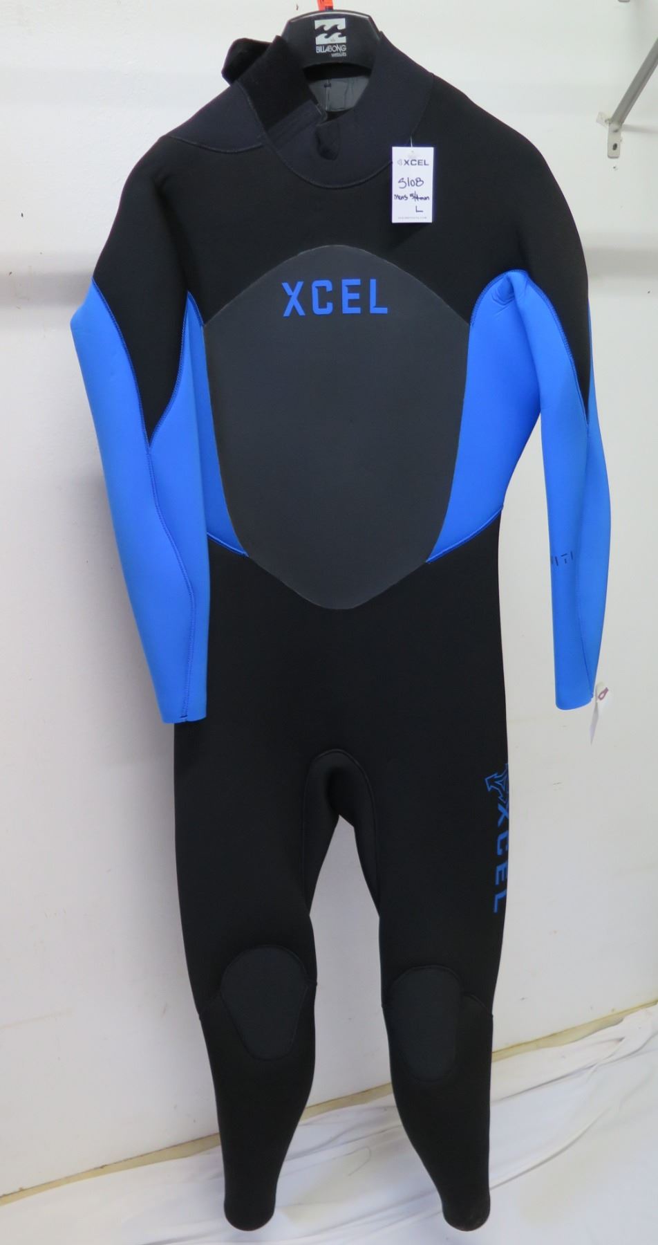Mens Back Zip w/ Inner Flap Fullsuit Wetsuit 5/4mm, Black w/ Blue, Size L
