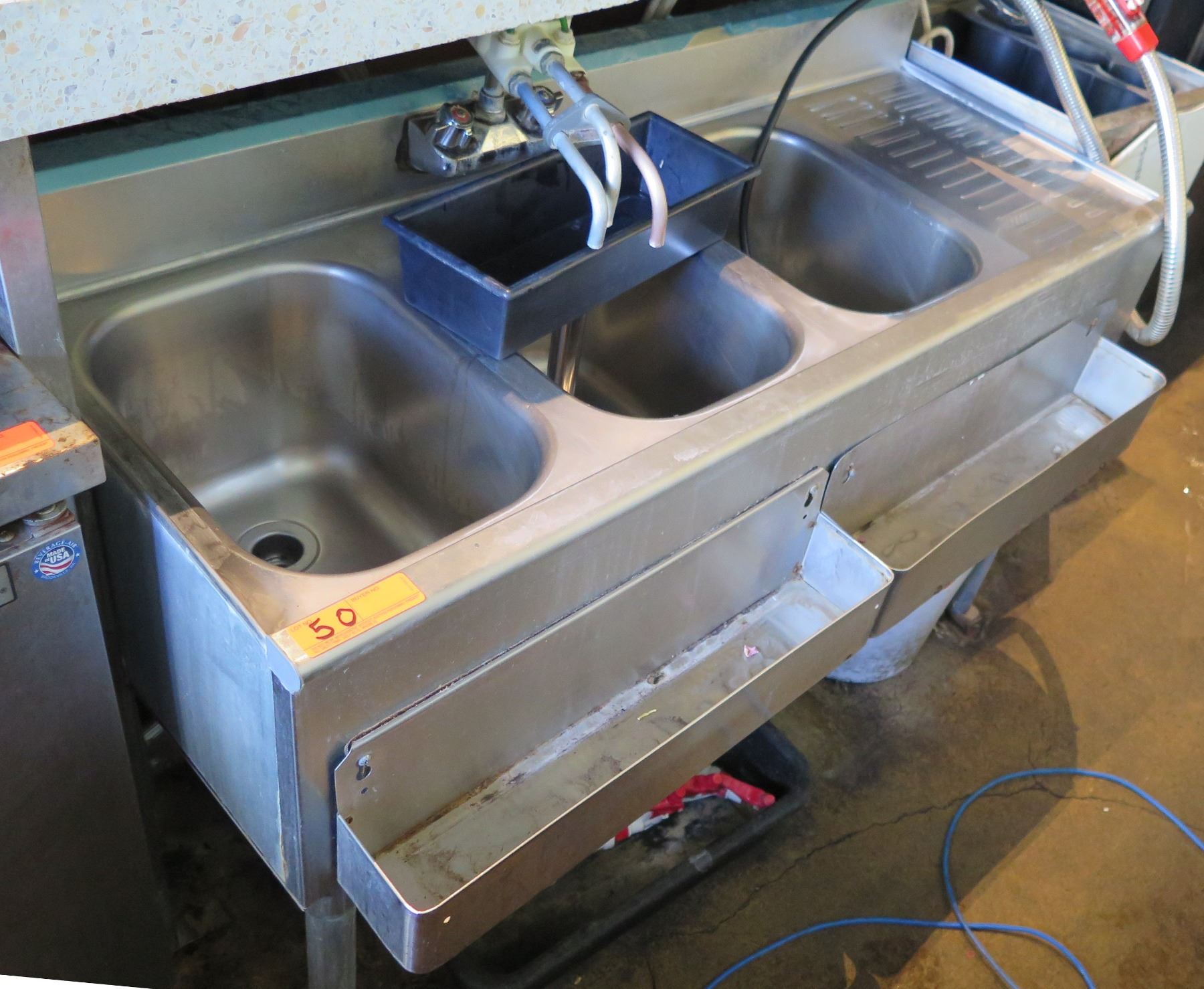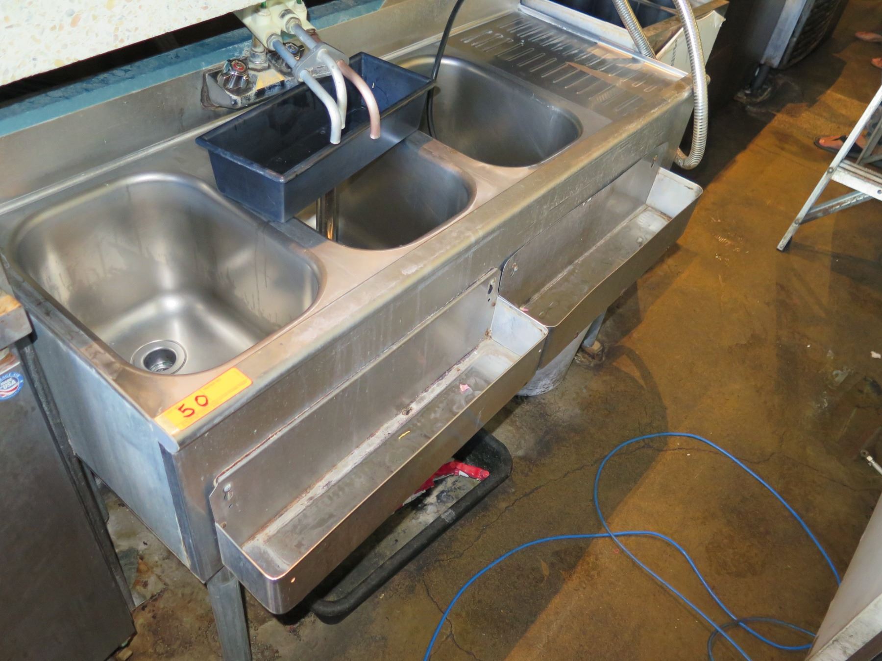 Metal 3-Basin Bar Sink w/ 2 Front Wells & Drainboard 48" x 20"