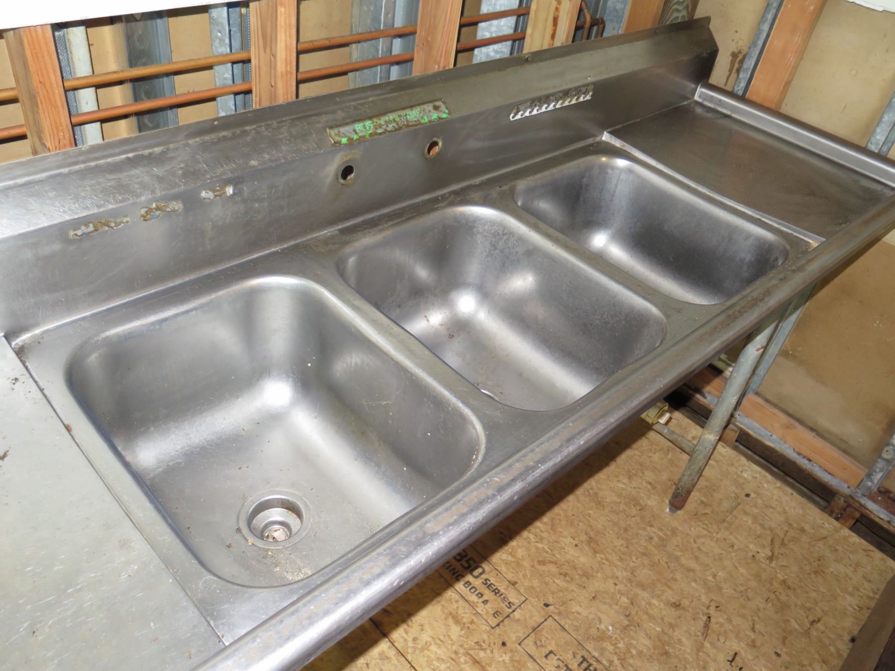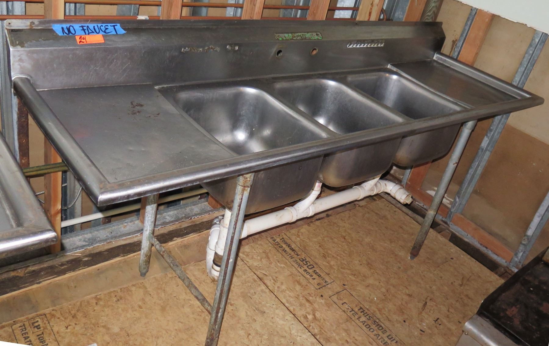 Metal 3-Basin Sink w/ Dual Sideboards (no faucet) 90"x26"x44"H