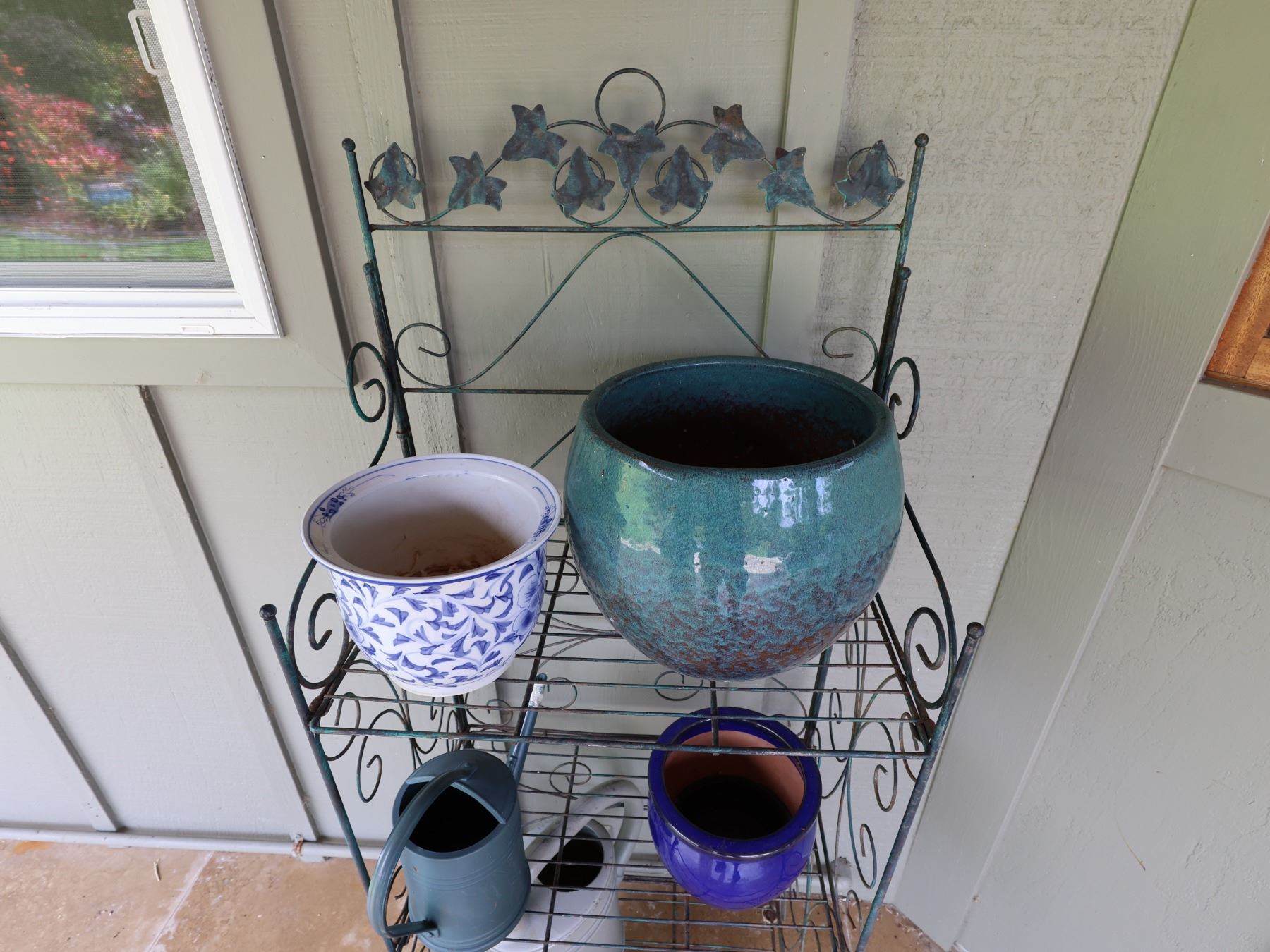 Metal 3-Tier Shelf w/ 3 Plant Pots & 2 Watering Cans, Misc Sizes