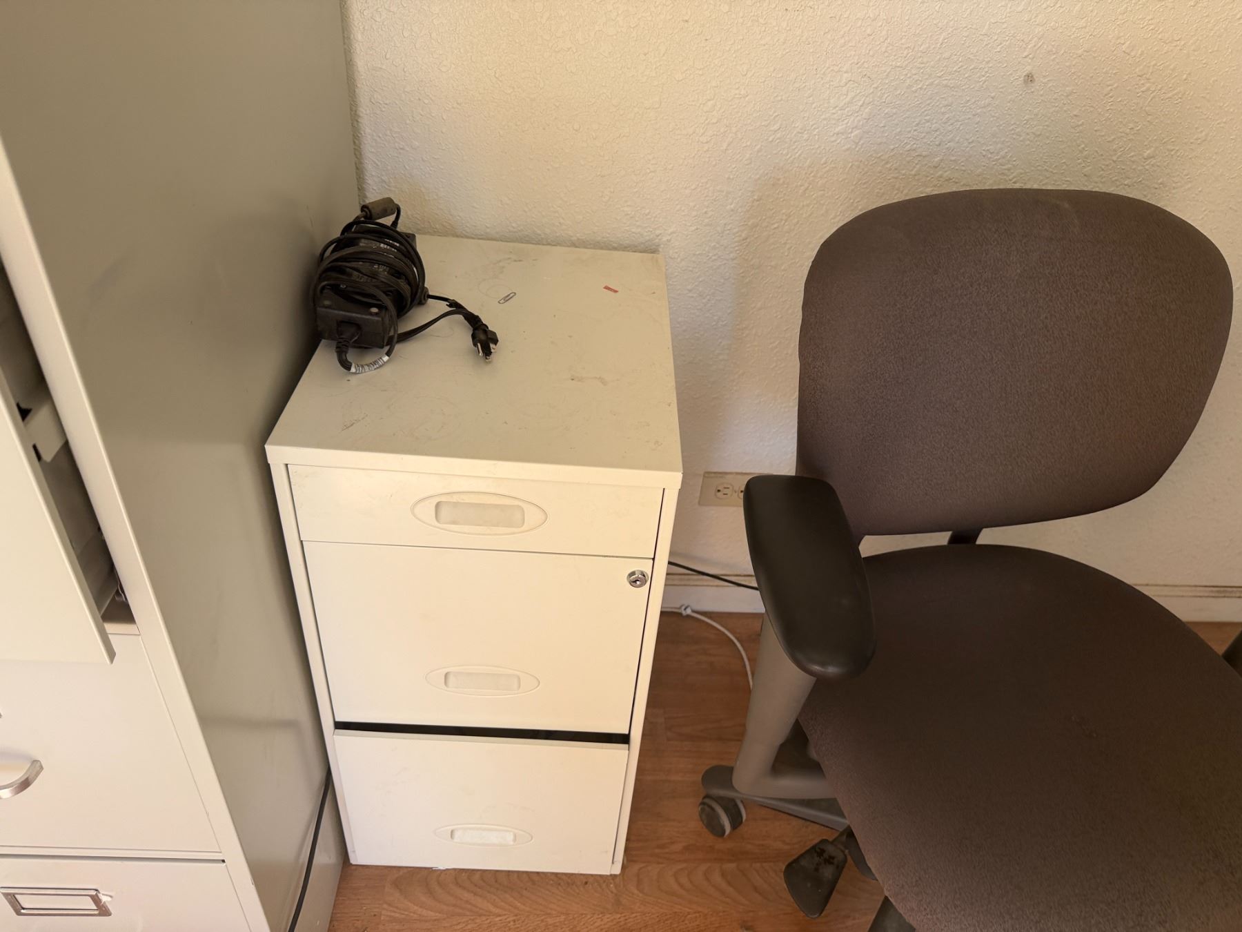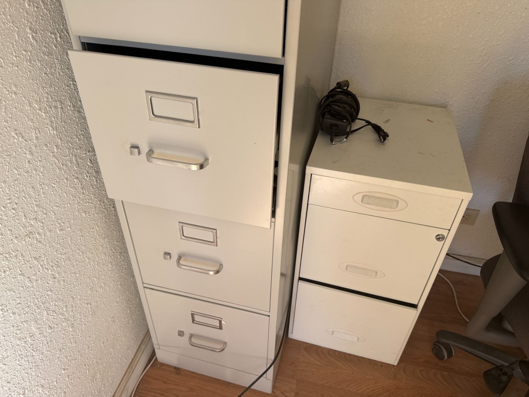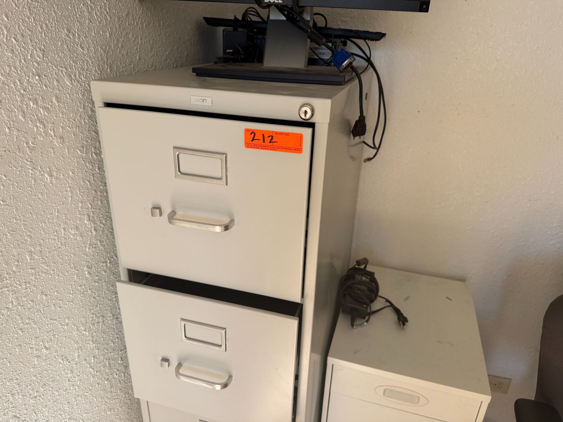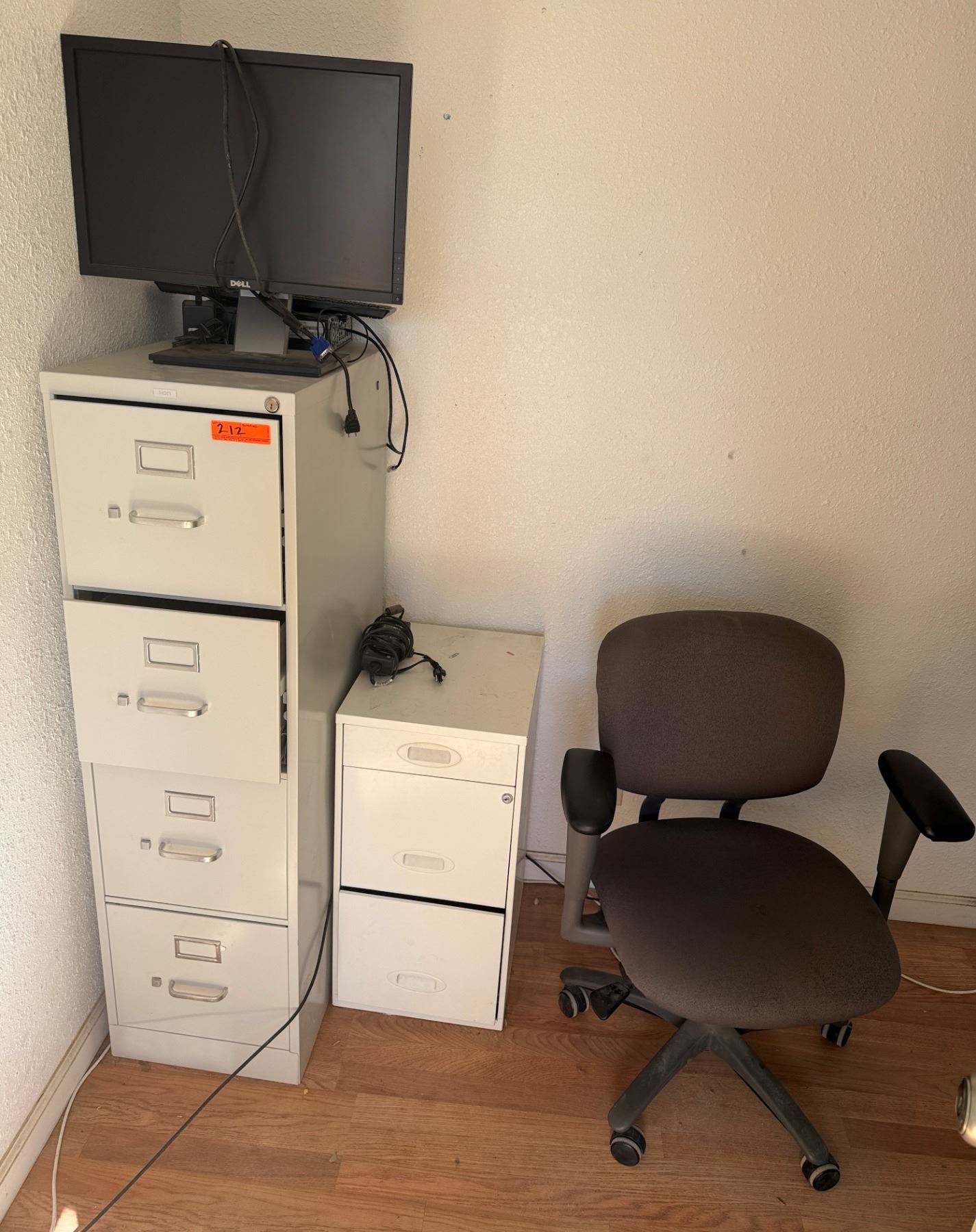Metal 4-Drawer Filing Cabinet, 2 Drawer Unit, Dell Monitor & Rolling Chair, etc