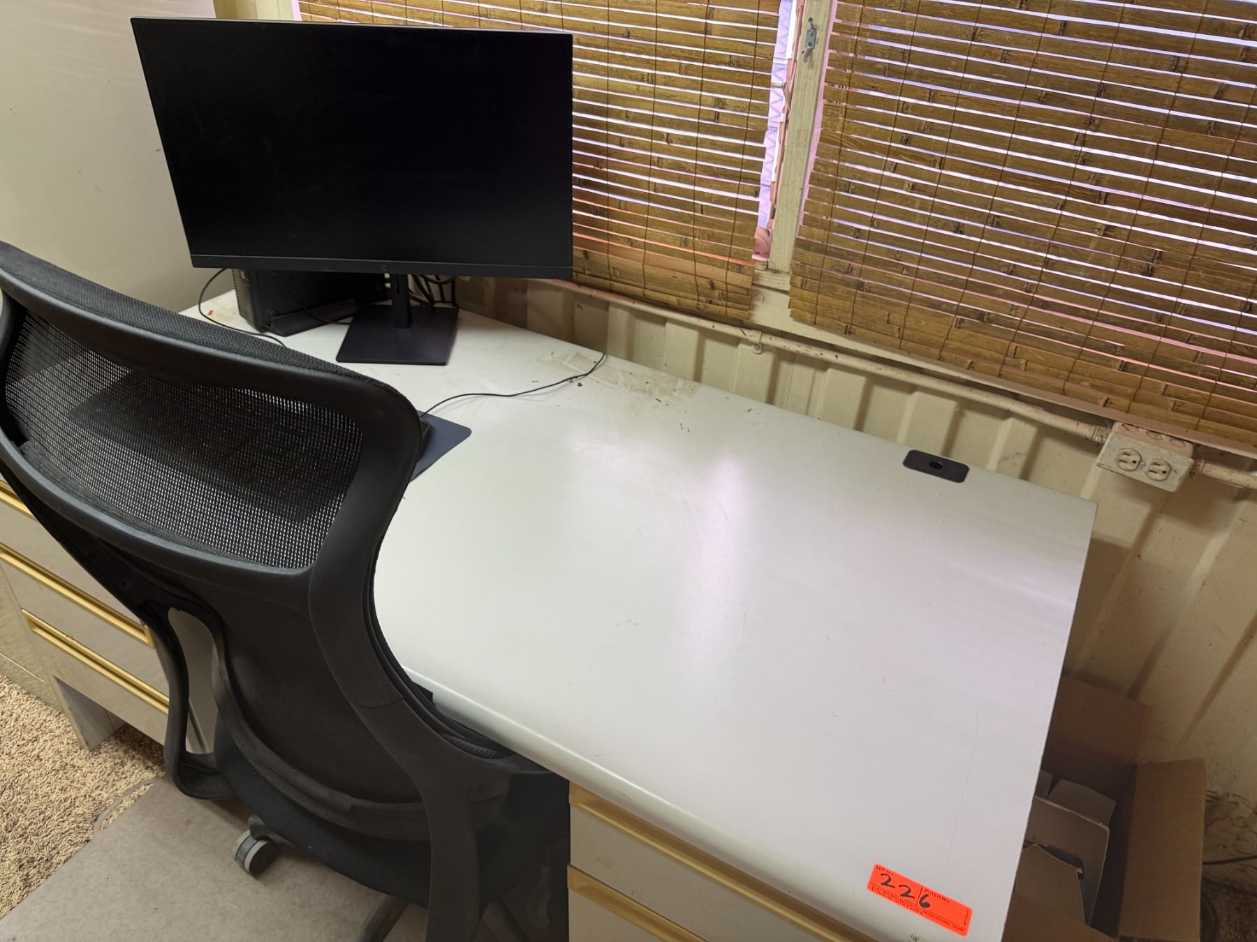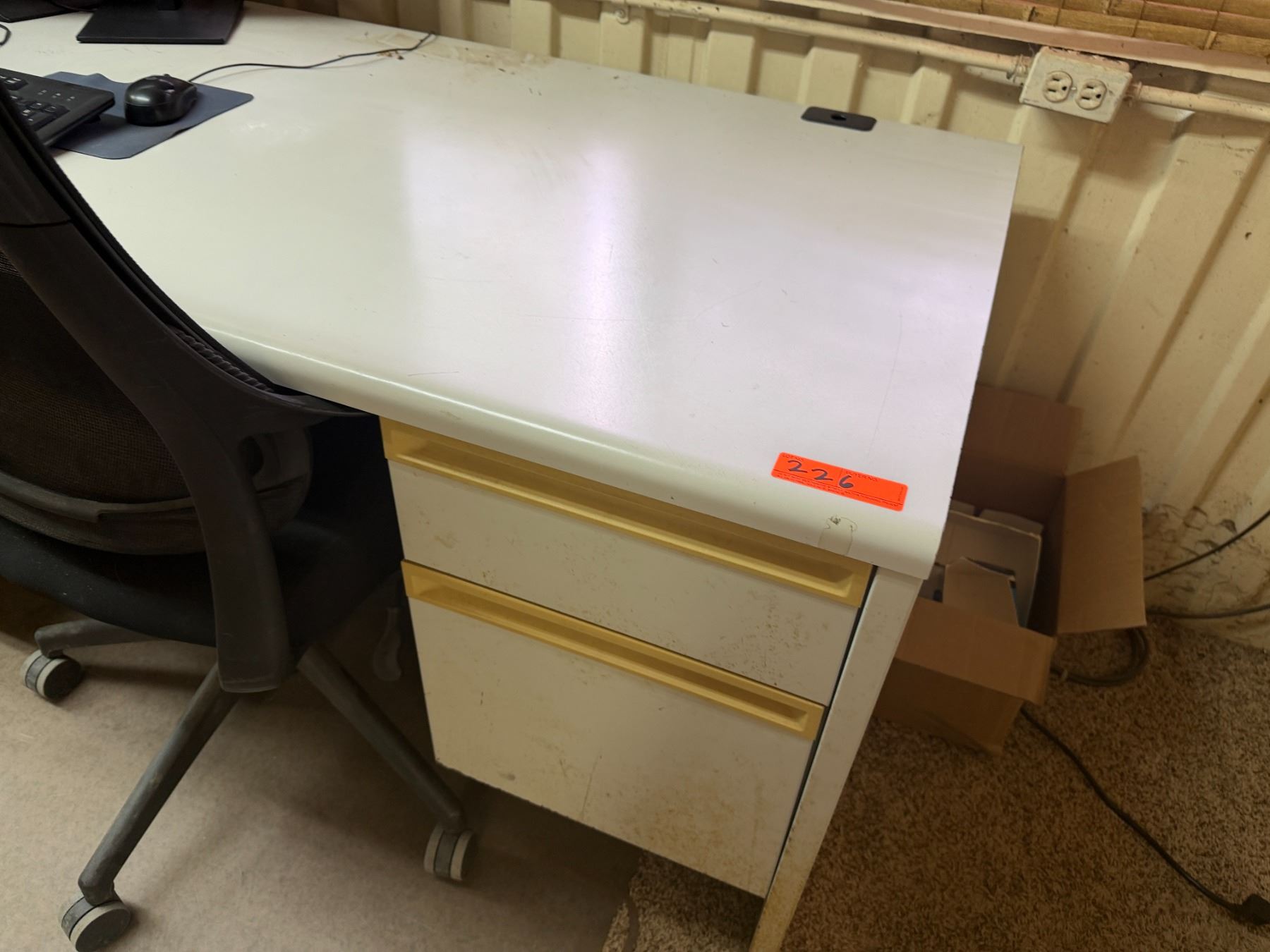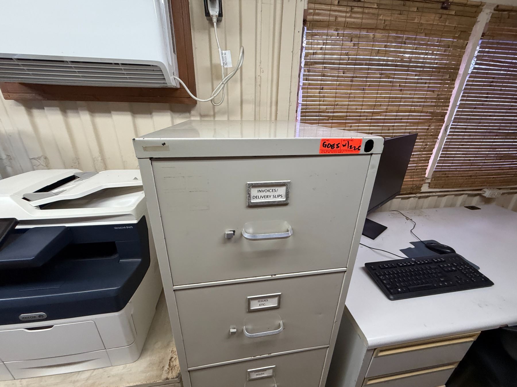Metal 4-Drawer Filing Cabinet w/ Desk, Chair, Monitor, Keyboard, etc