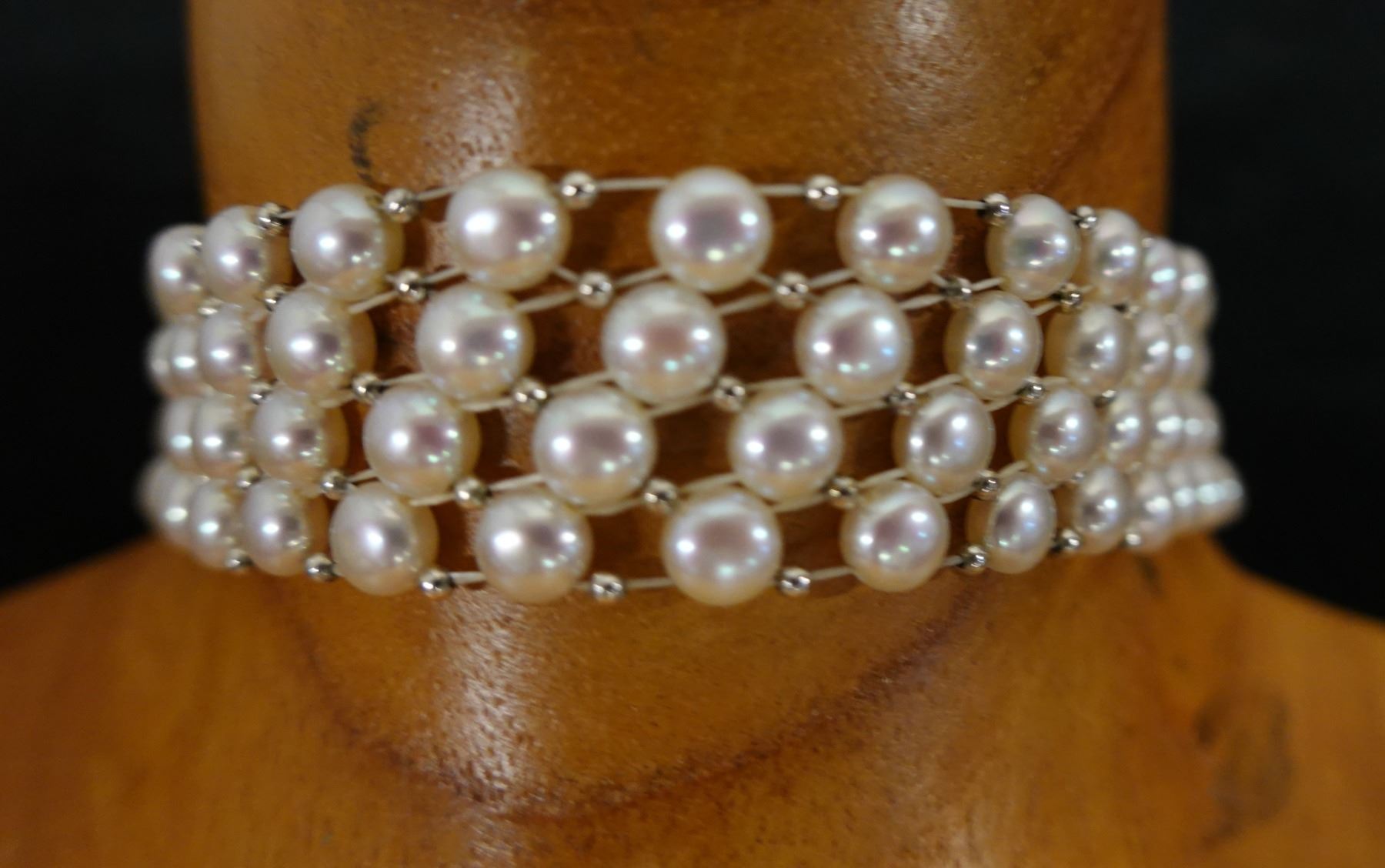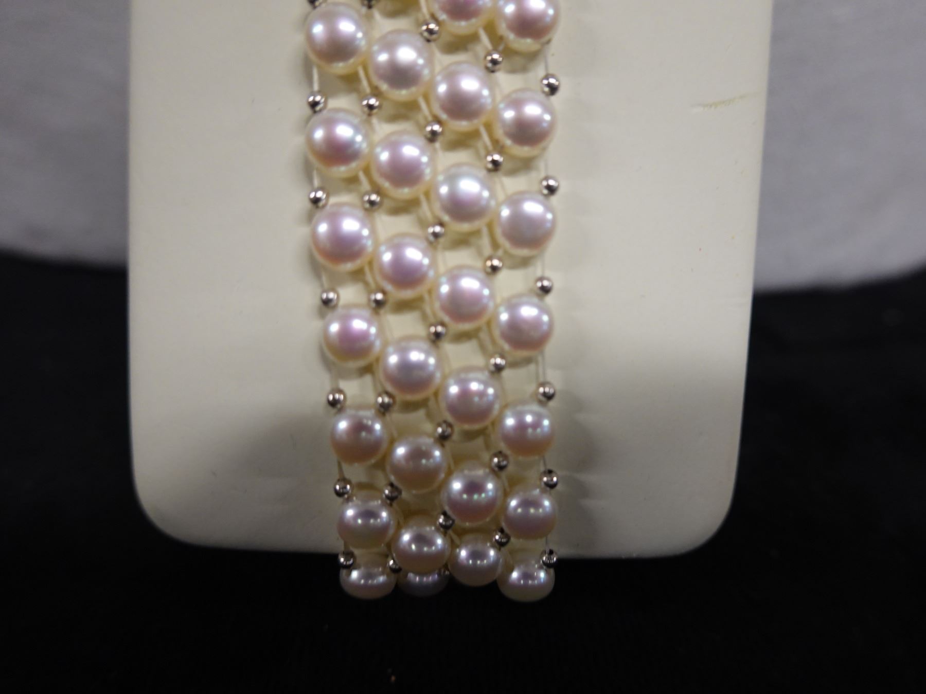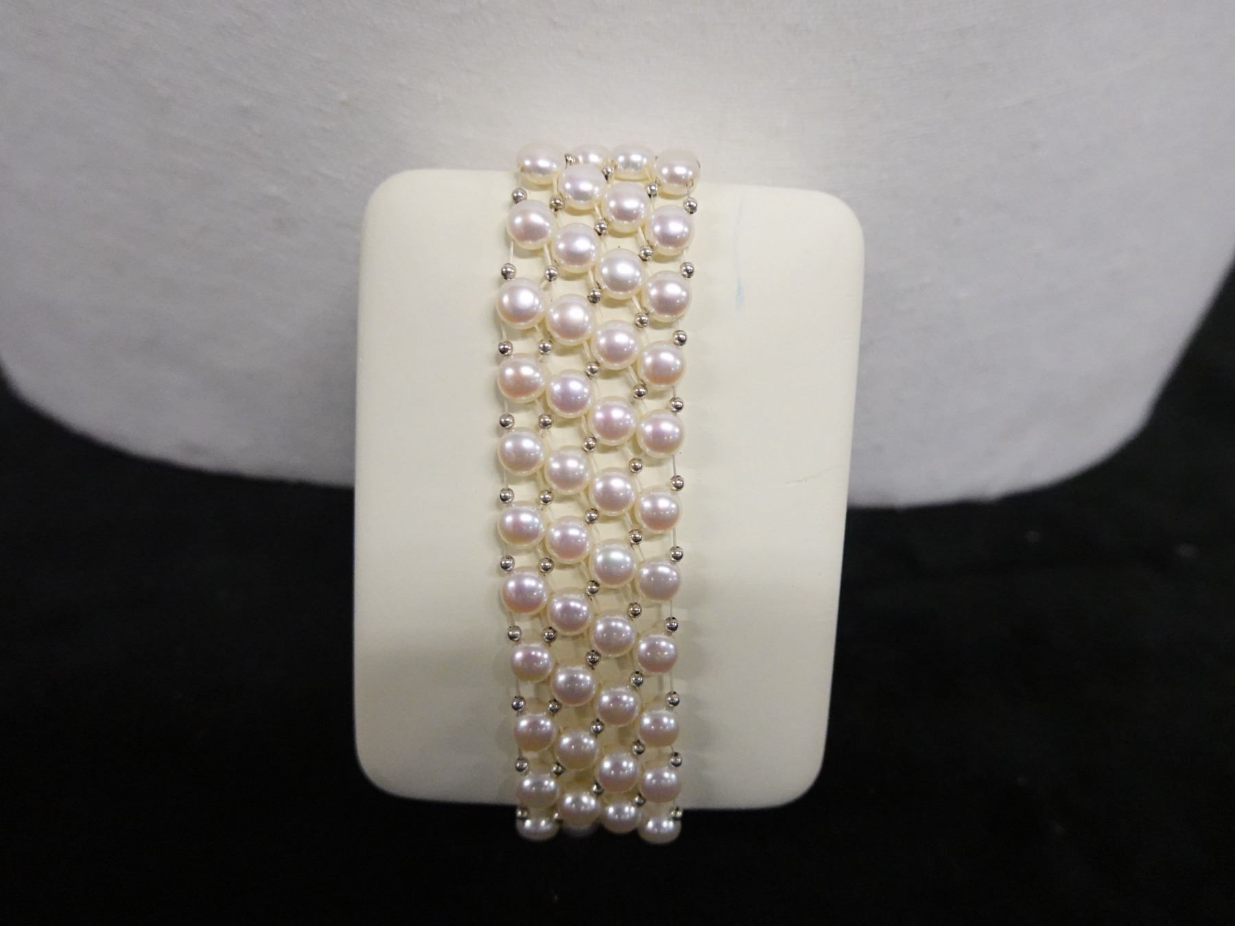 Metal 4-Strand Pearl Bead Bracelet, 7" L