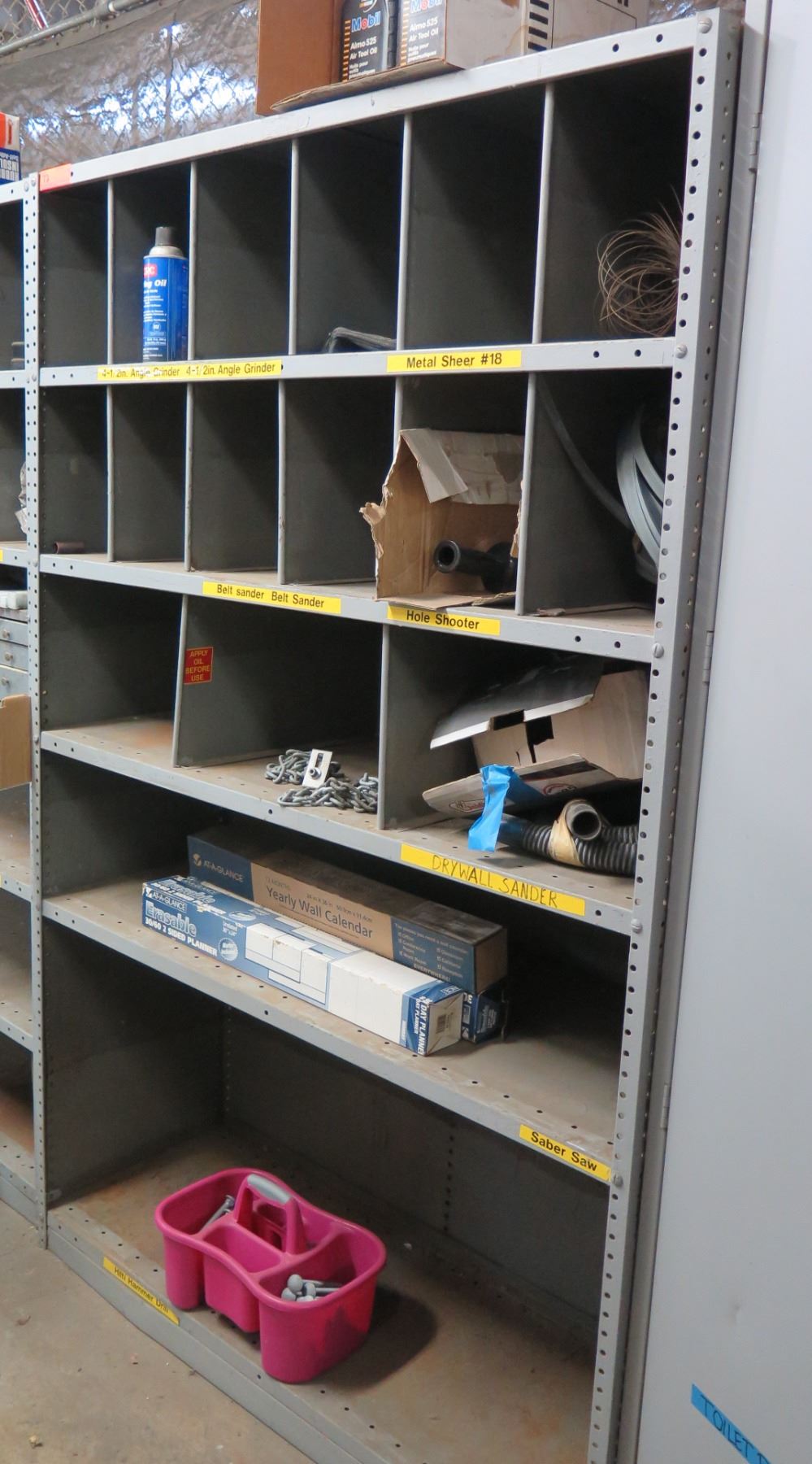 Metal 4-Tier Shelf 48" x 18" x 75"H w/ Contents: Mobil Air Tool Oil, Cutting Oil, Hardware, etc