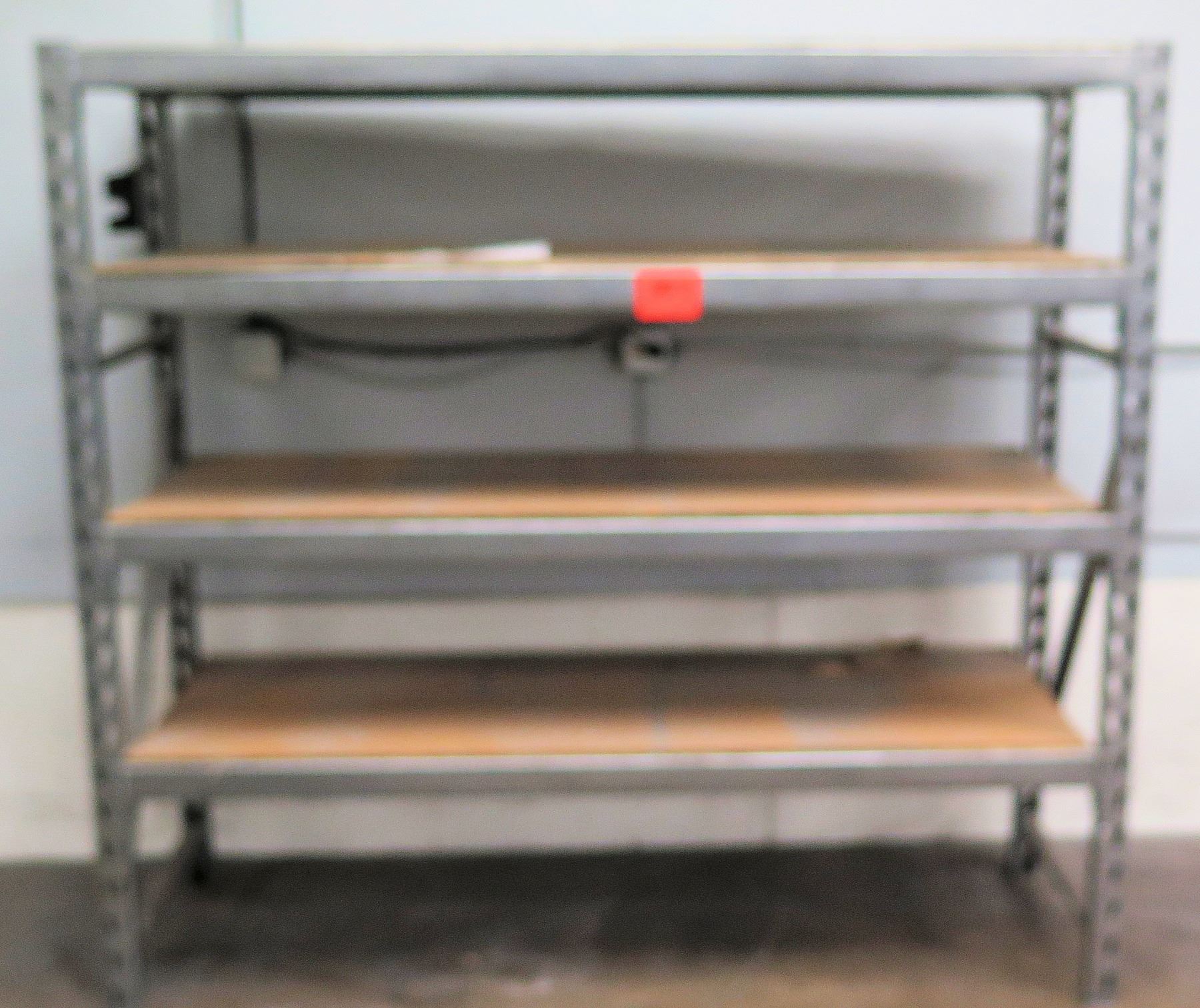 Metal 4 Tier Shop Work Shelf w/ Wood Shelves