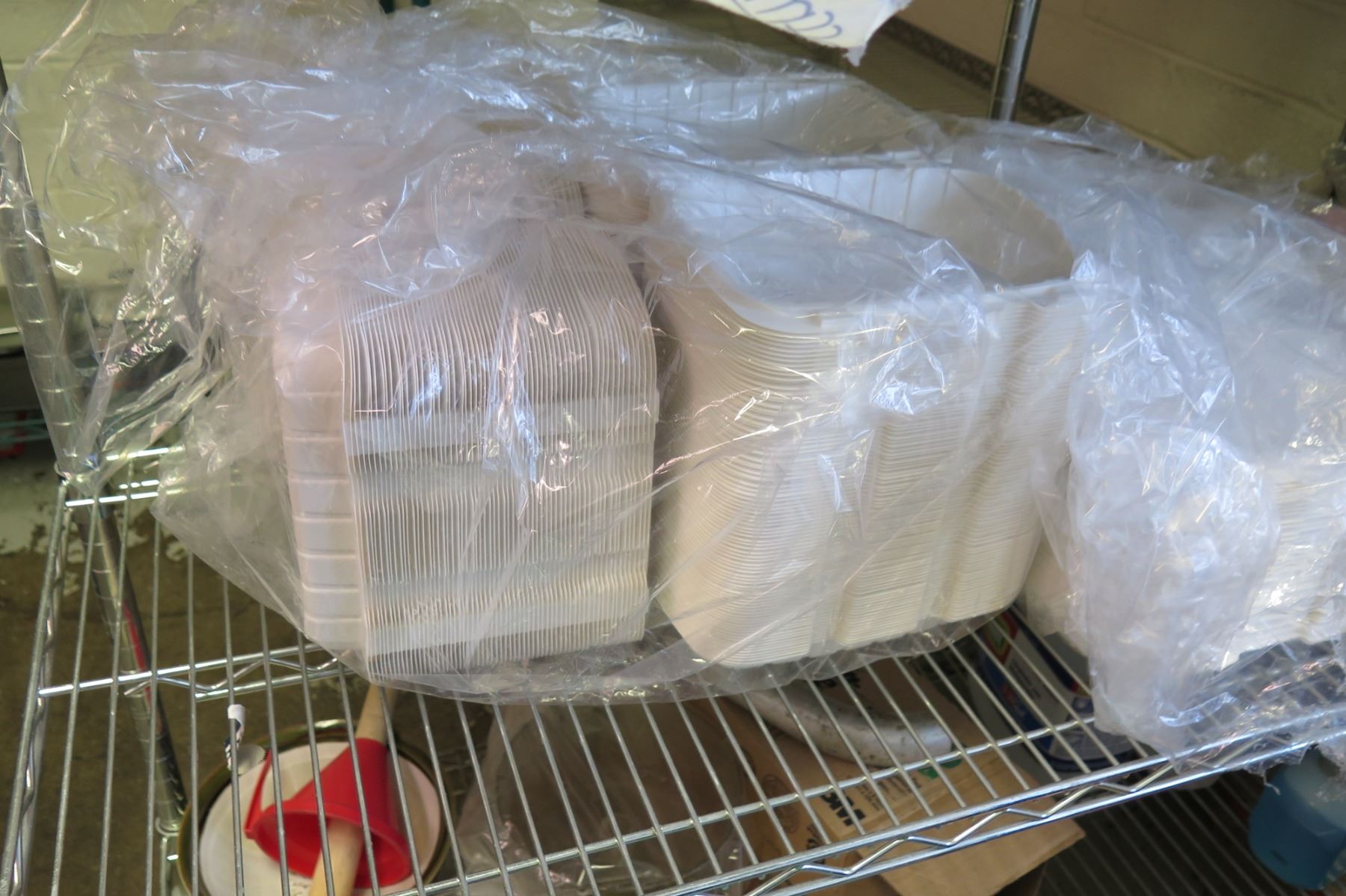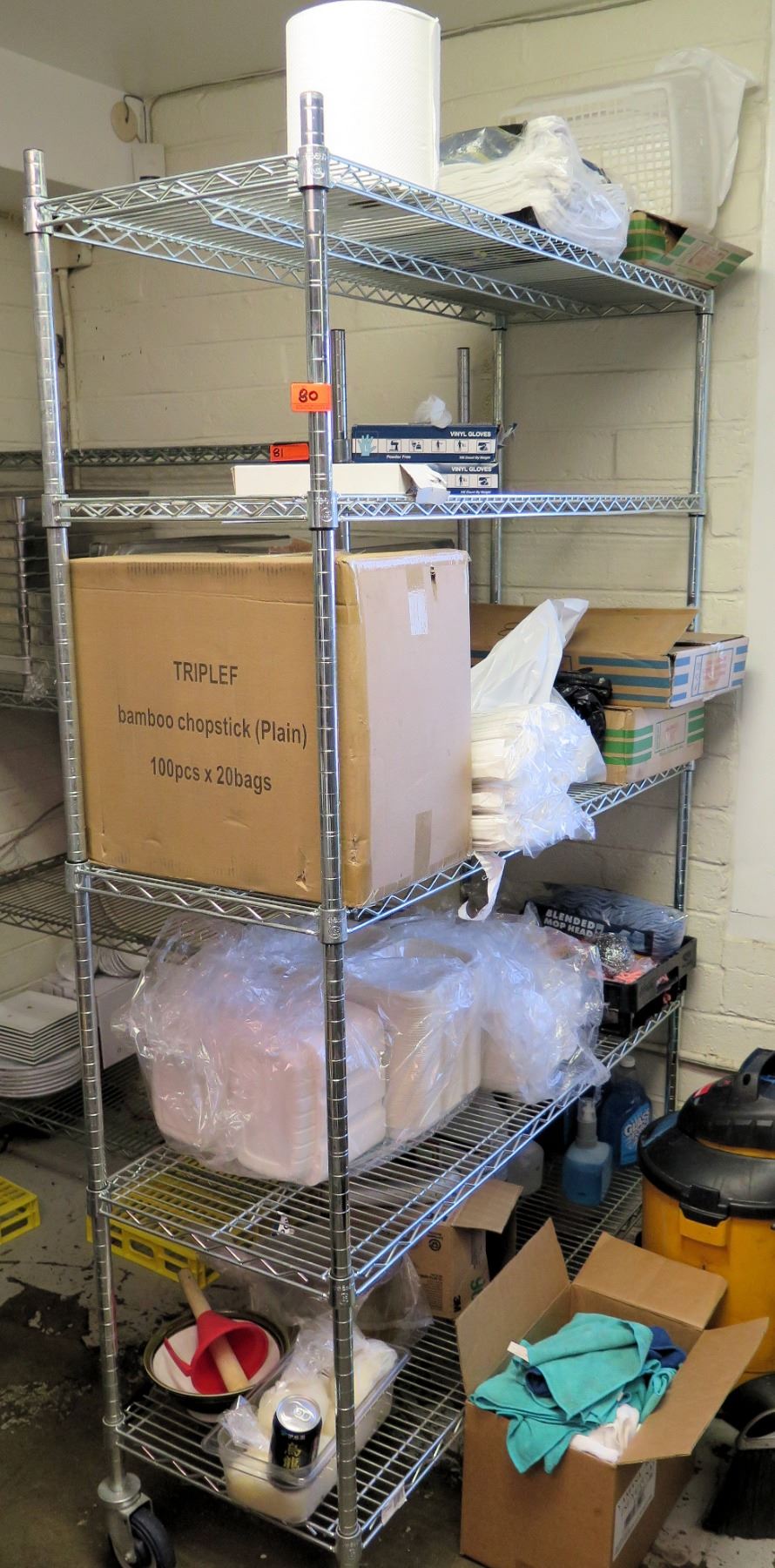 Metal 4 Tier Wire Mesh Shelf & Contents: Gloves, Chopsticks, Deli Containers, etc