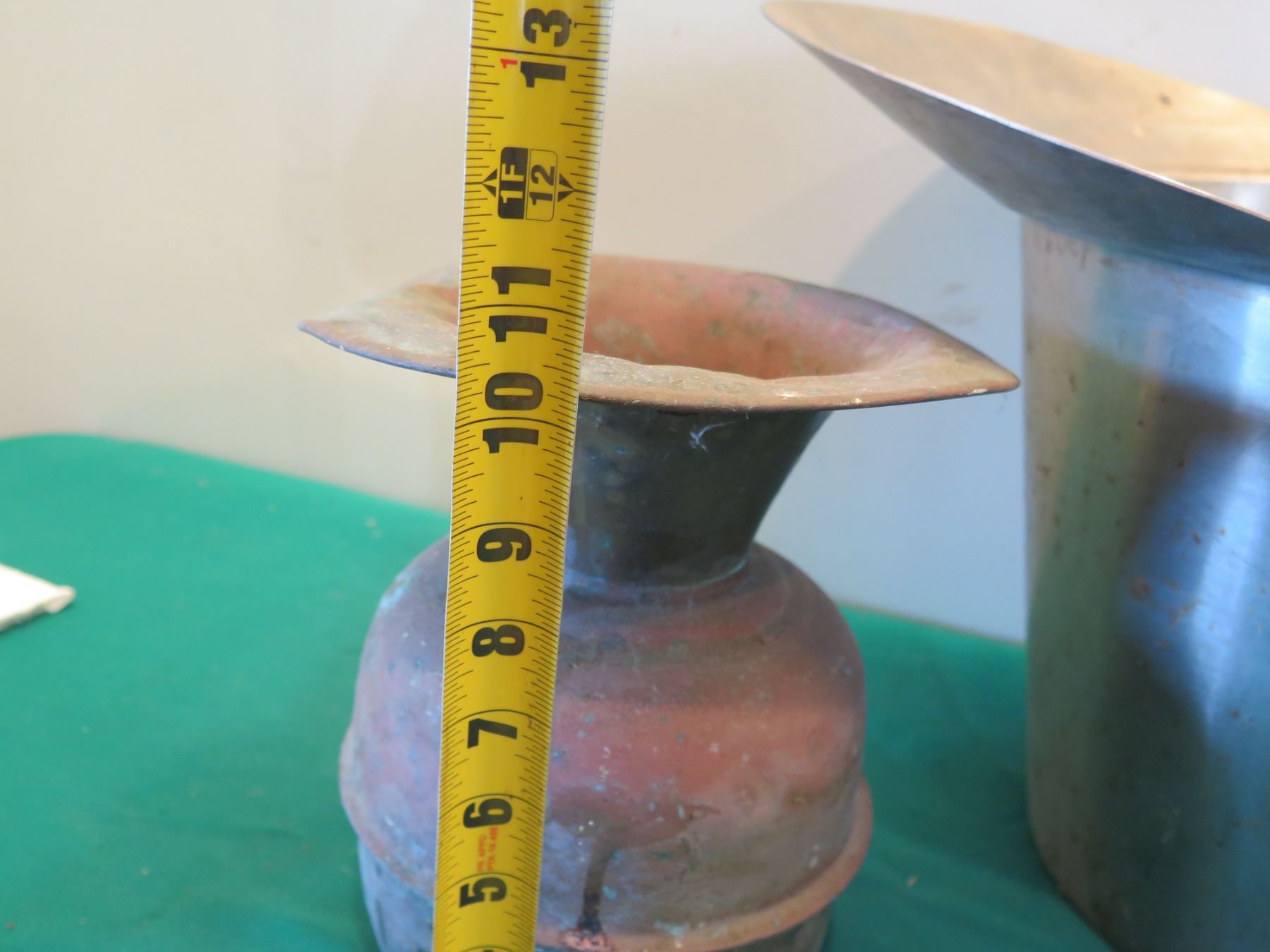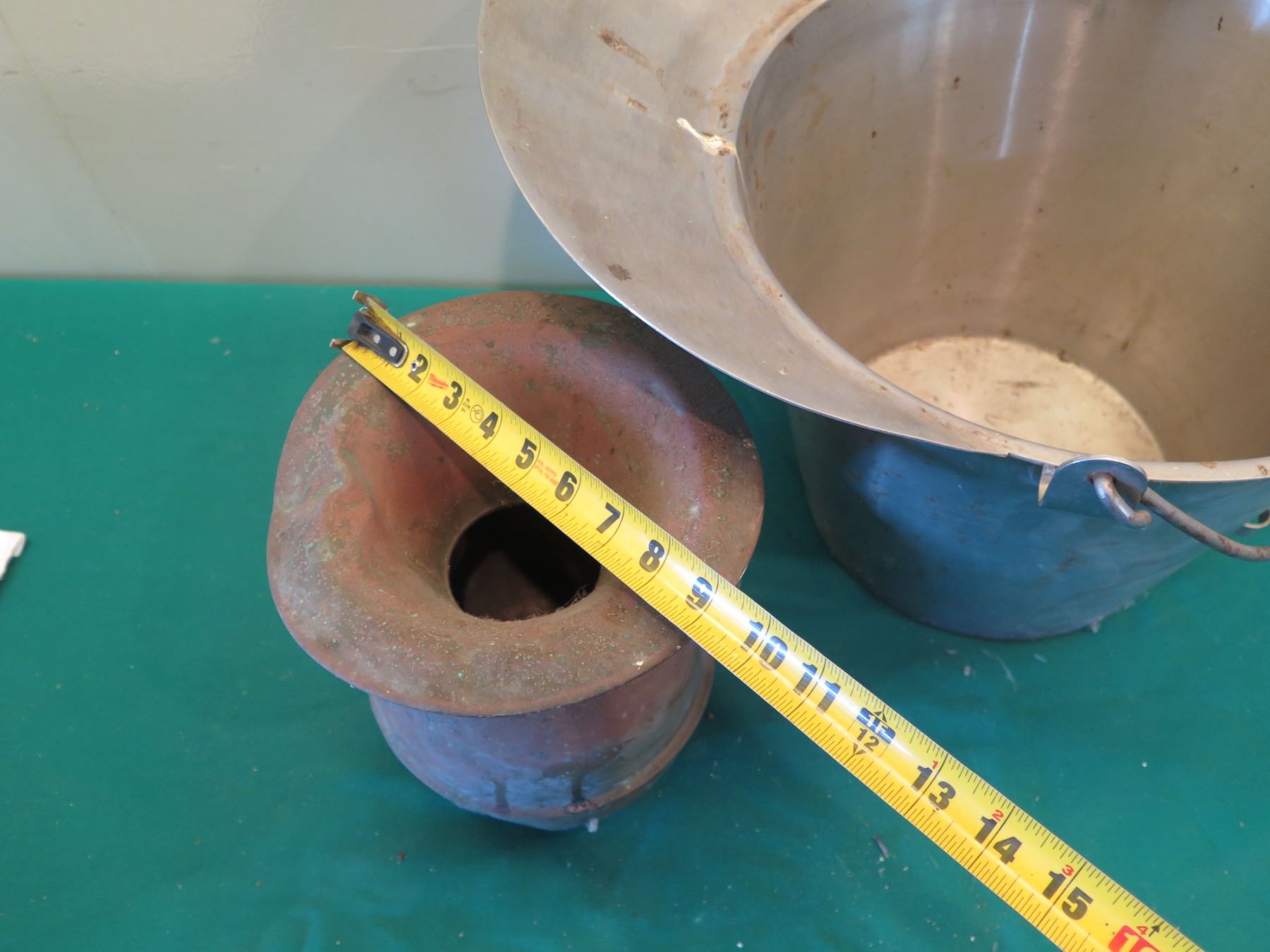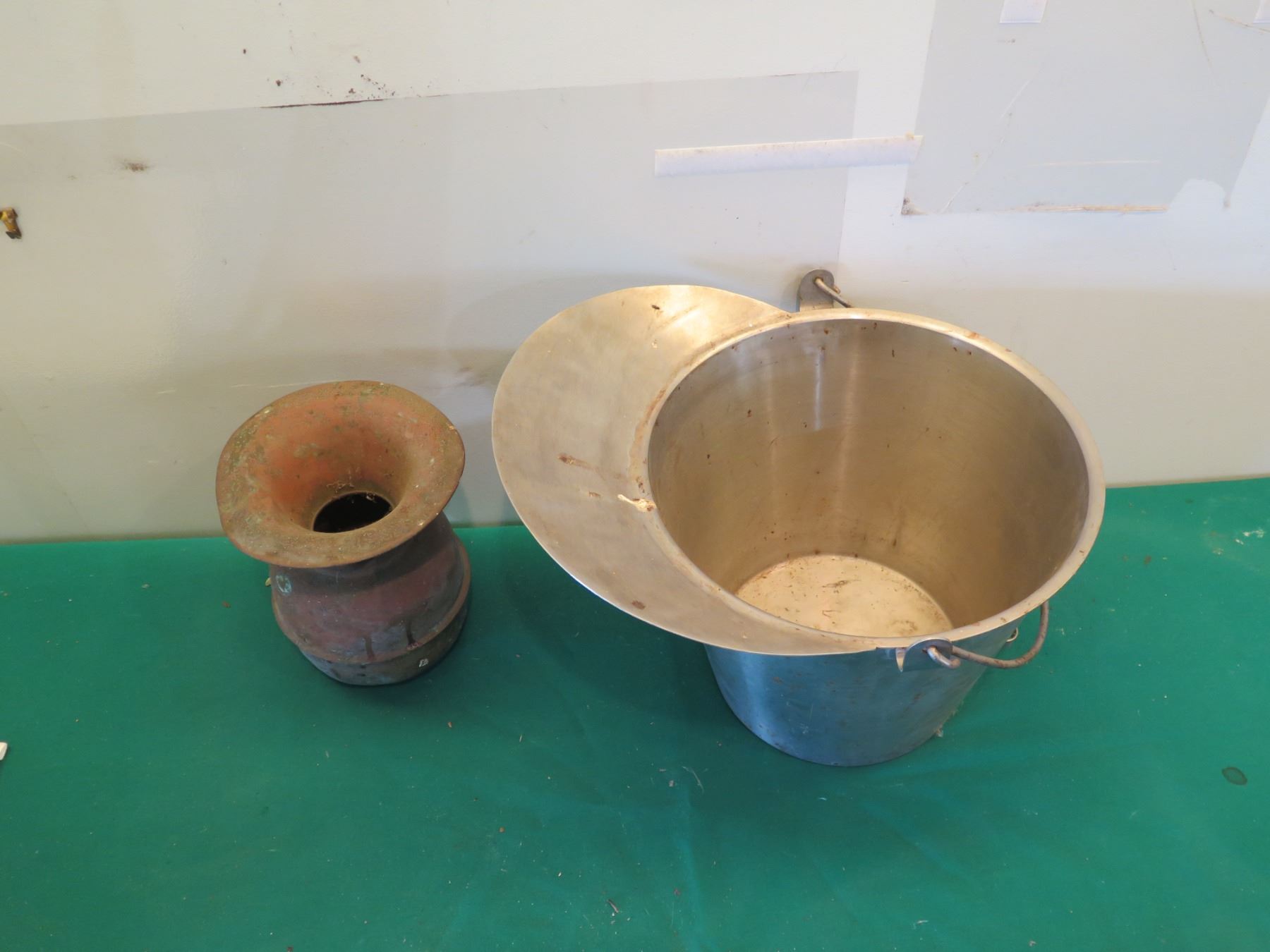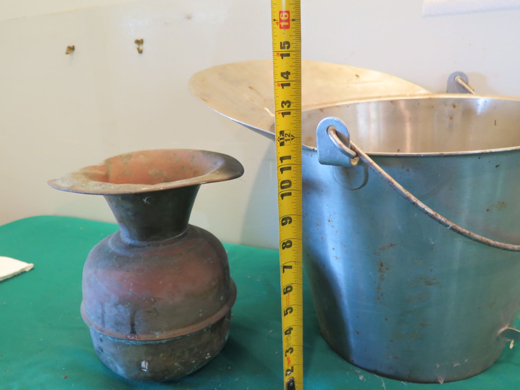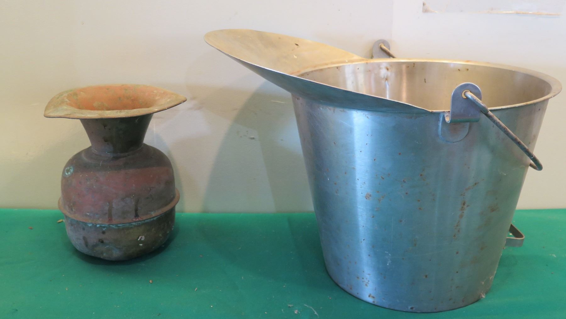 Metal Bucket w/ Handle 15"H & Vintage Urn w/ Maker's Mark 11"H