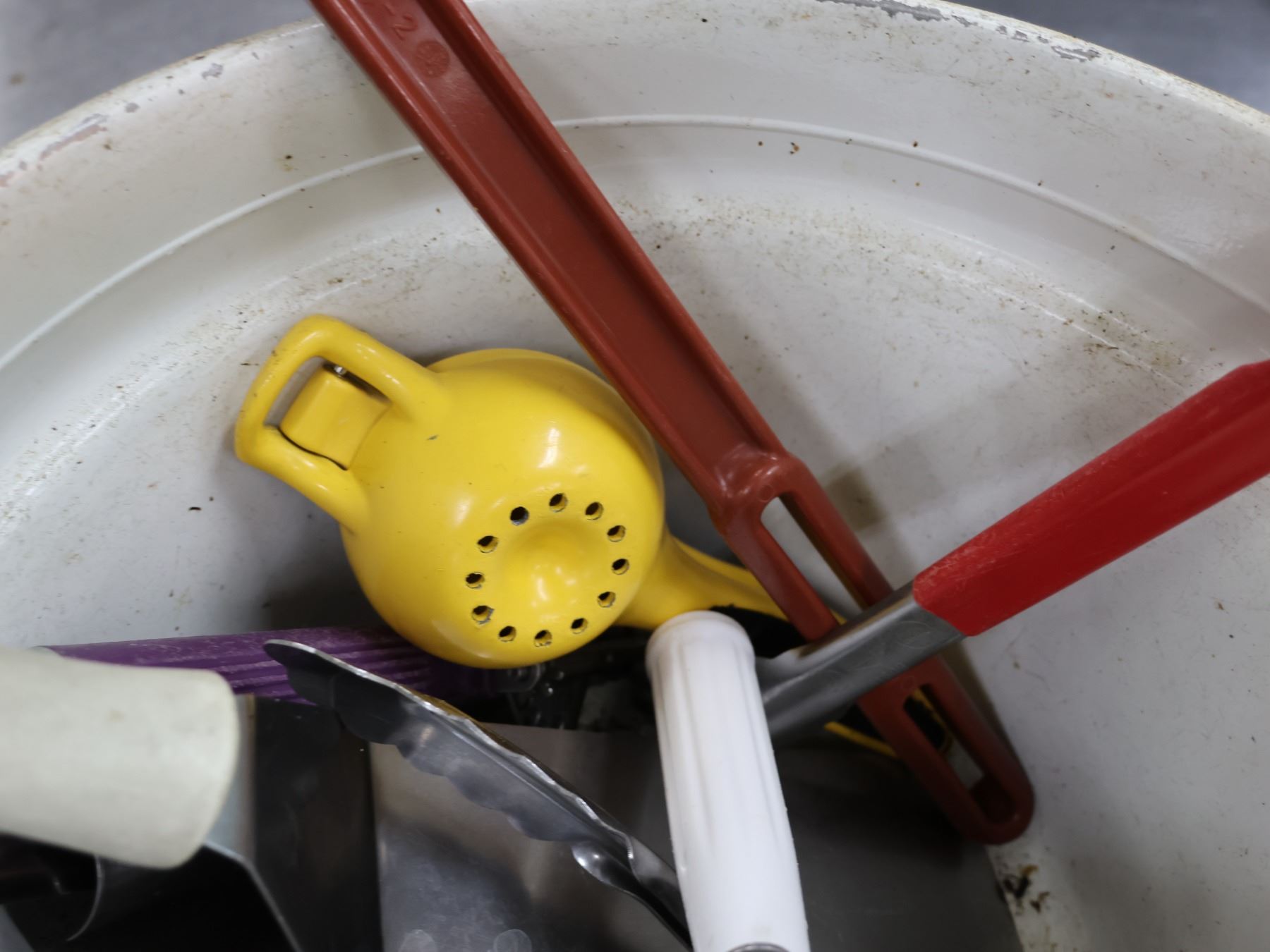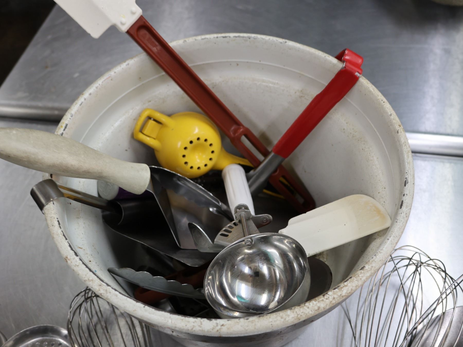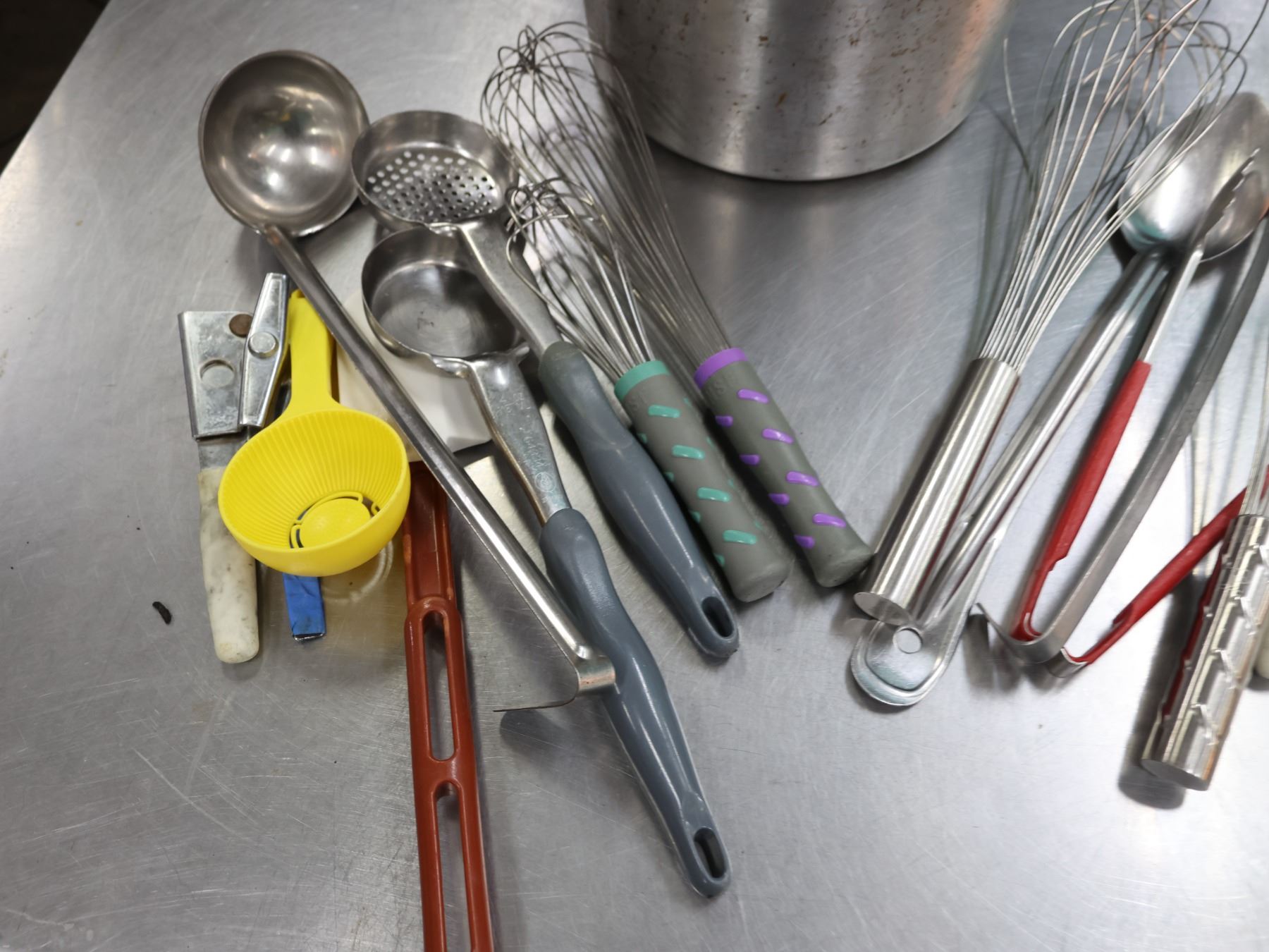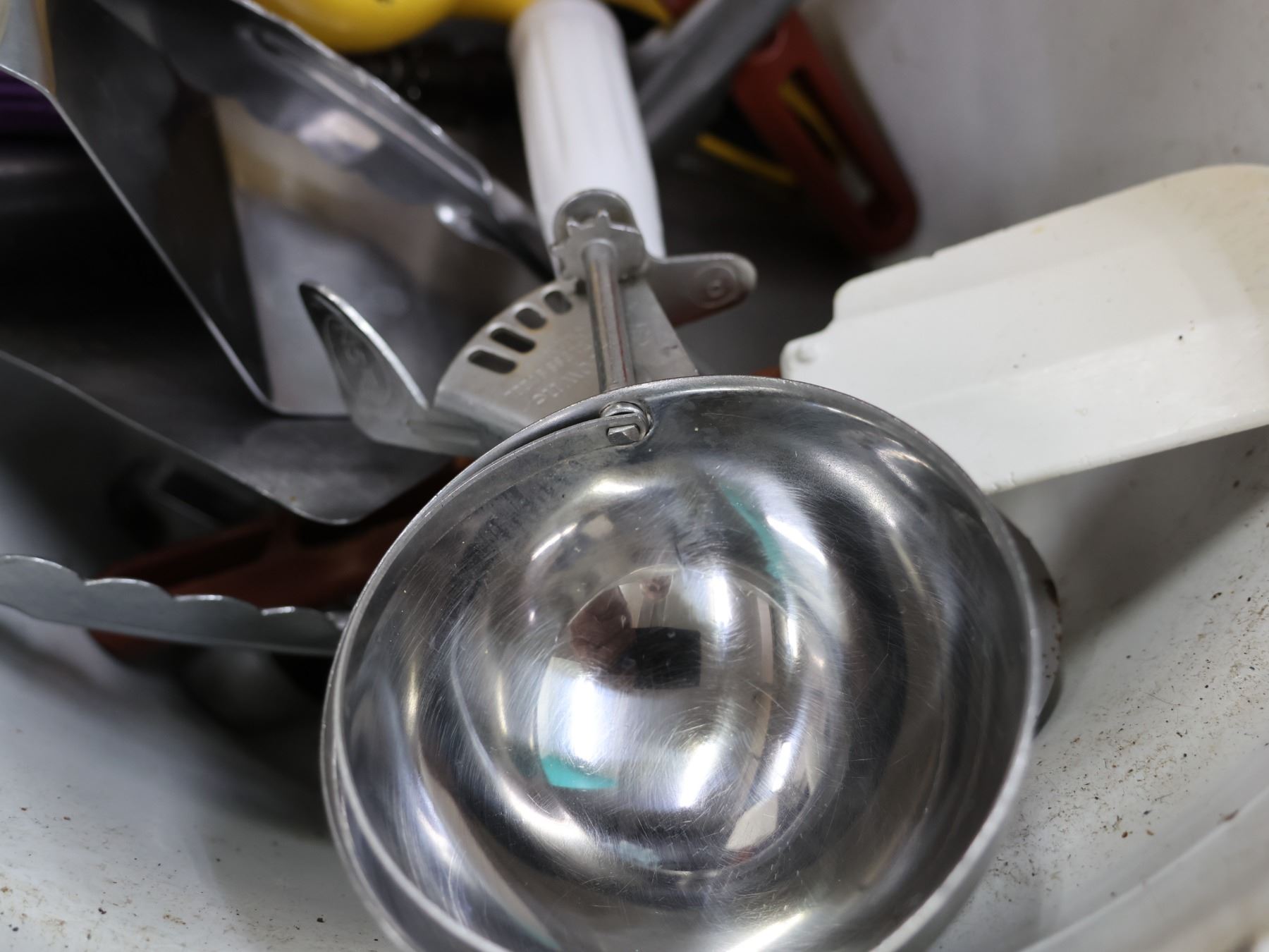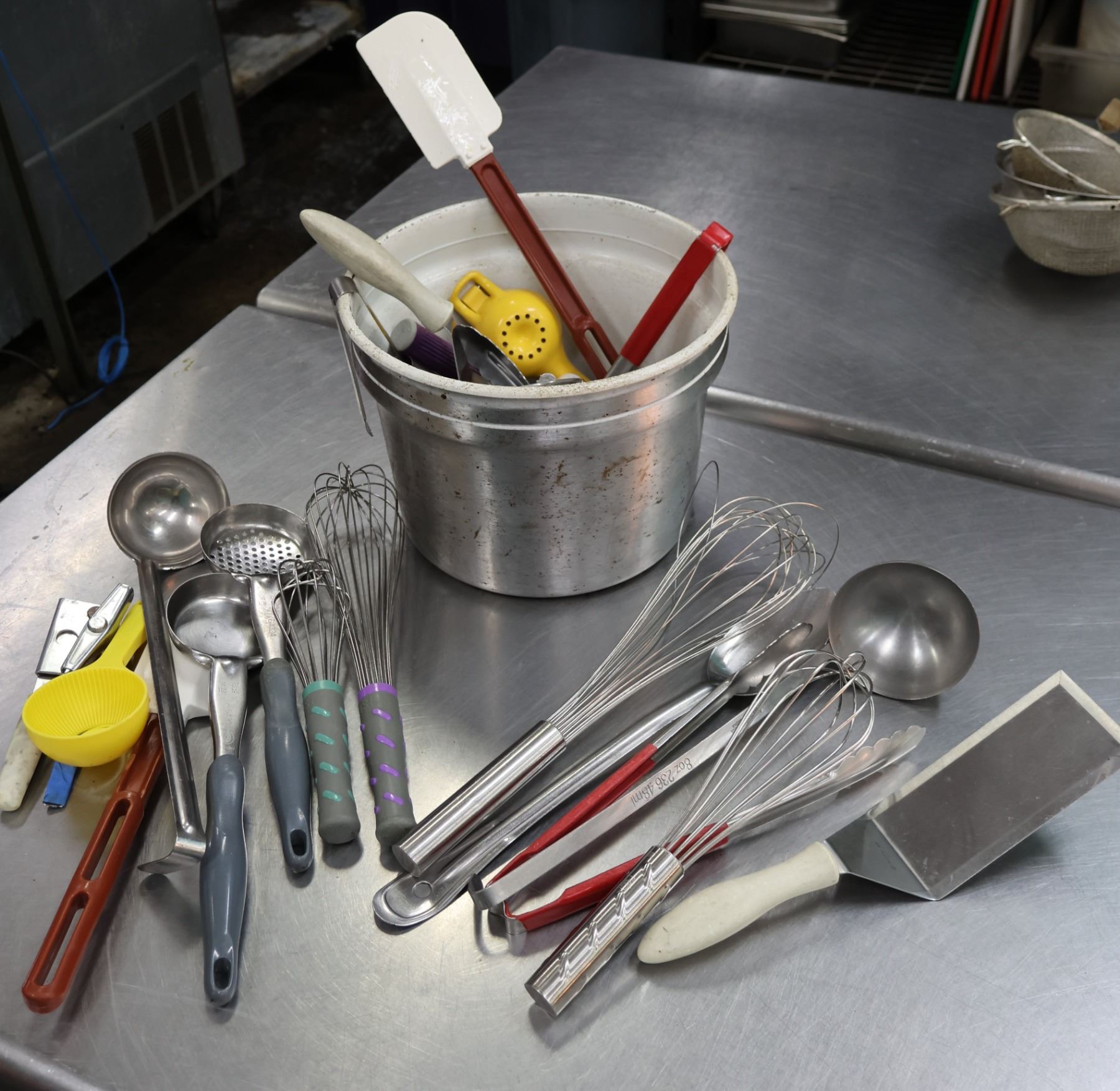 Metal Bucket w/ Multiple Whisks, Ladles, Spatulas, Juicer, etc.