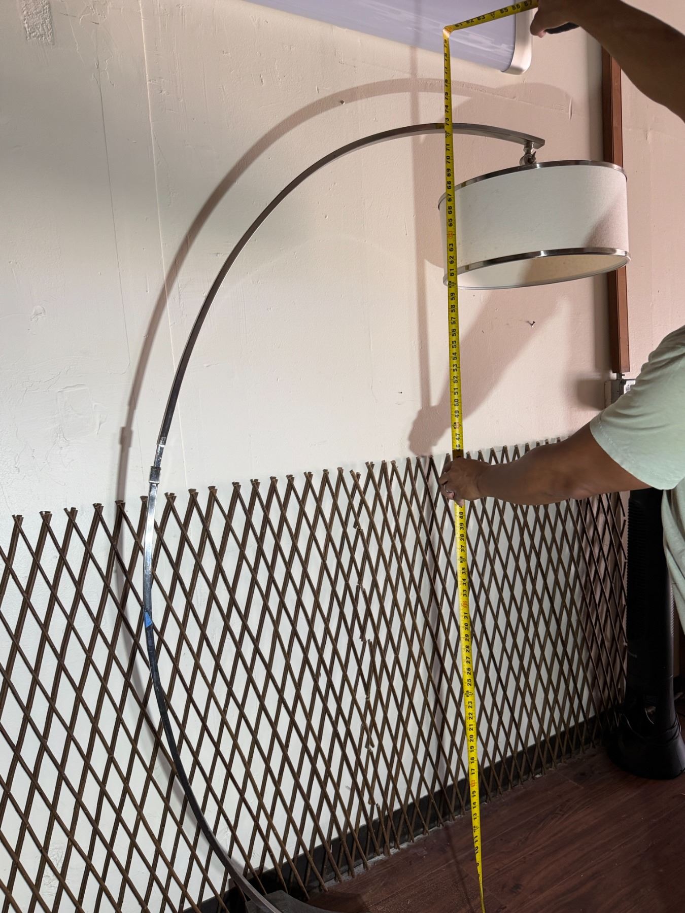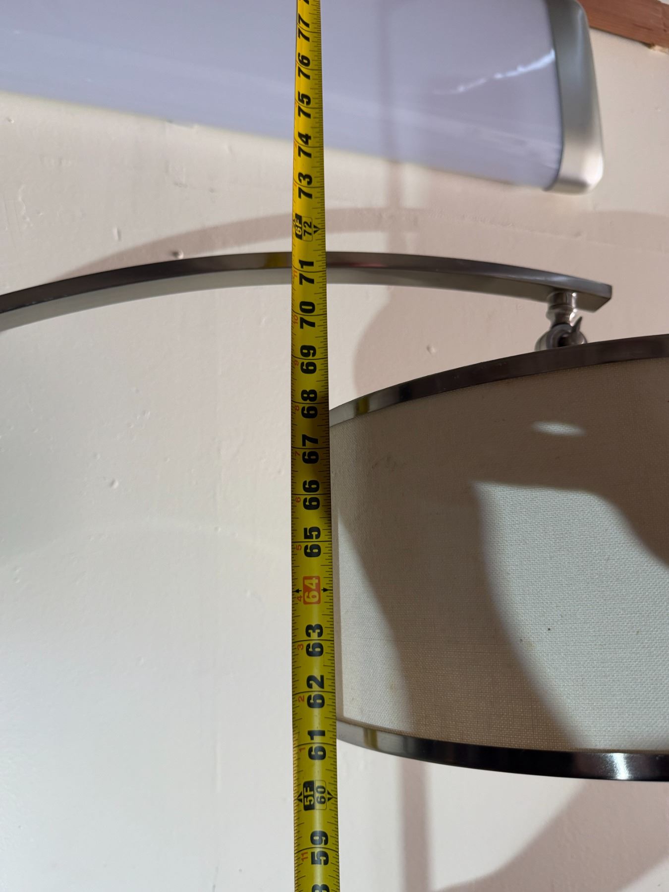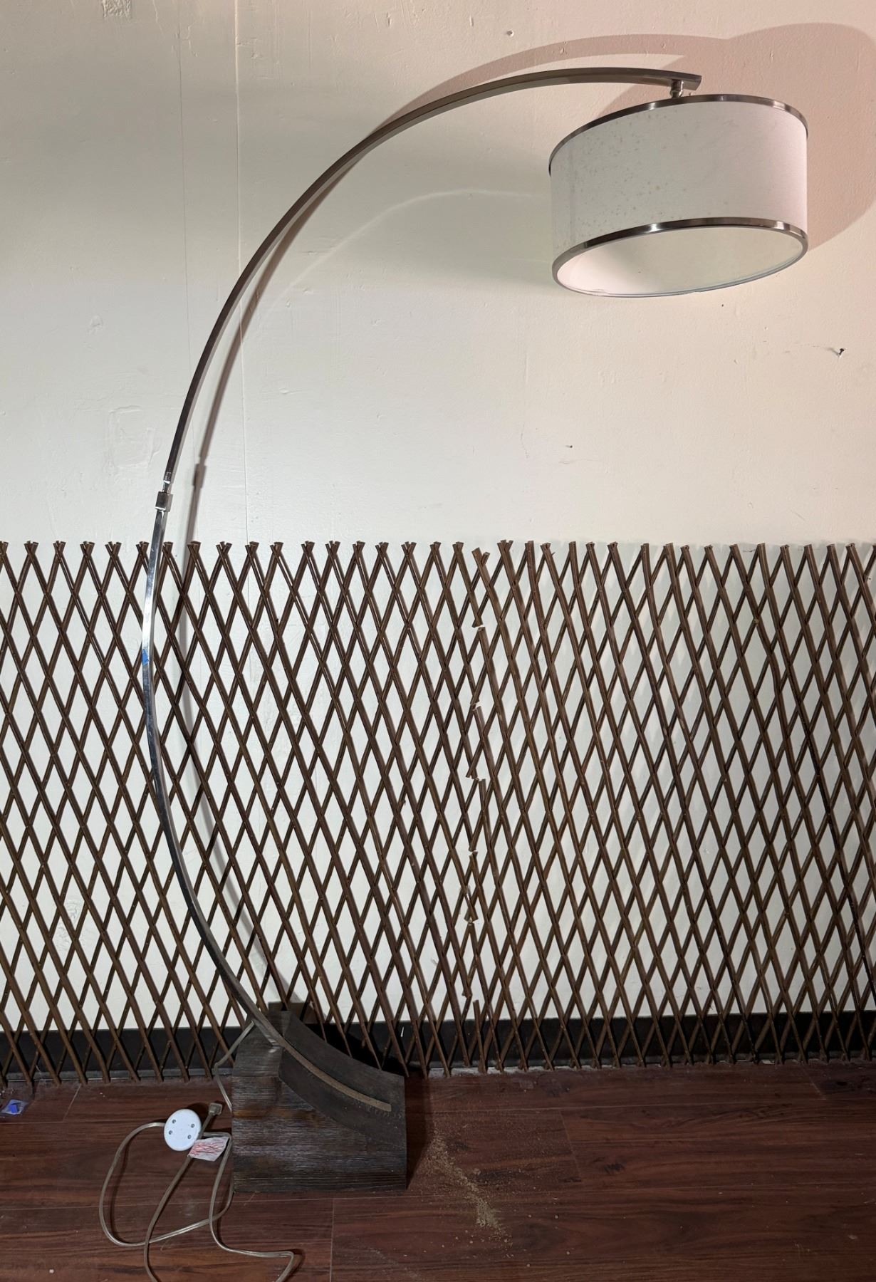 Metal Curved Arc Floor Lamp w/ Drum Shade on Wooden Base 16" Dia, 72"H