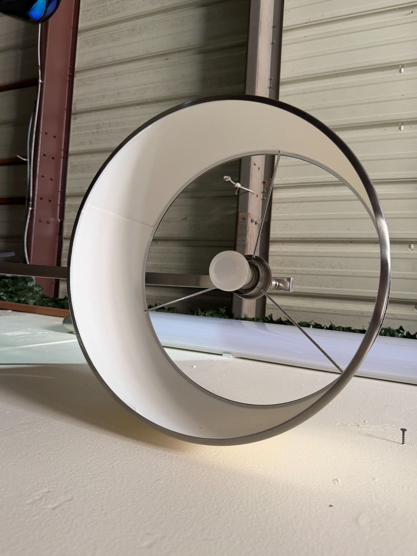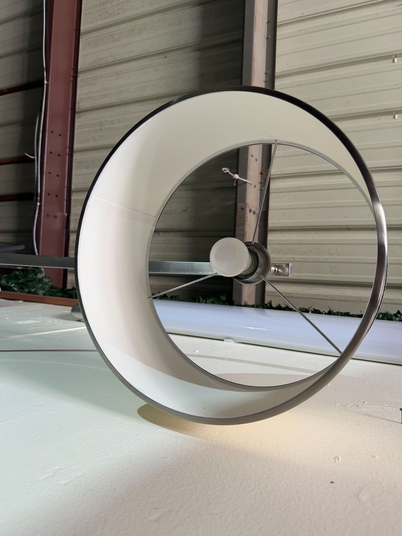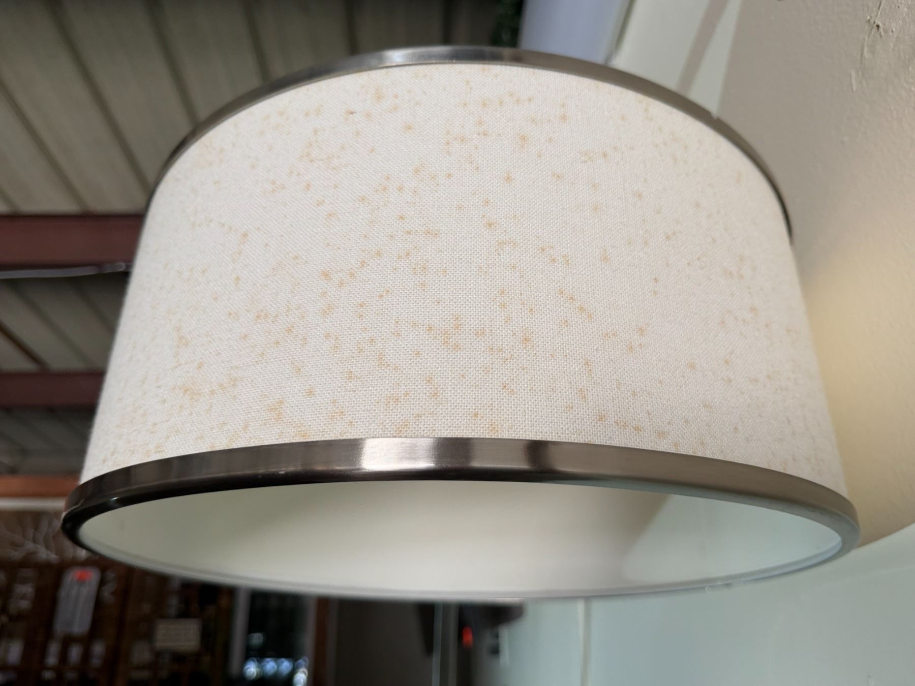 Metal Curved Arc Floor Lamp w/ Drum Shade on Wooden Base 16" Dia, 72"H