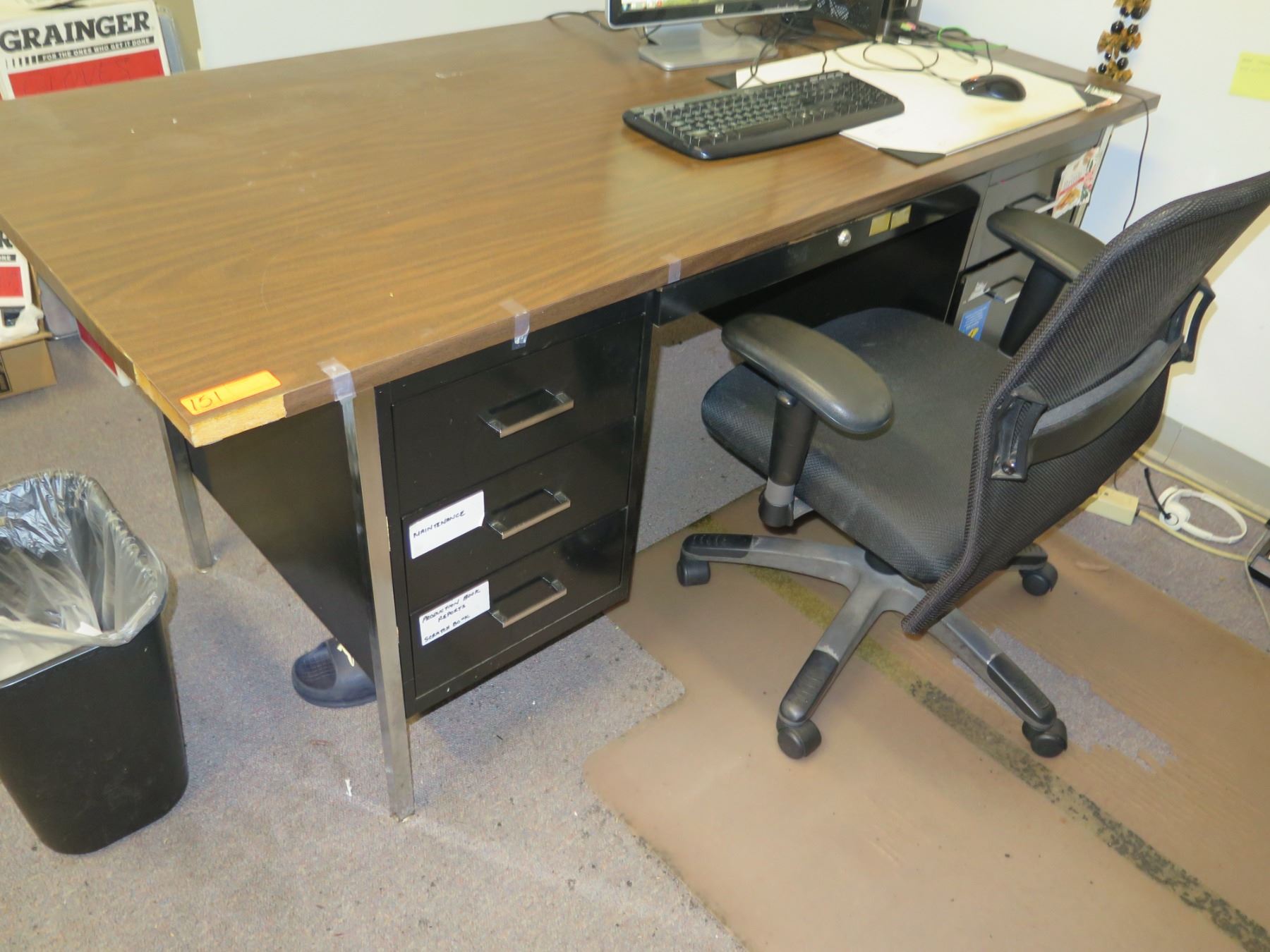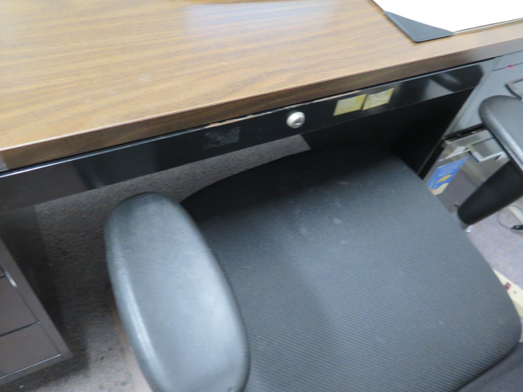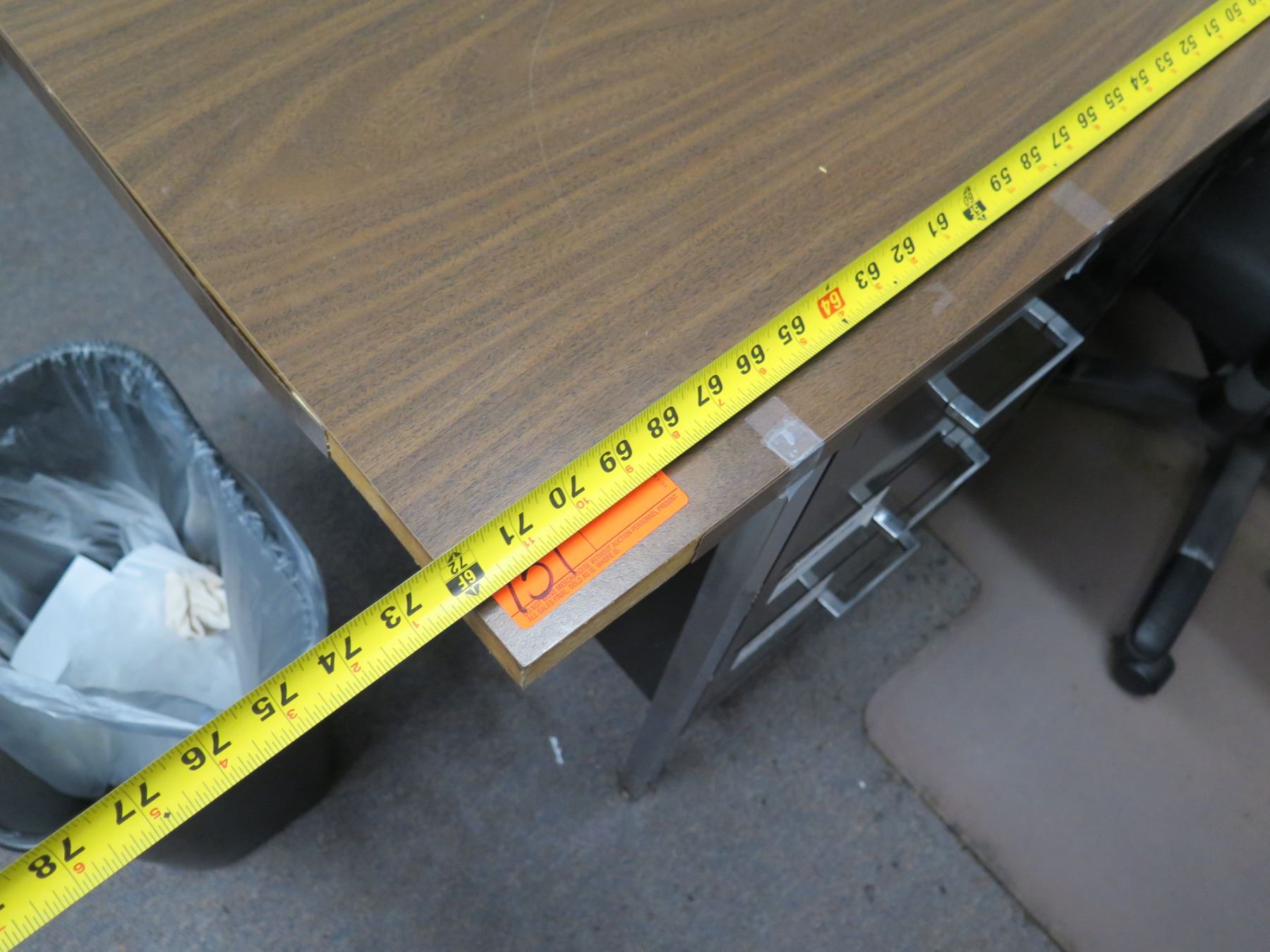 Metal Desk w/ Laminate Top, 5 Drawers & Rolling Armchair 72"x36"