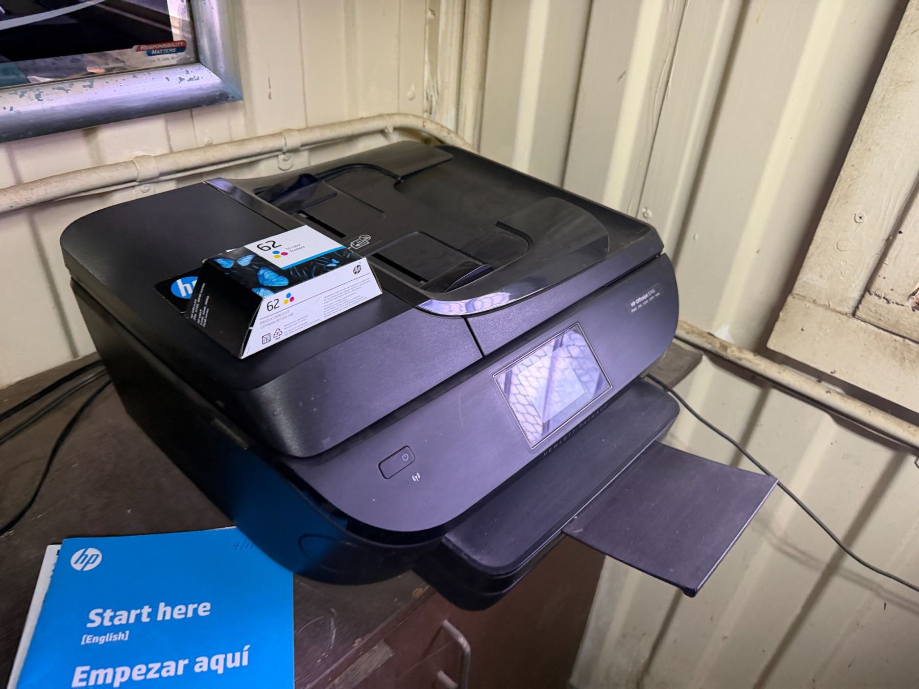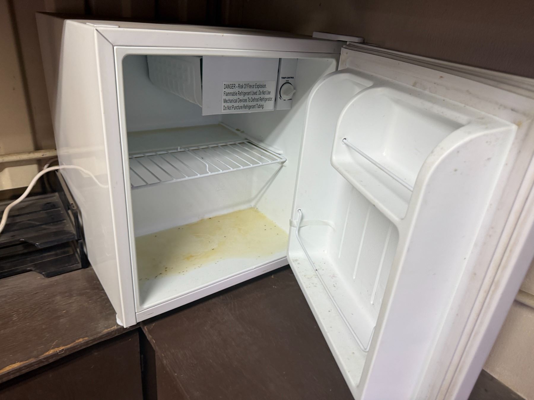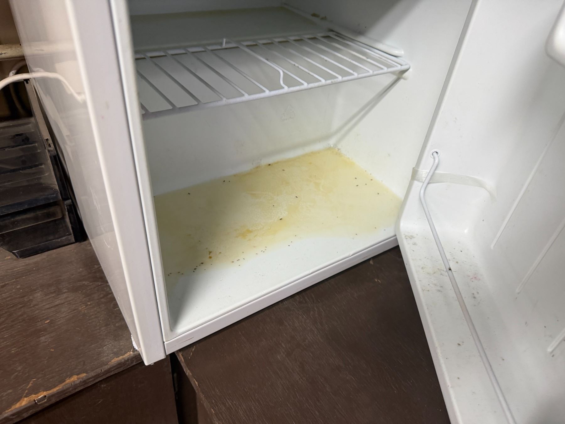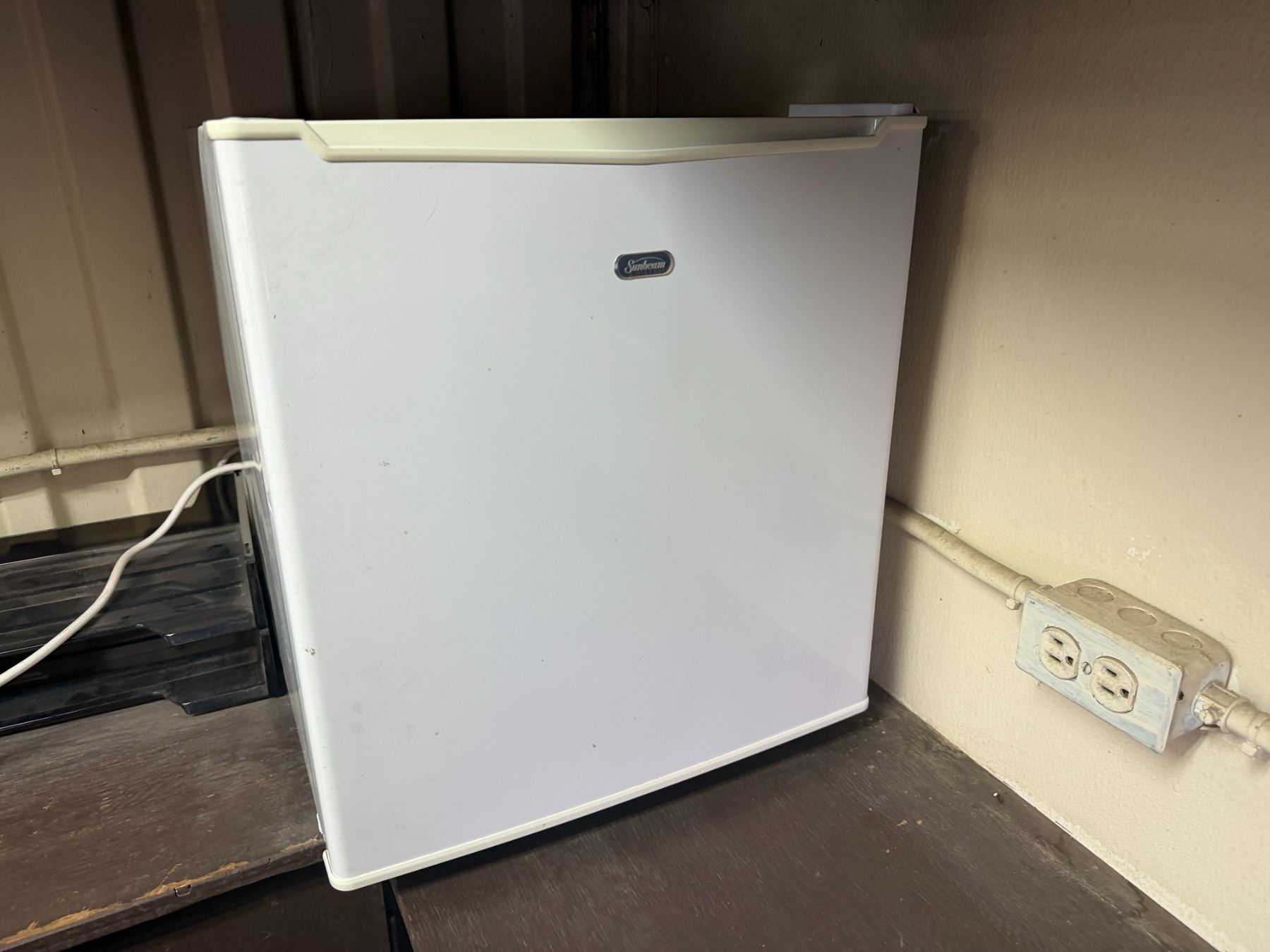 Metal Desk w/ Laminate Top, Chair & Contents: HP Elitedesk, Monitor, Printer, Sunbeam Mini-Fridge, e