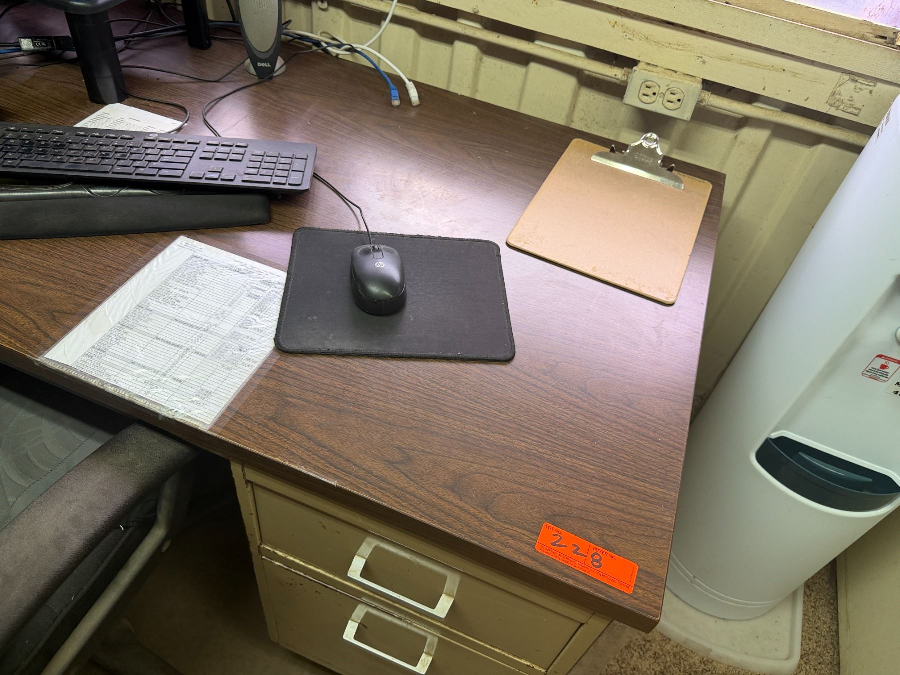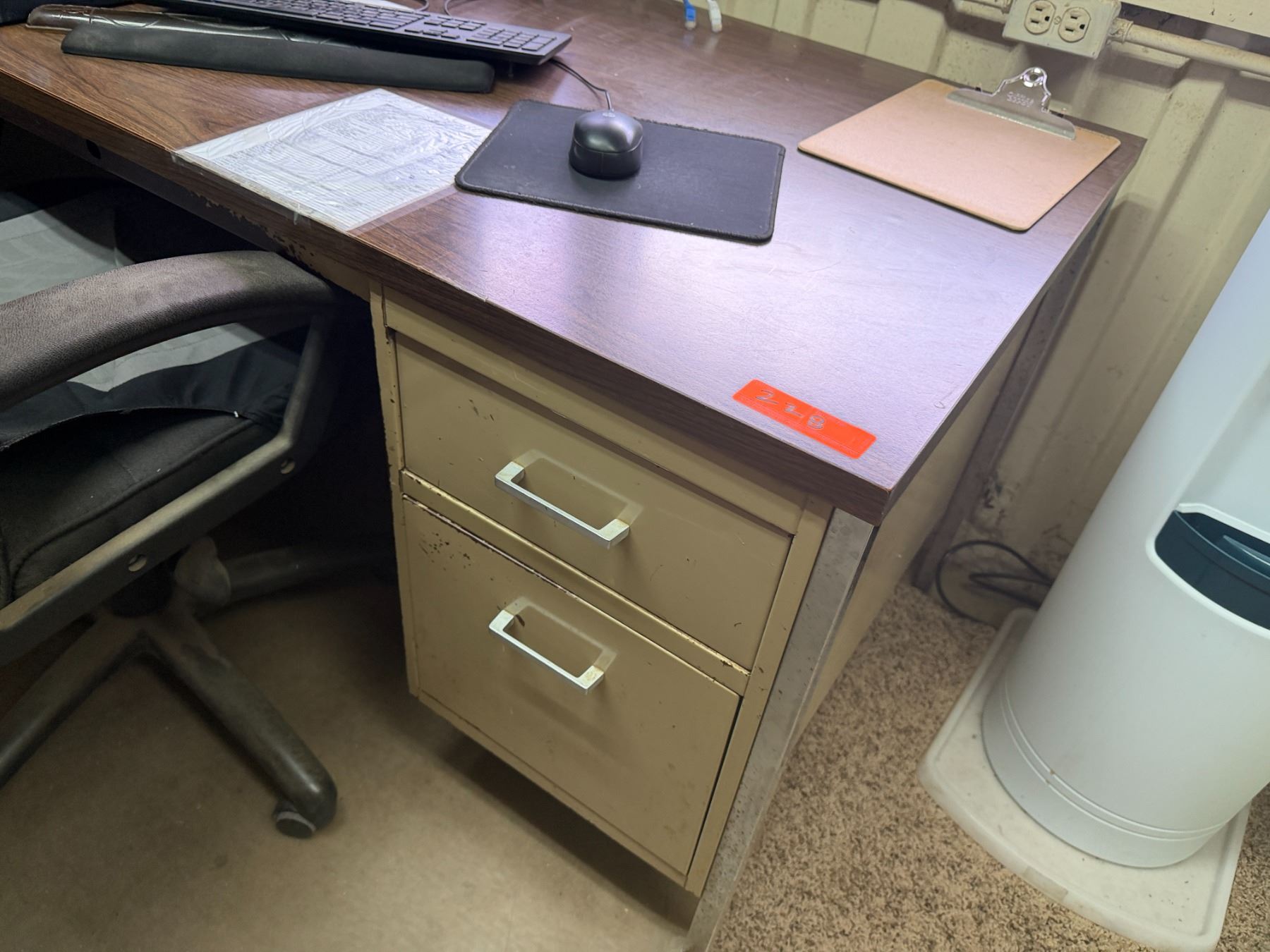 Metal Desk w/ Laminate Top, Chair & Contents: HP Elitedesk, Monitor, Printer, Sunbeam Mini-Fridge, etc