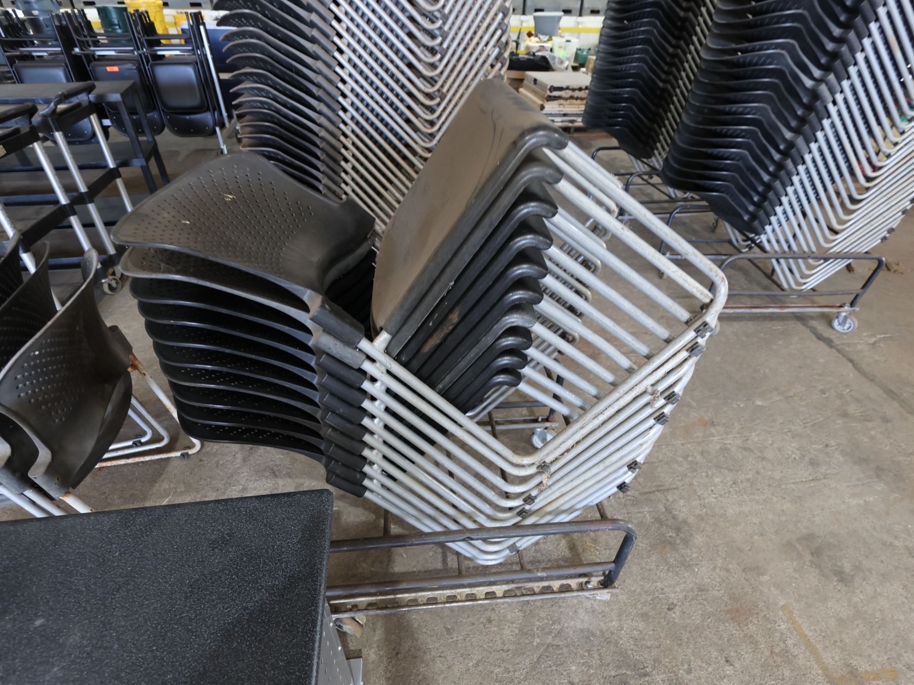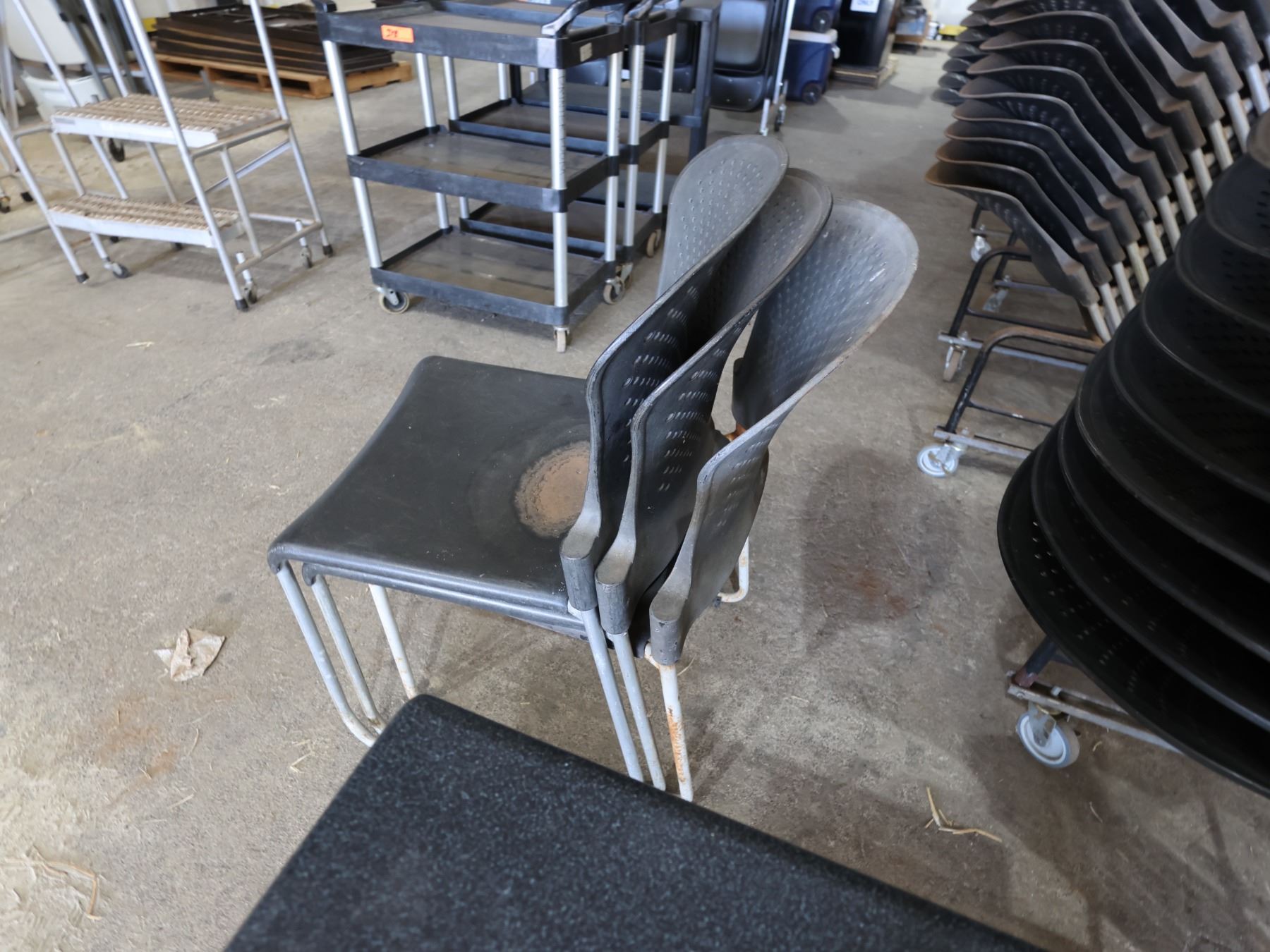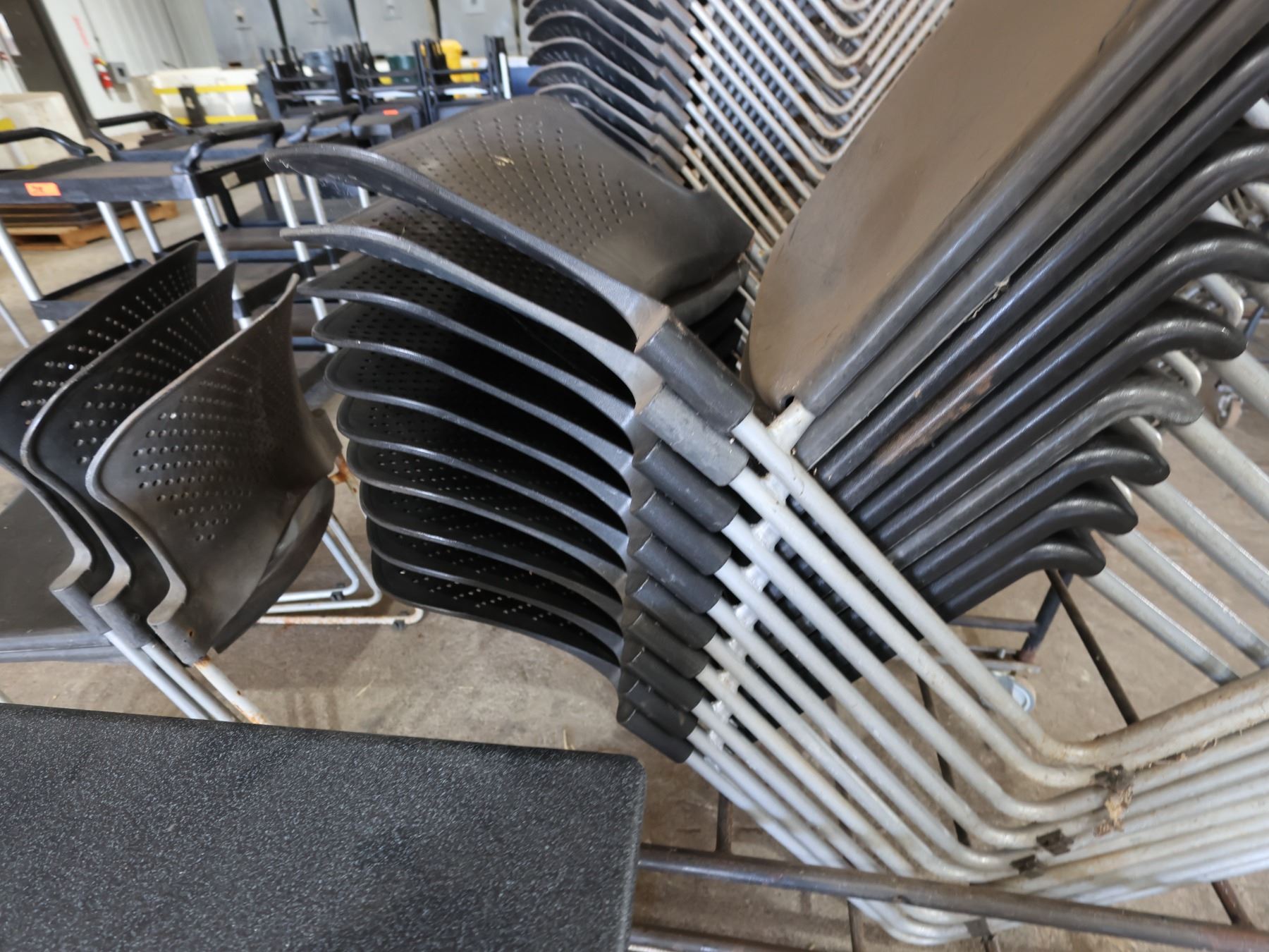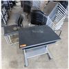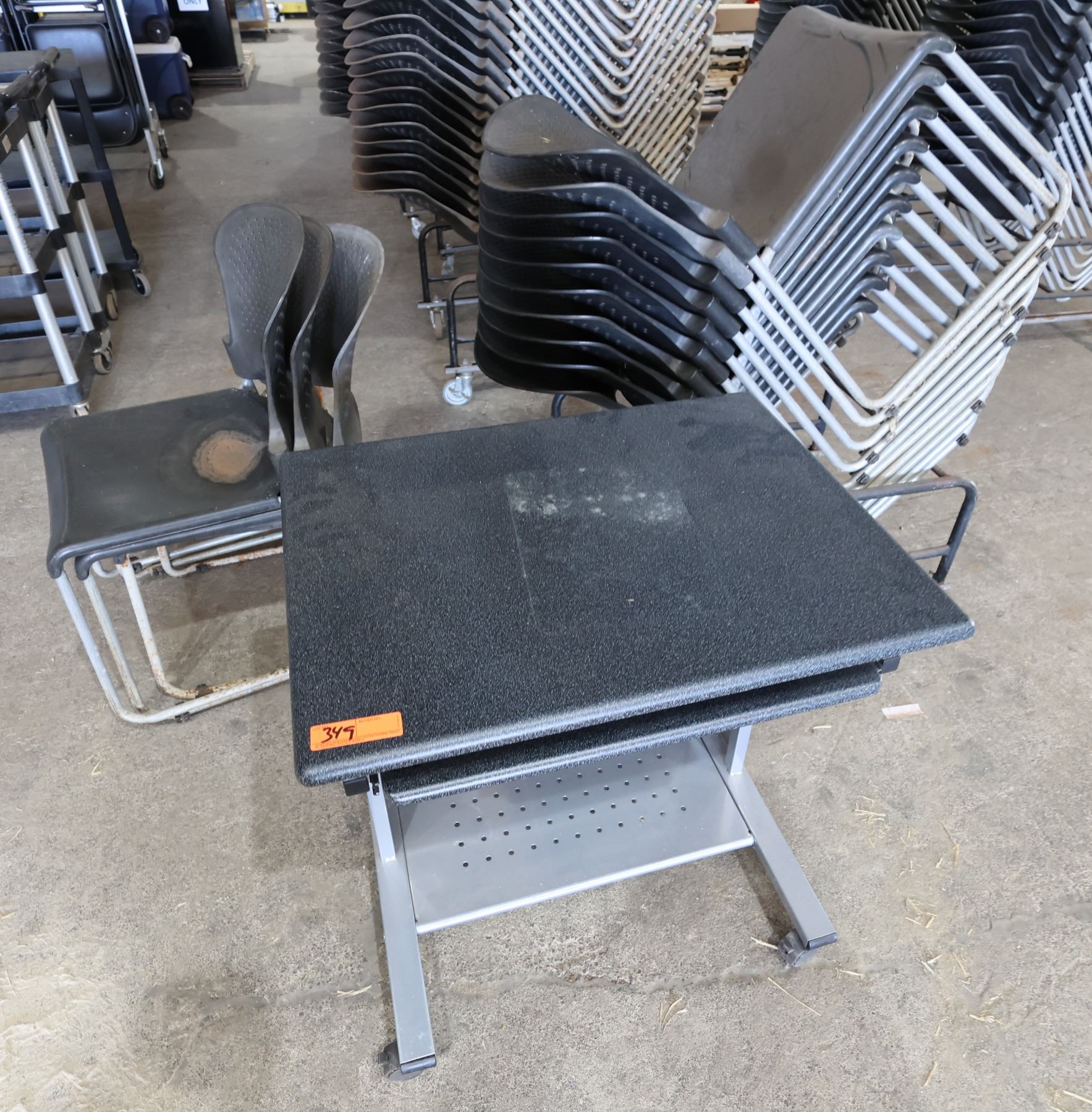 Metal Desk w/ Stone Top & Approx. 13 Stacking Plastic Chairs