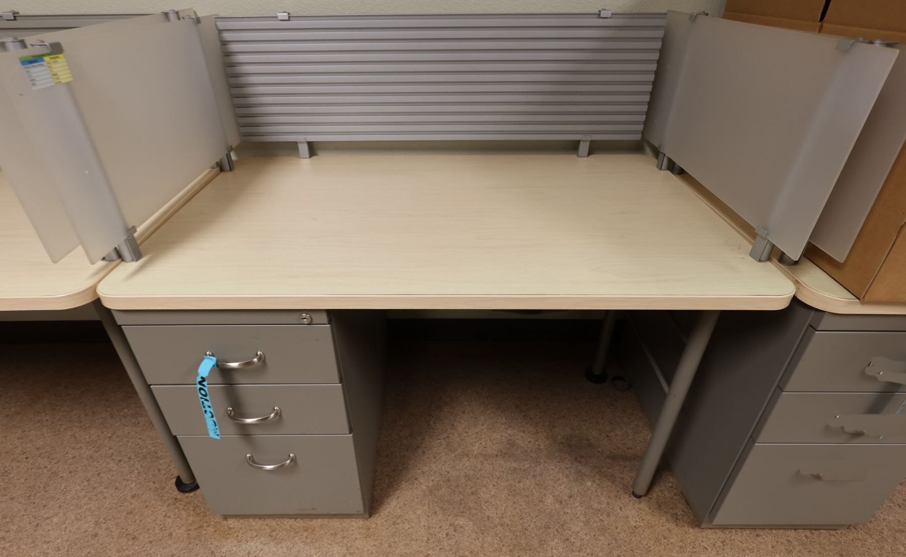 Metal Desk w/ White Top, Backboard & 3 Drawers 46" x 30" x 28"H
