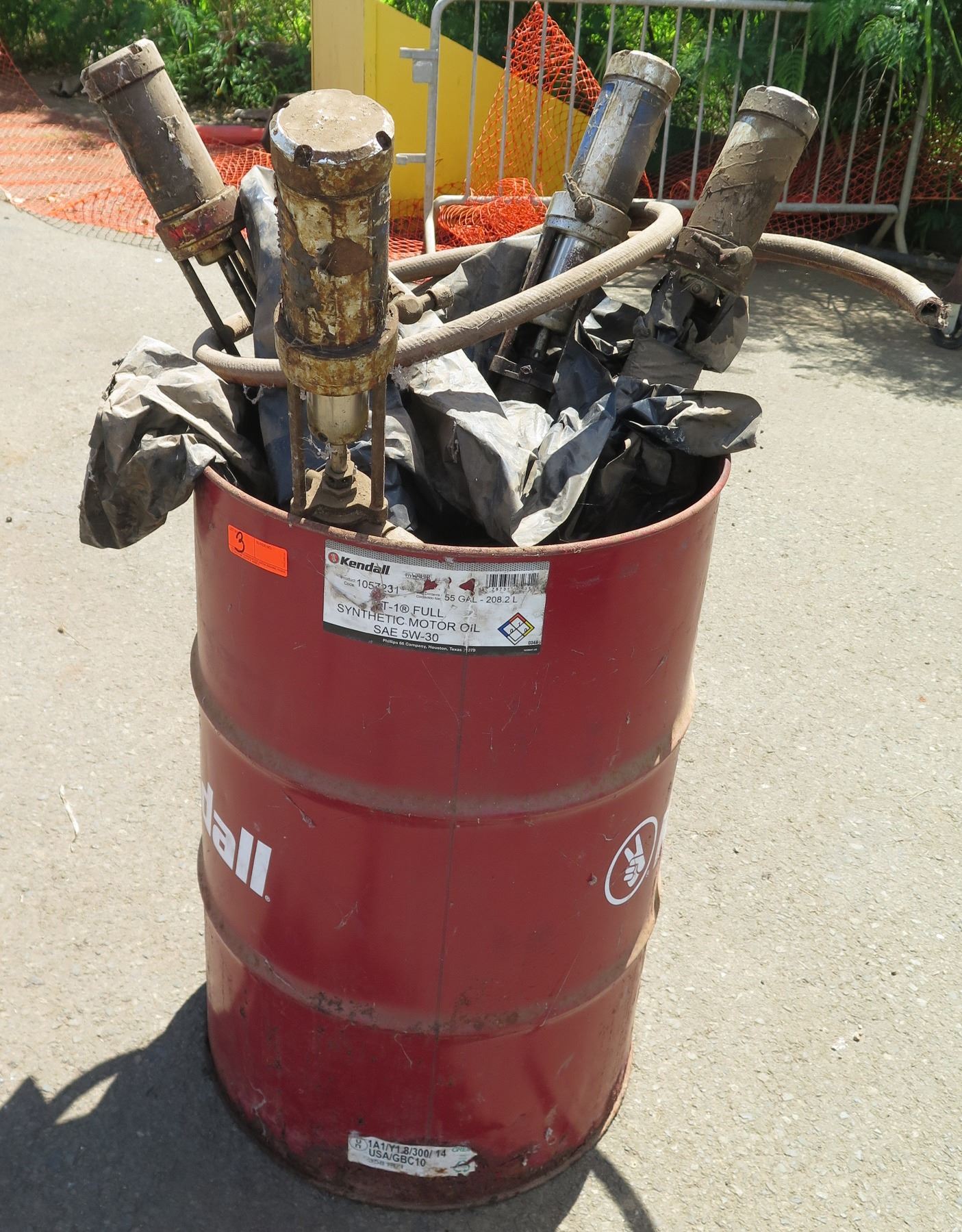 Metal Drum w/ Multiple Tools, Hydraulic Pistons & Hoses