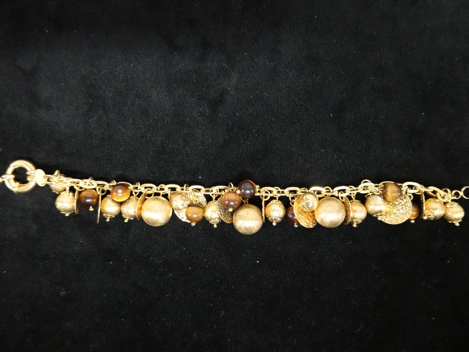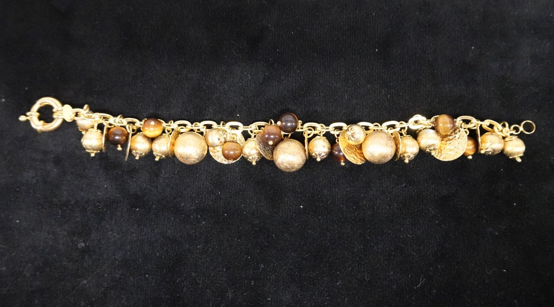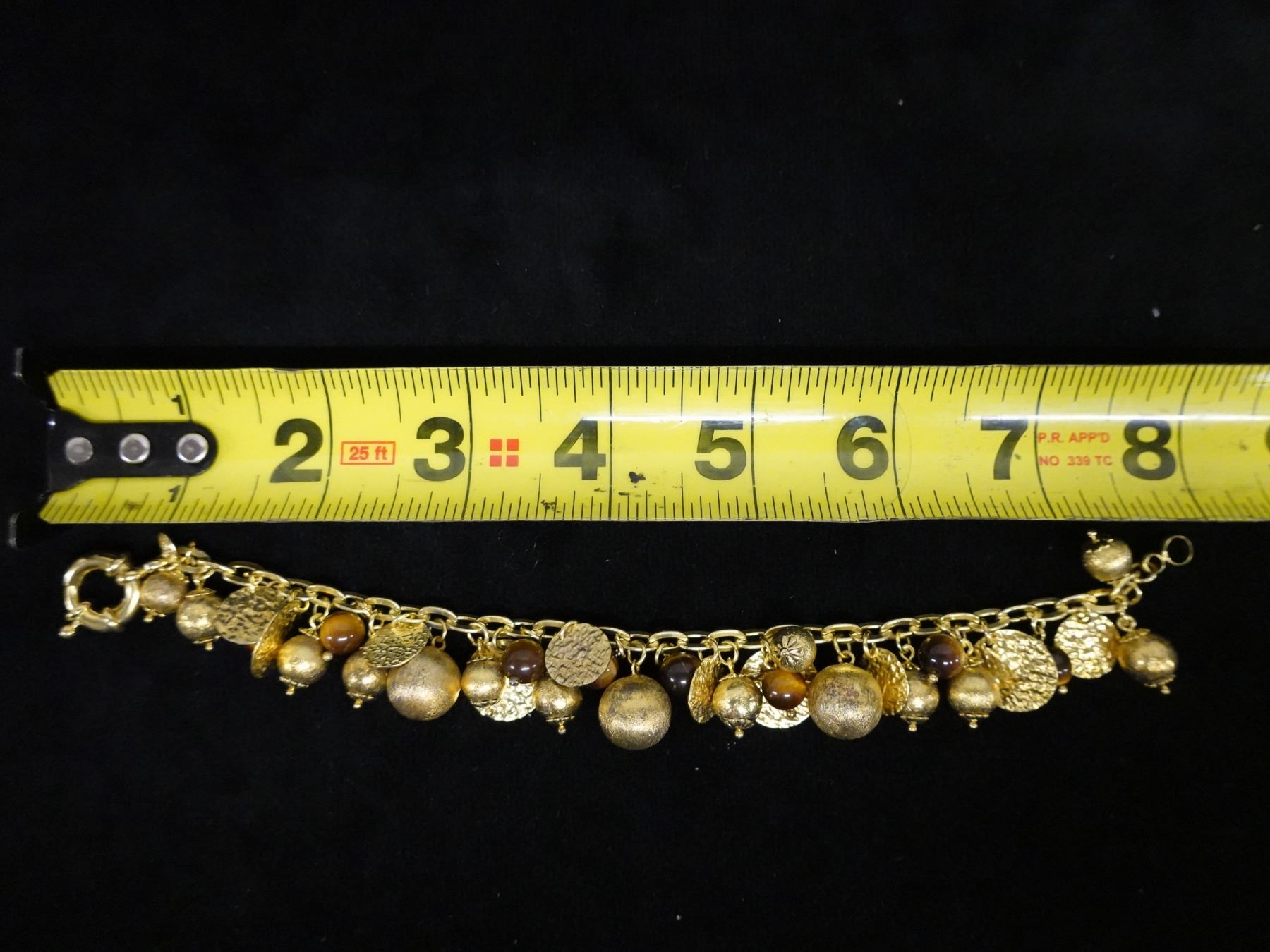 Metal Fashion Beaded Charm Bracelet Signed by R. L. Brazil, 8" L