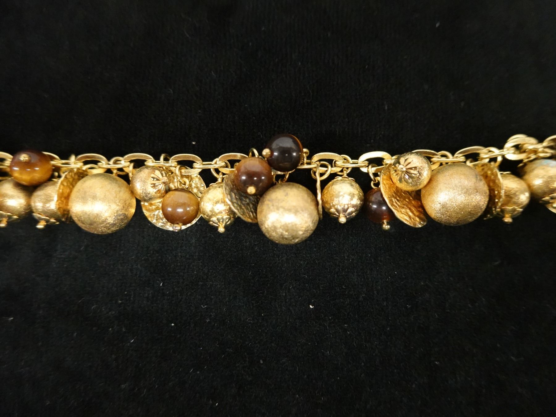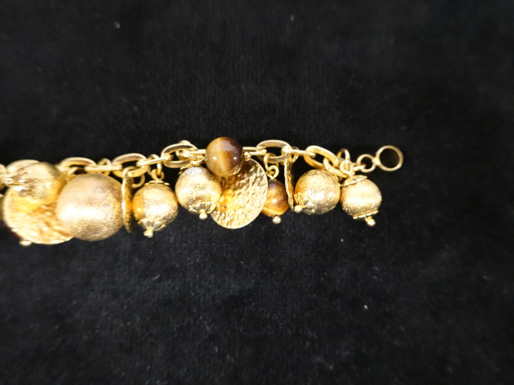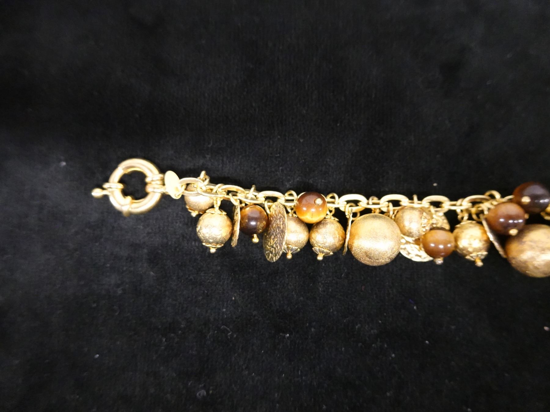 Metal Fashion Beaded Charm Bracelet Signed by R. L. Brazil, 8" L