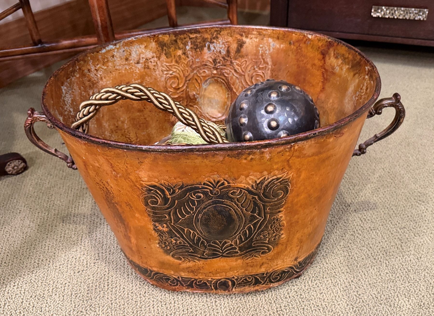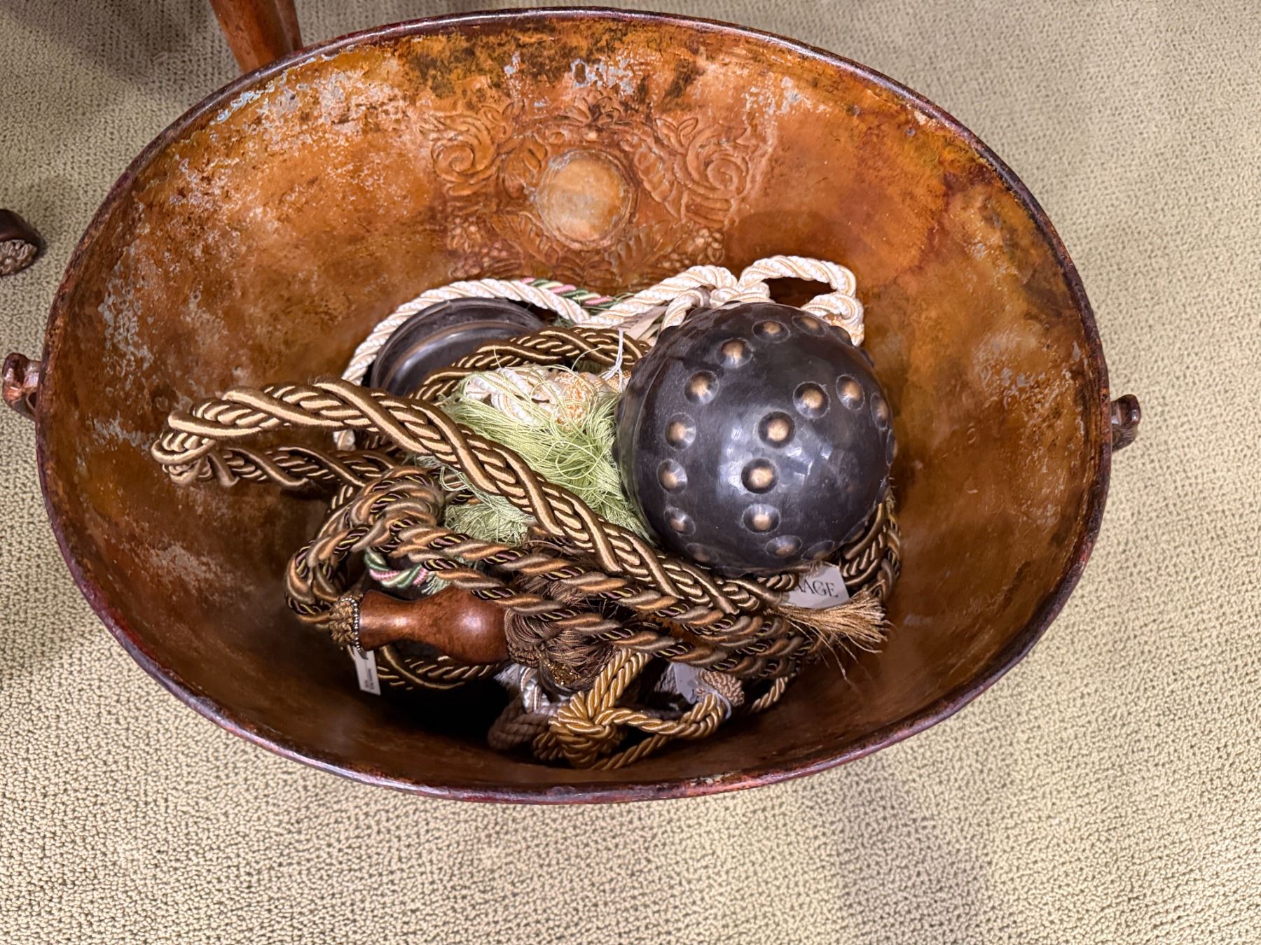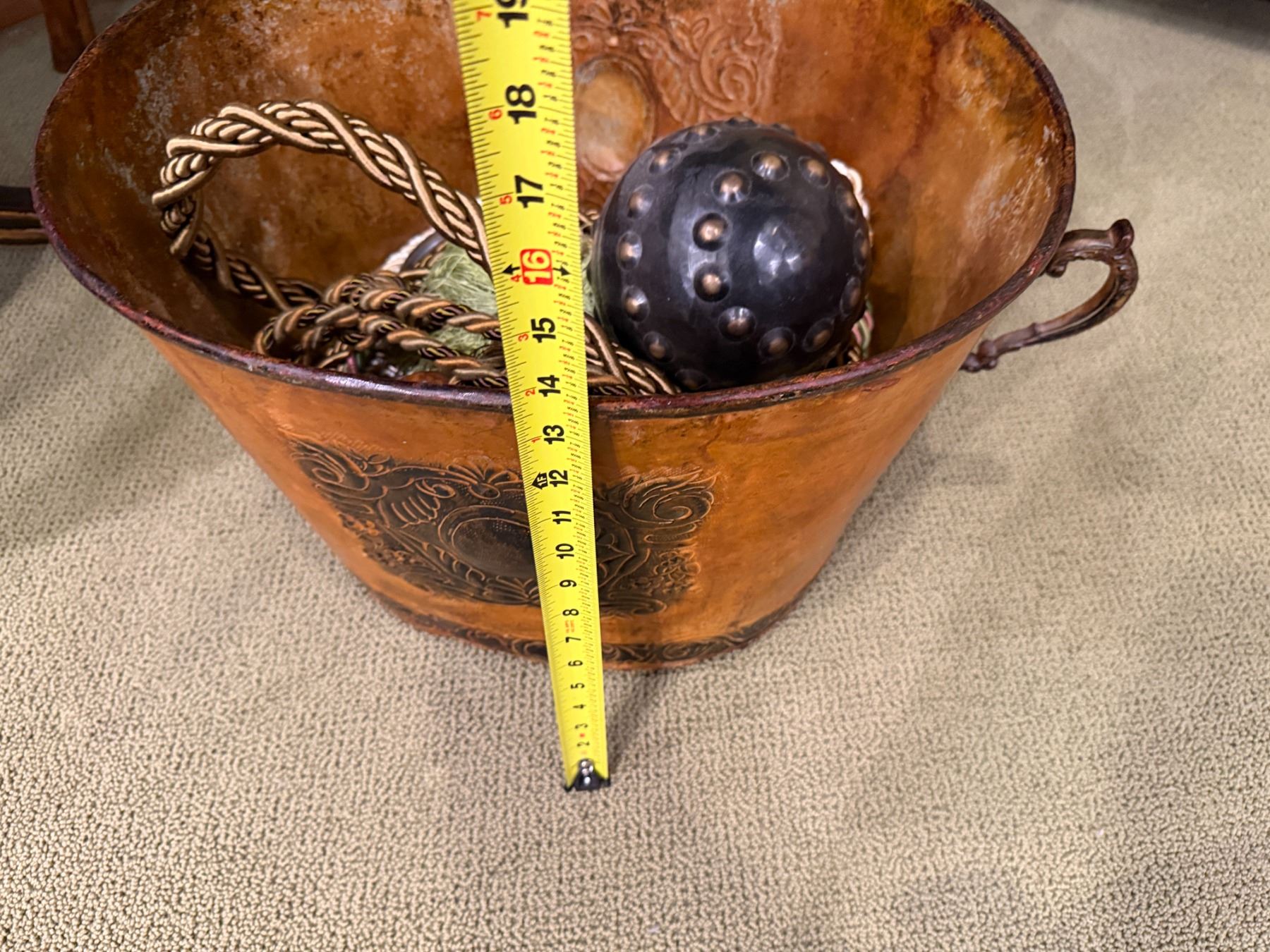 Metal Floral Planter w/ Ropes & Ball 19" x 15" x 14"H