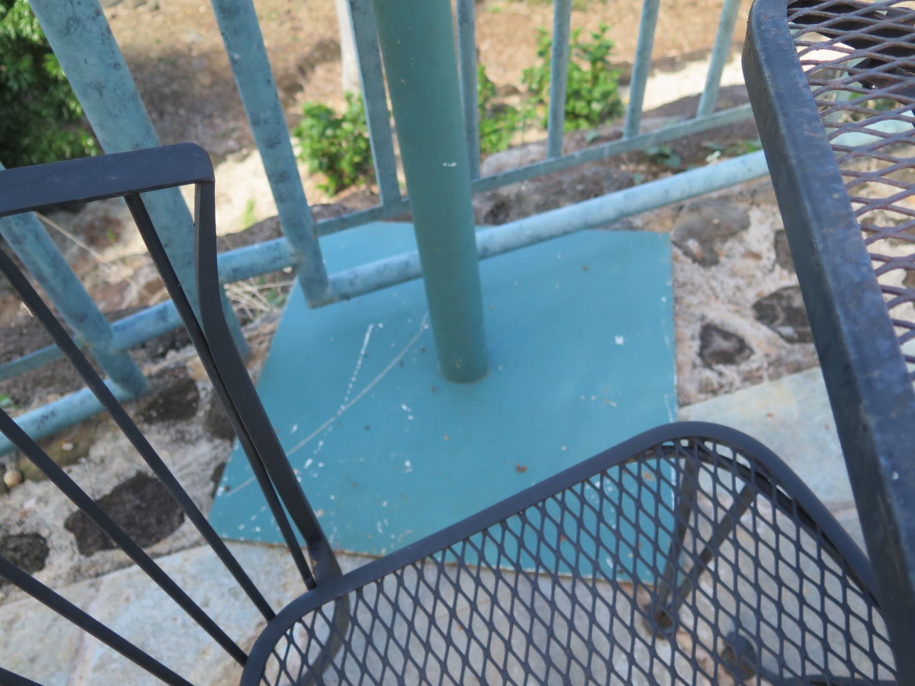Metal Mesh Square Table & 2 Chairs w/ Outdoor Umbrella in Pedestal Base