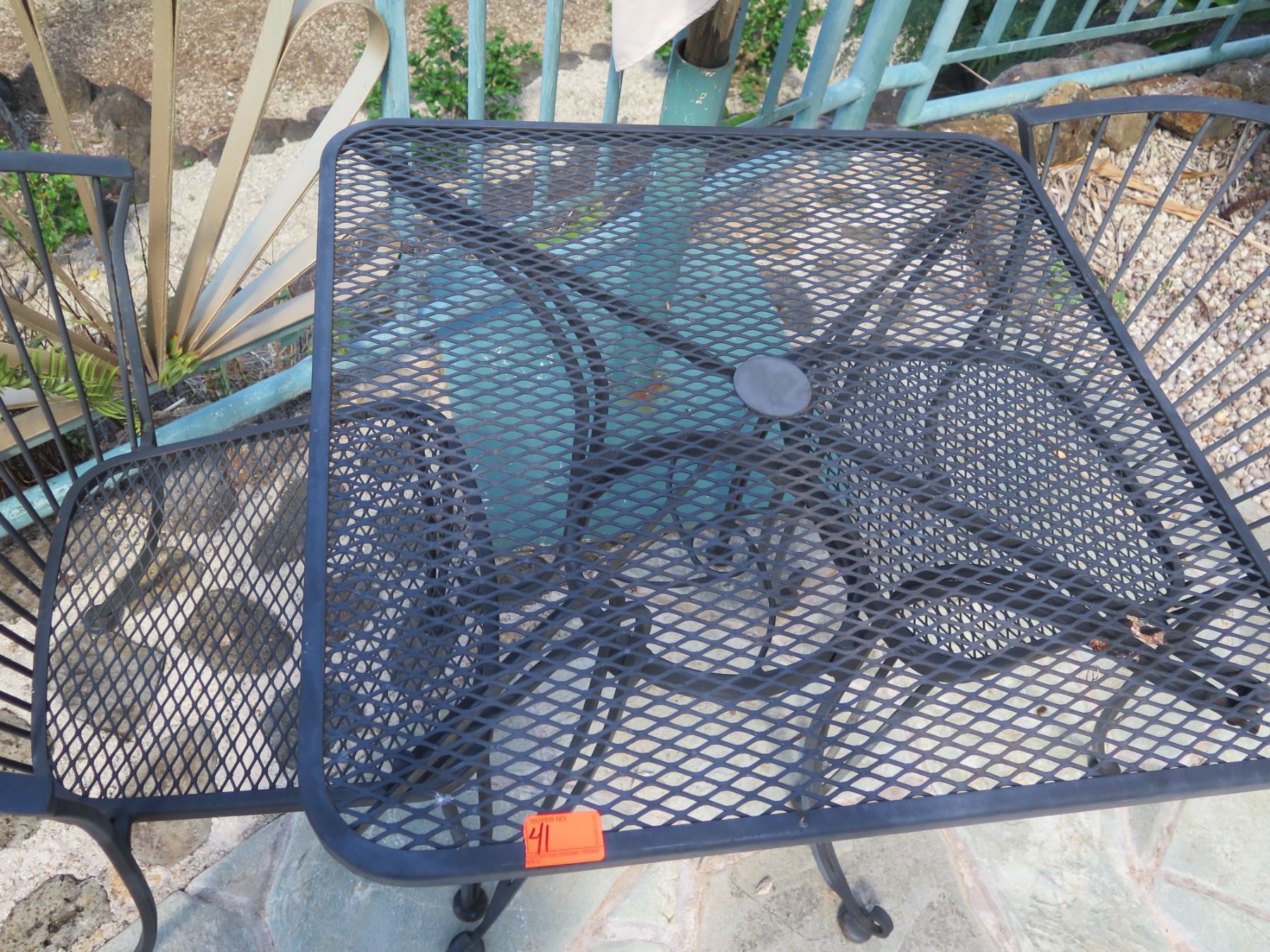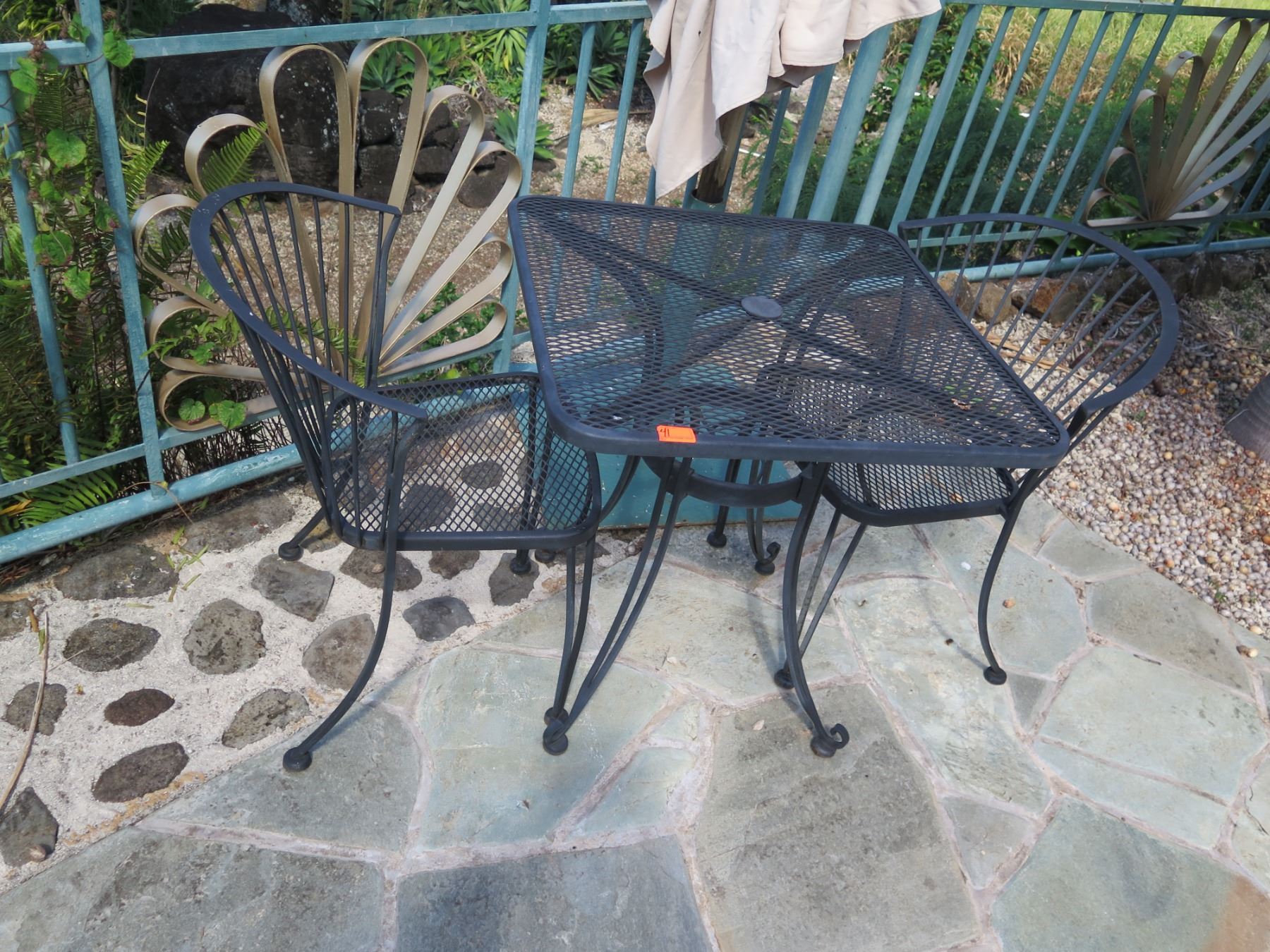 Metal Mesh Square Table & 2 Chairs w/ Outdoor Umbrella in Pedestal Base