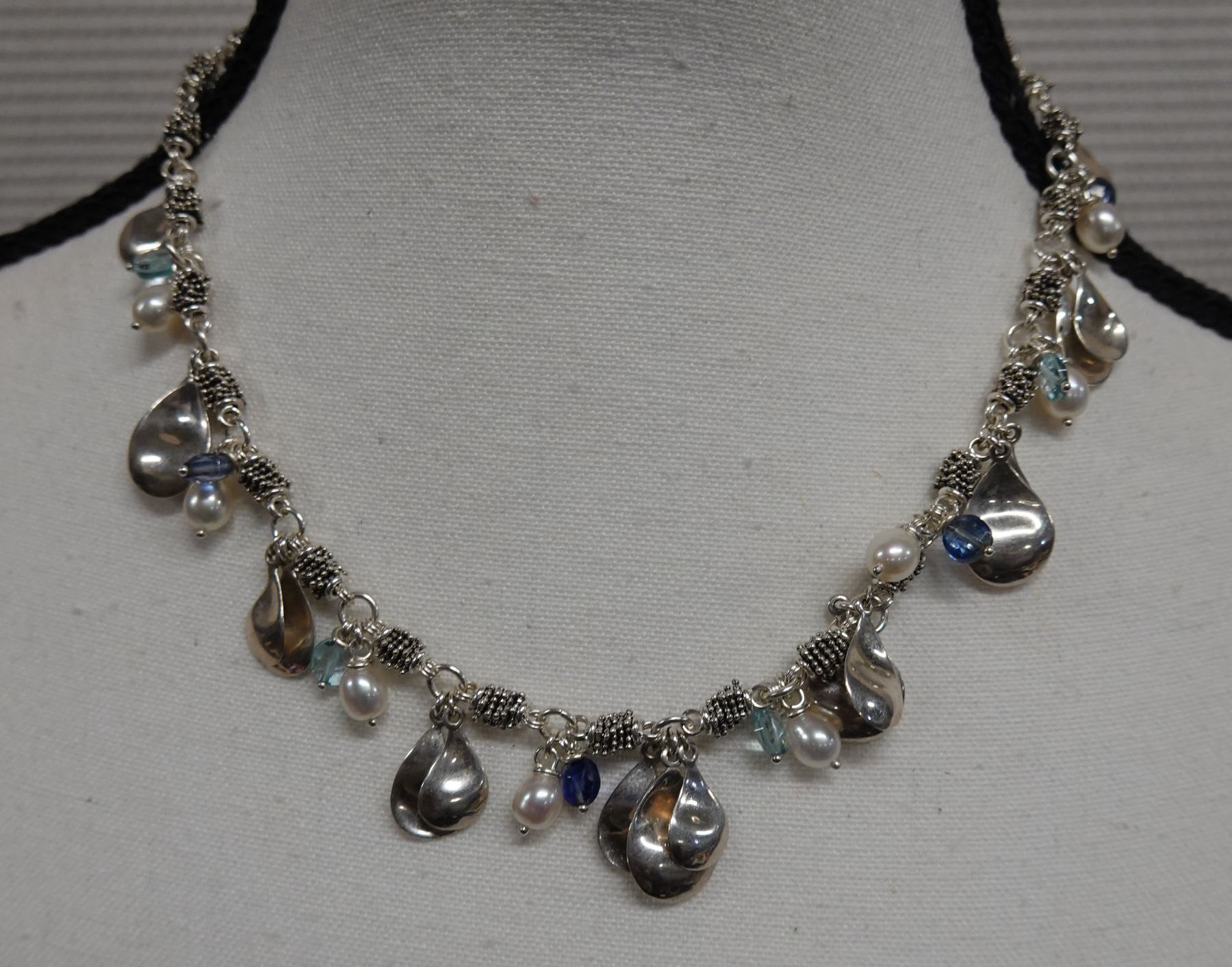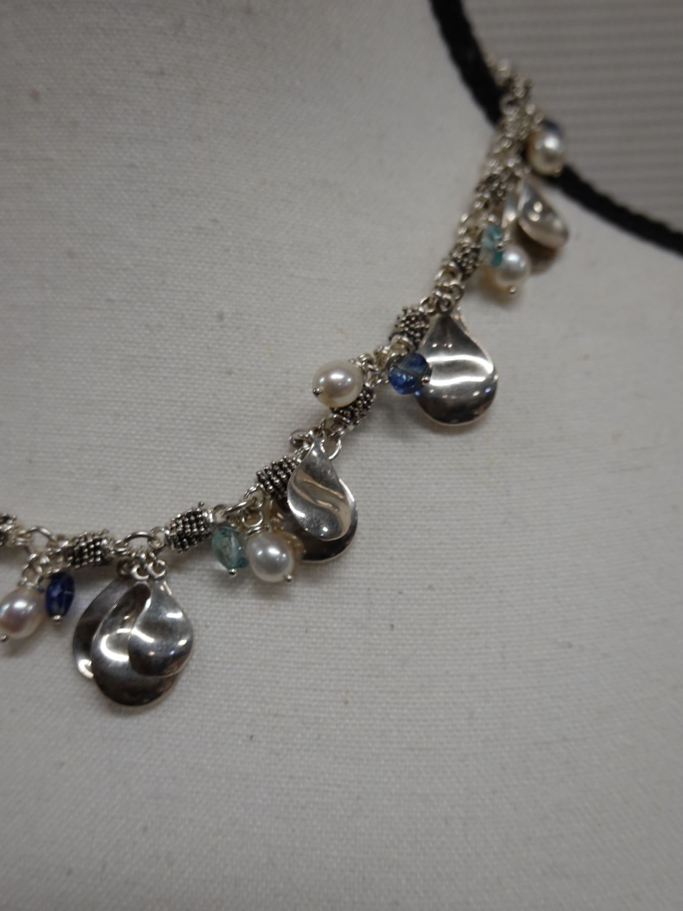 Metal Necklace w/ Teardrops, Pearls & Bead Accents, 18" L