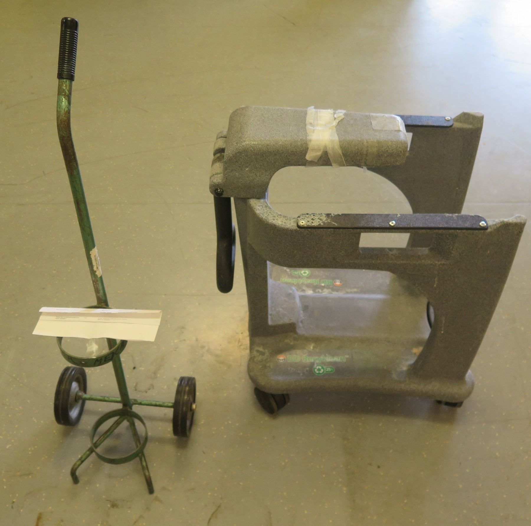 Metal Oxygen eTank Carrier & BD Recykleen Foot Operated Collector Trolley