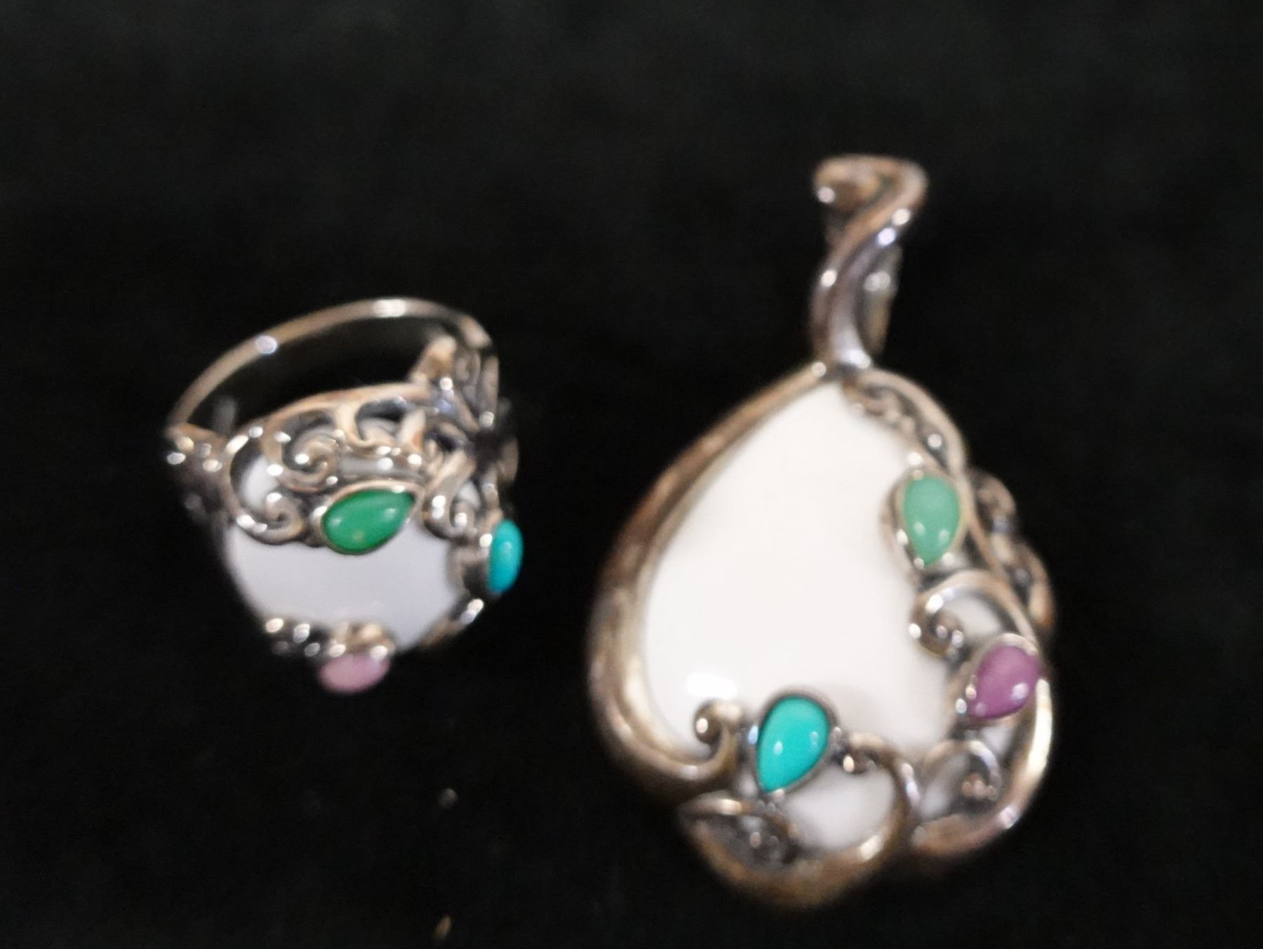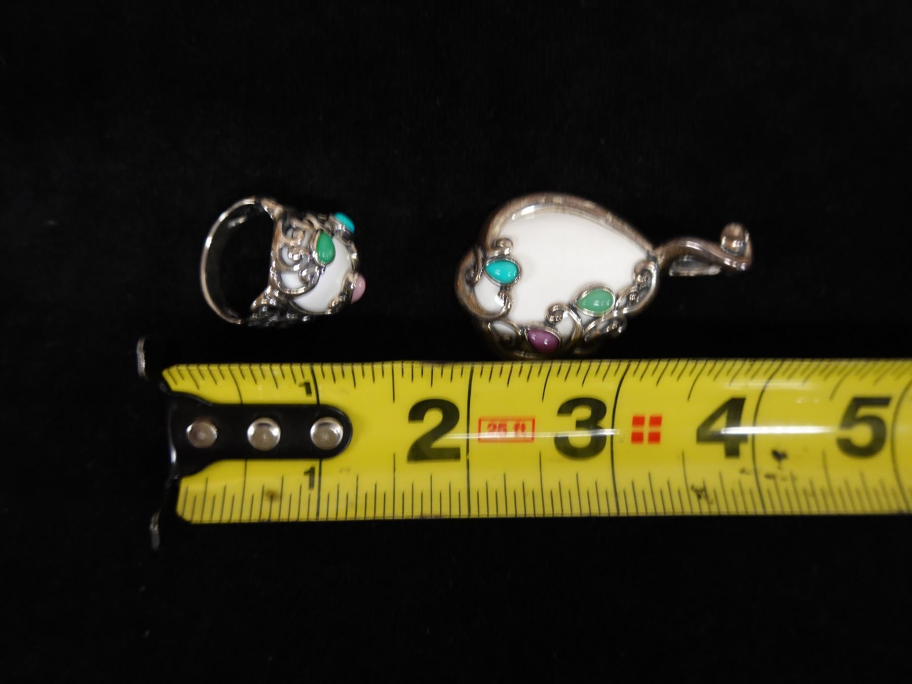 Metal Pendant w/ Stone Accents & Matching Ring, Misc Sizes