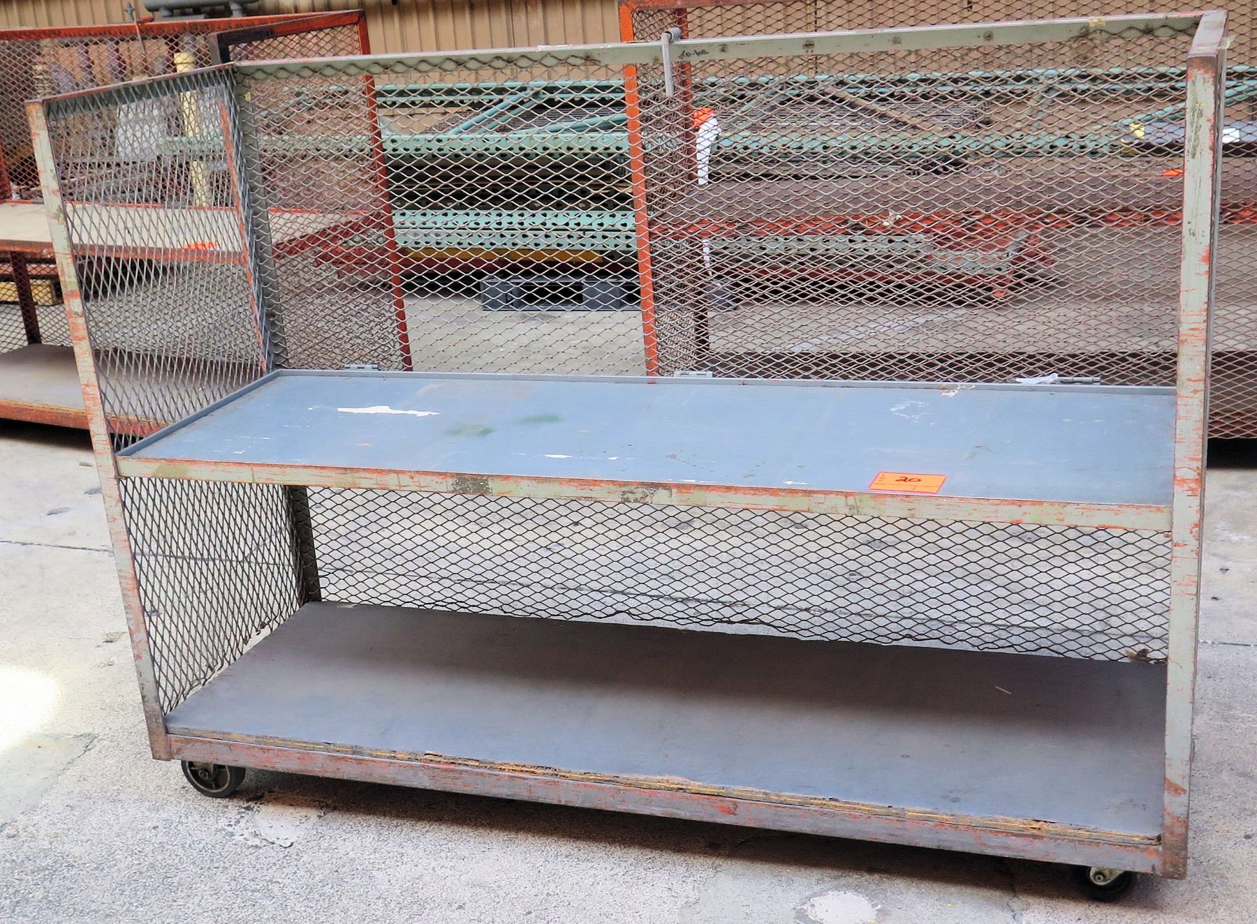 Metal Rolling Cage Cart with Shelf, 73"L x 25"W x 53"H