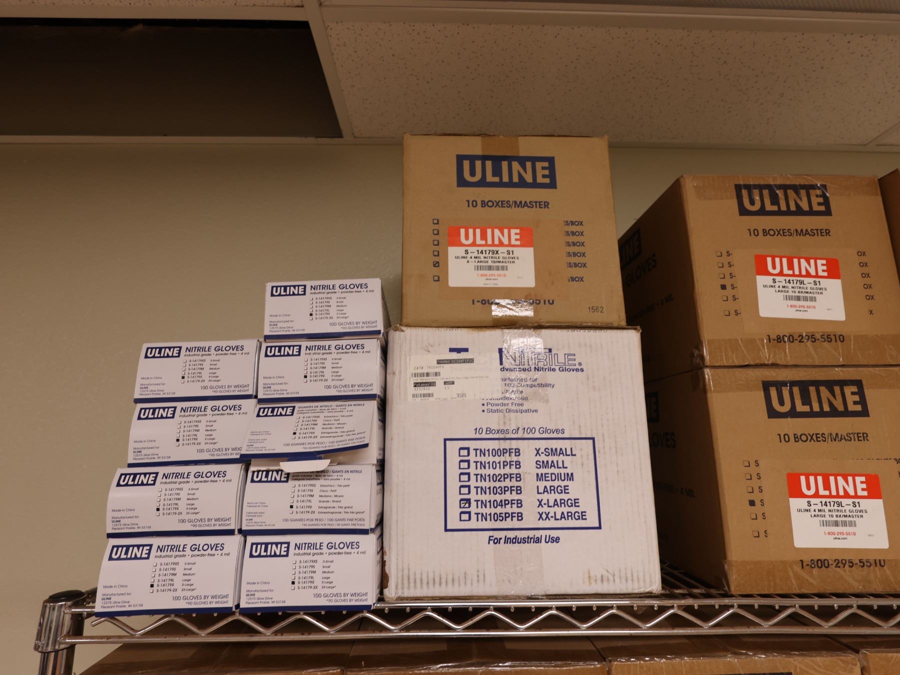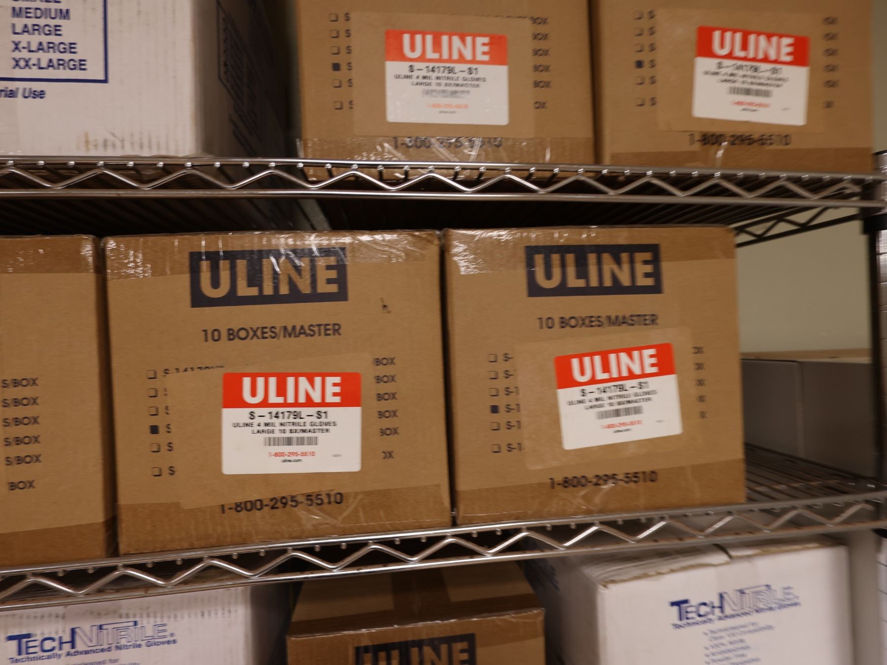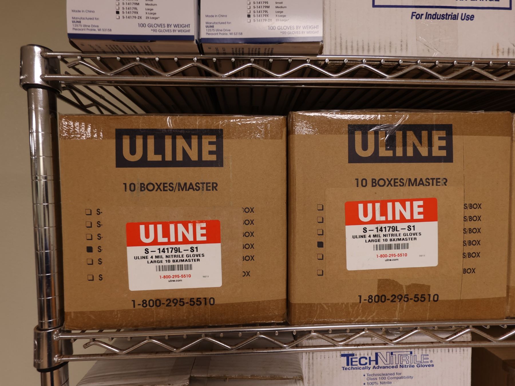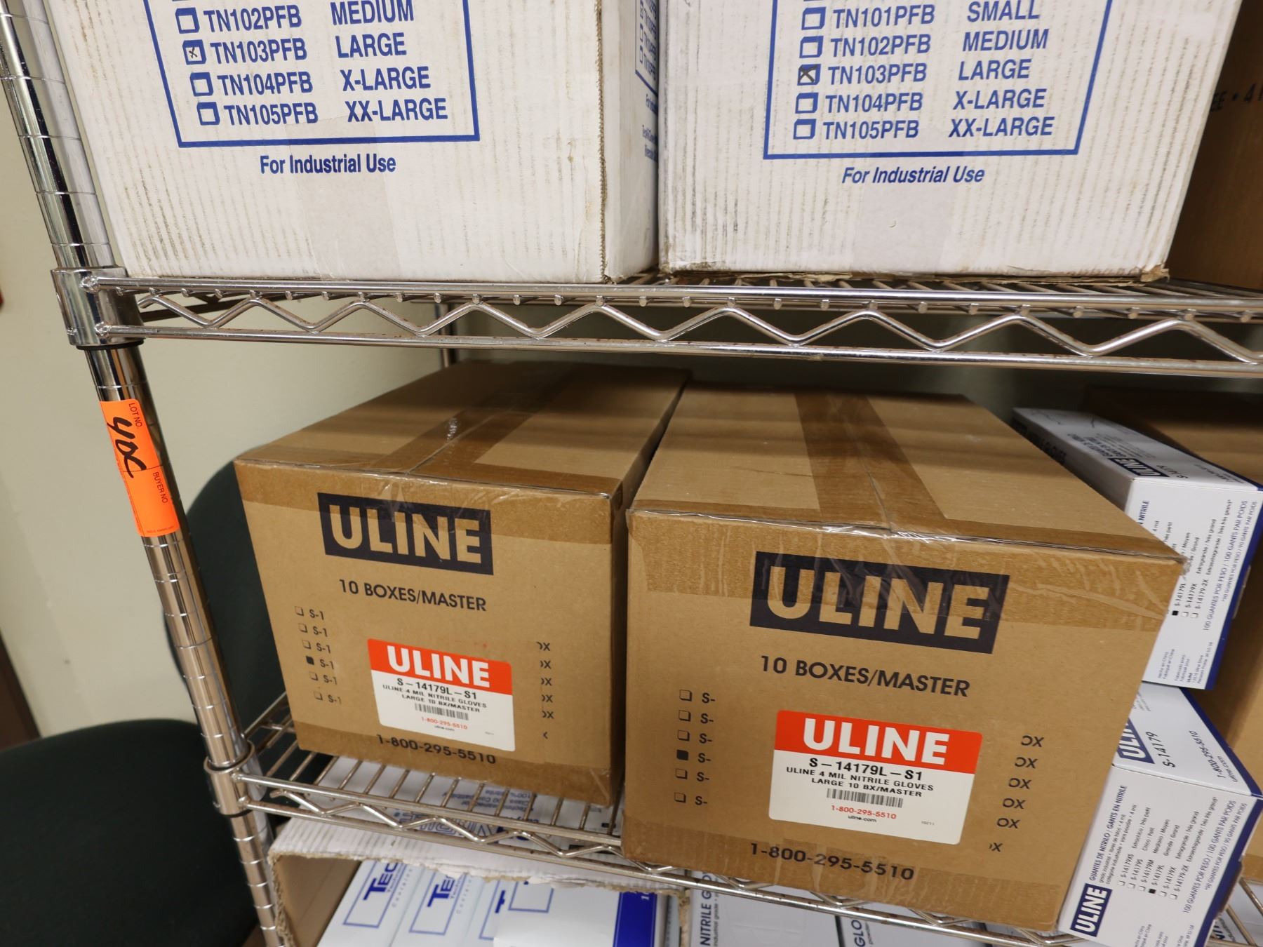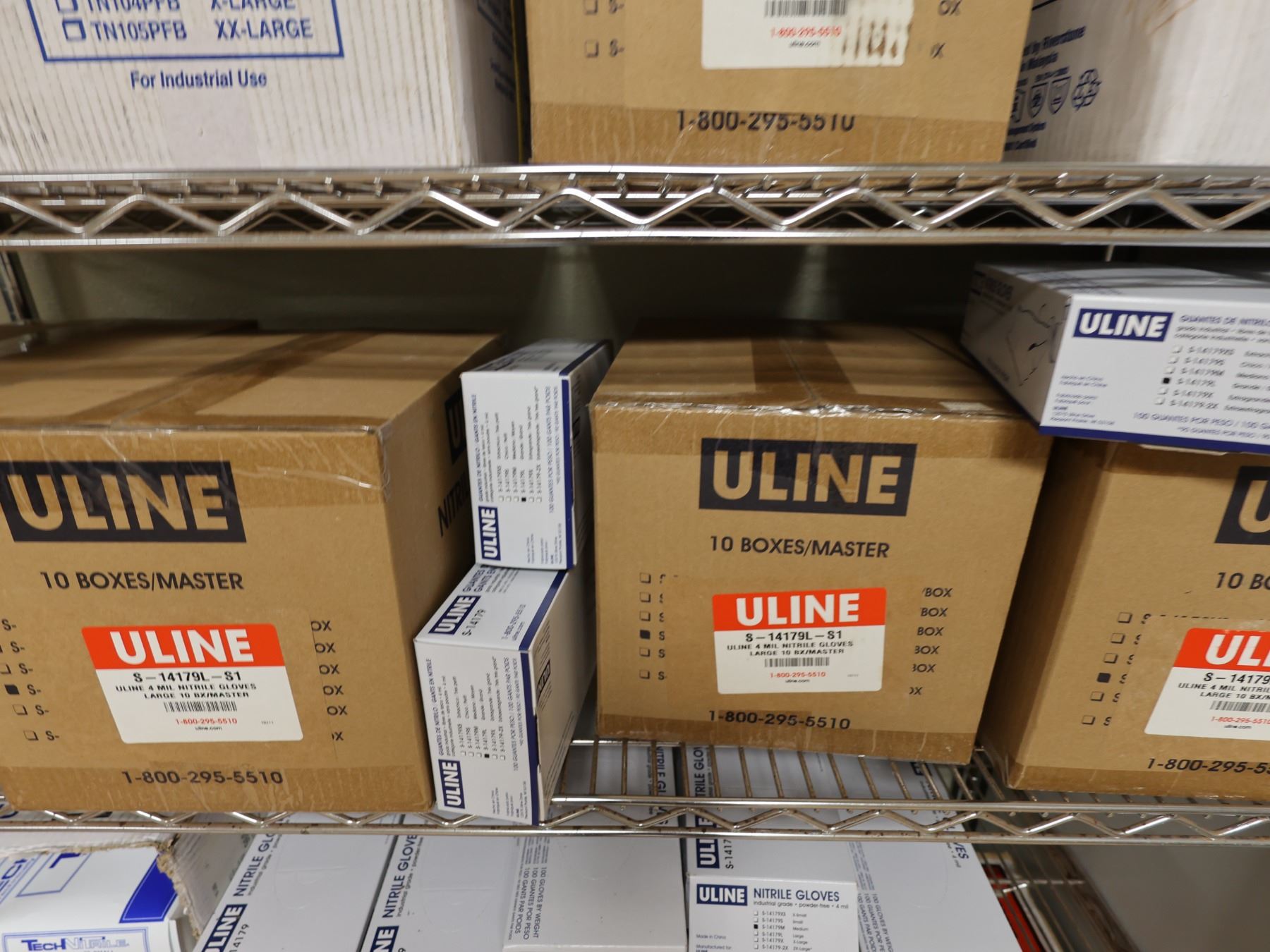 Metal Rolling Wire Mesh 5-Tier Shelving Unit & Contents: Nitrile Gloves, Misc Brands & Sizes