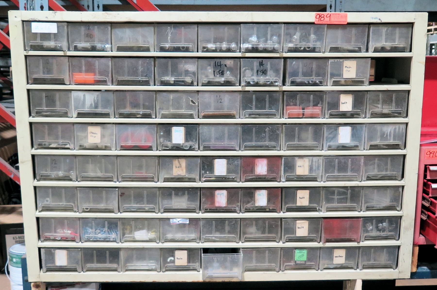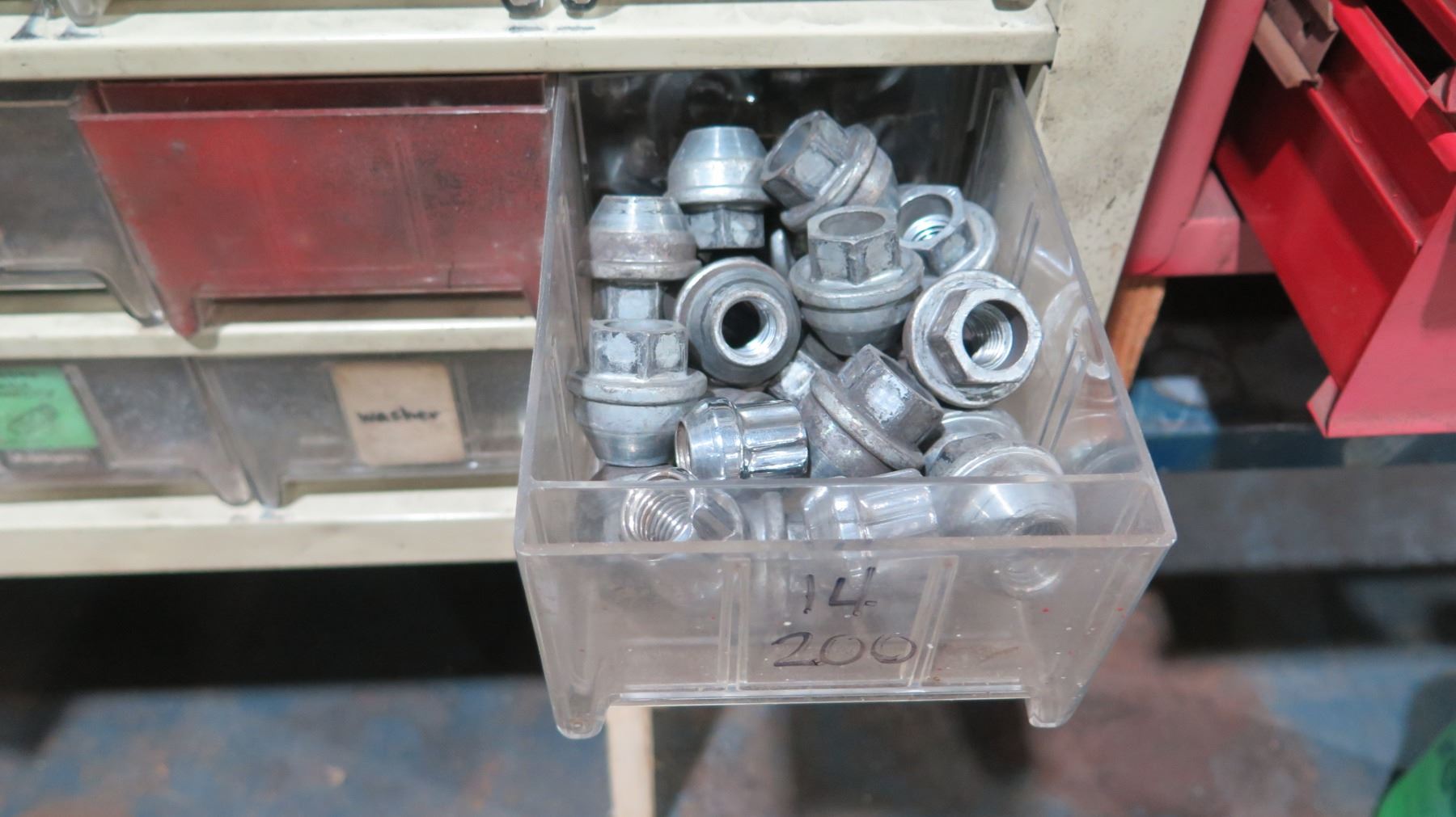 Metal Shelf w/ Multiple Plastic Bins Filled - Screws, Washers, Nuts, etc