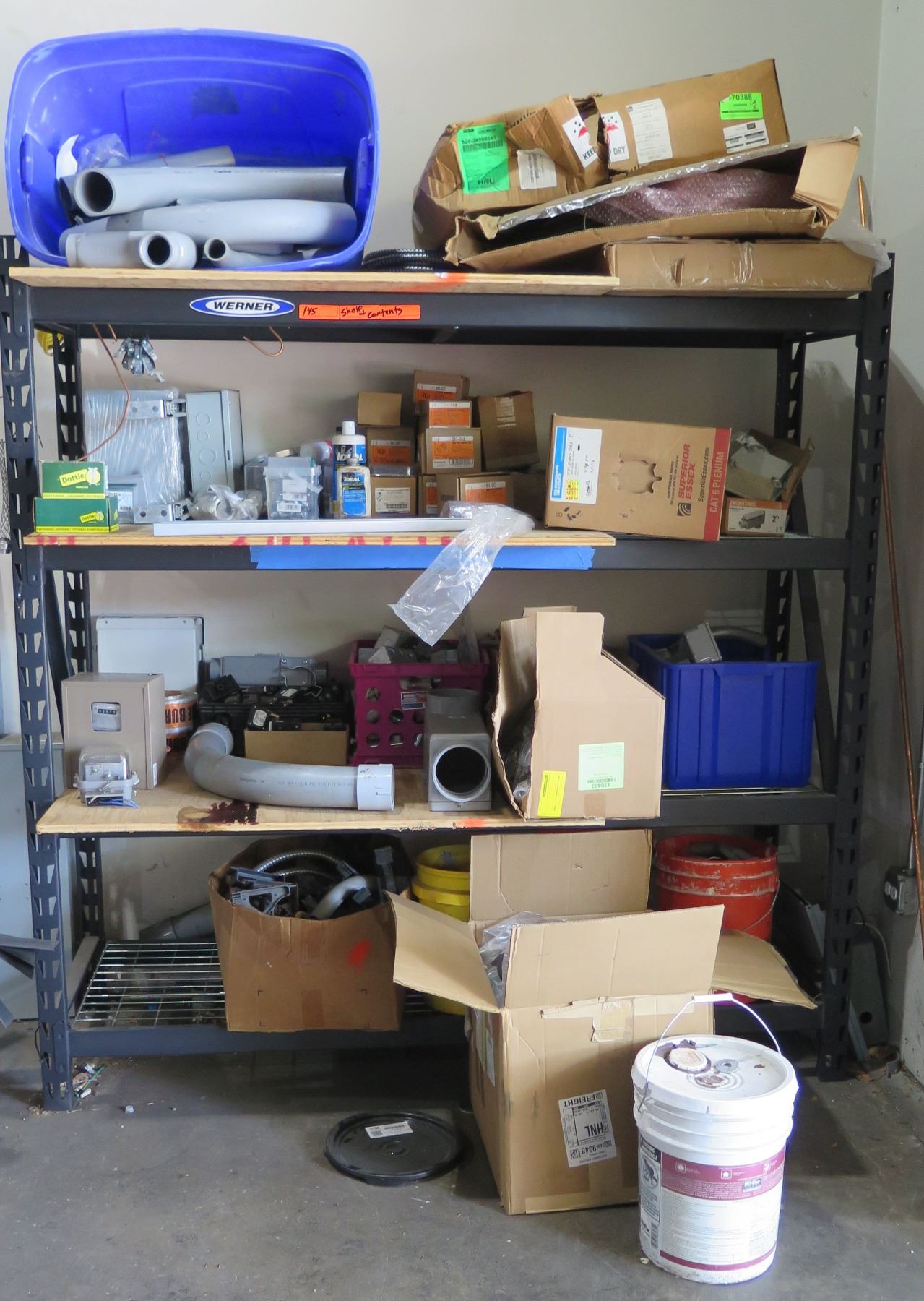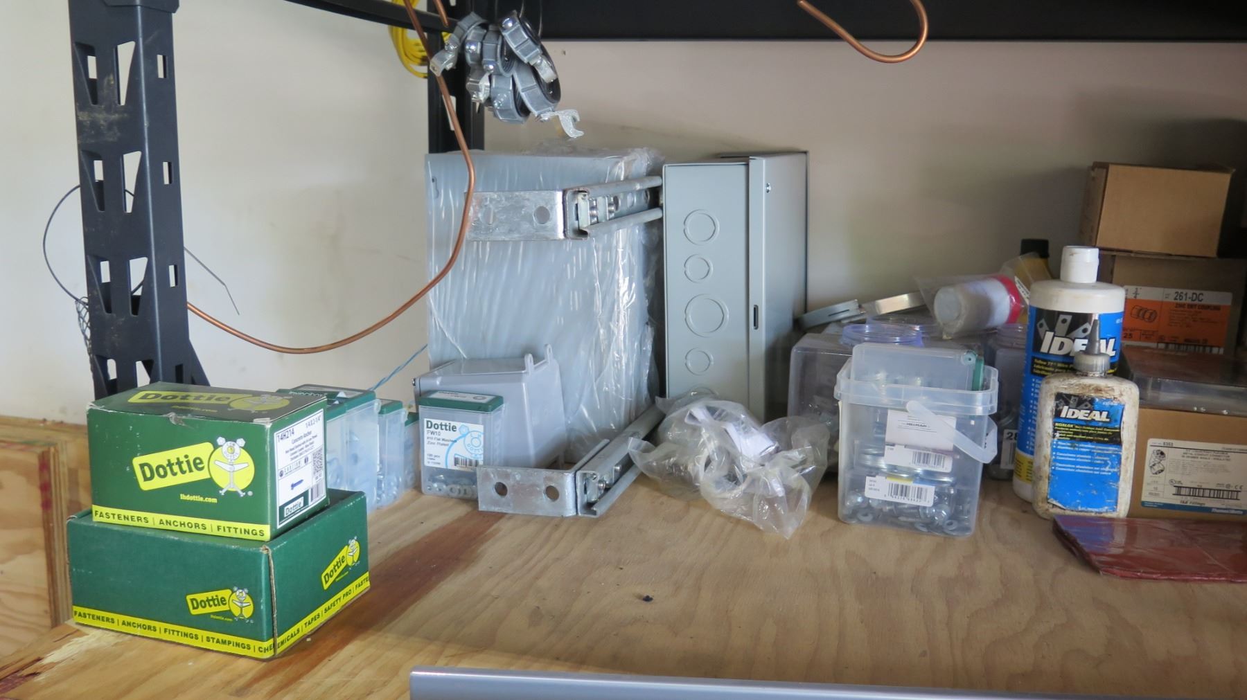 Metal Shelf with Contents: RFS Hybriflex, Dottie Fasteners, etc