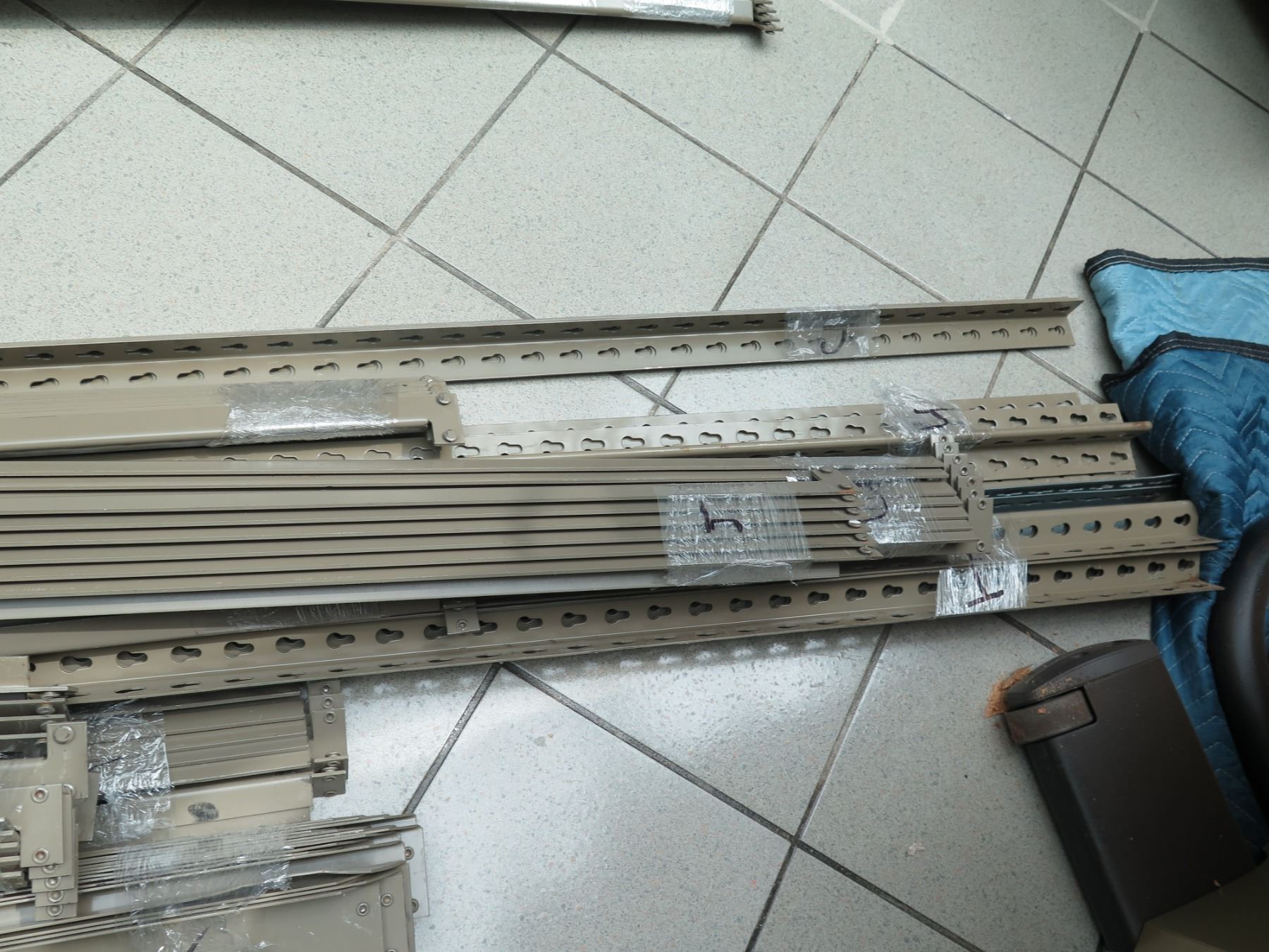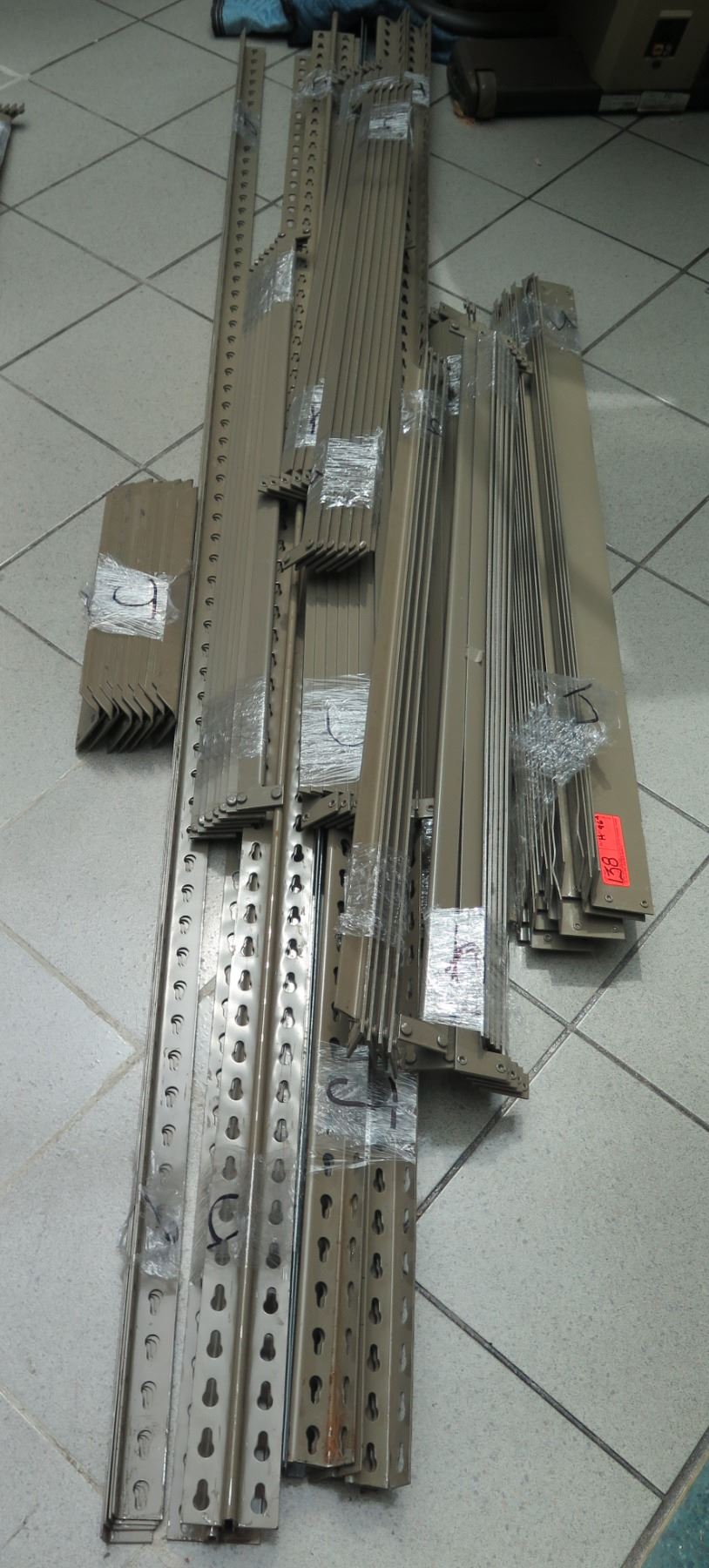 Metal Shelving Unit 96"Tall w/Corner Spines, Hardware & 10 Pressboard Shelving Sheets 42x15. See last photos for picture of pressboard sheets