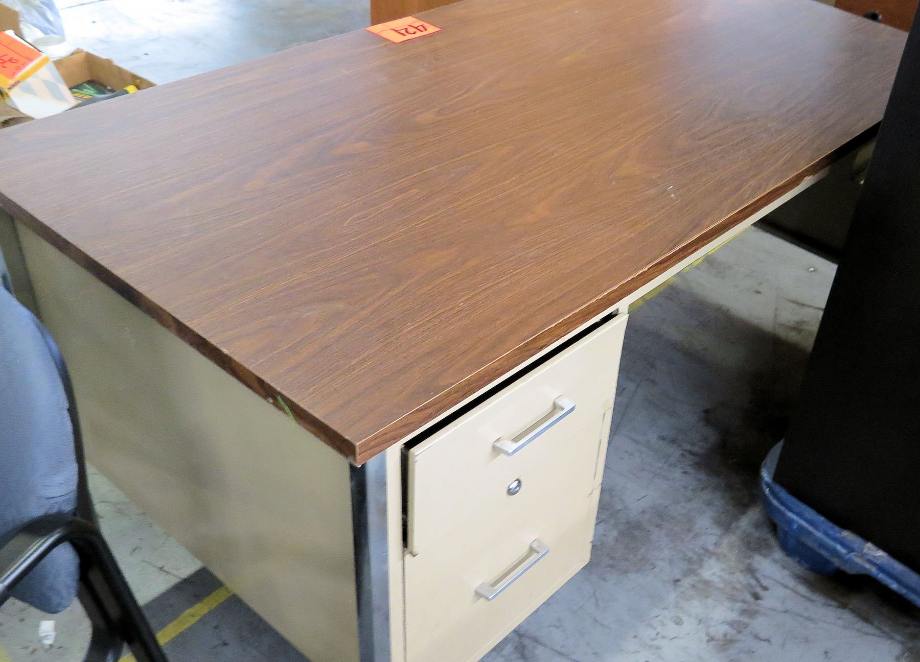 Metal Shop Desk with 2 Drawers & Laminate Wood Top