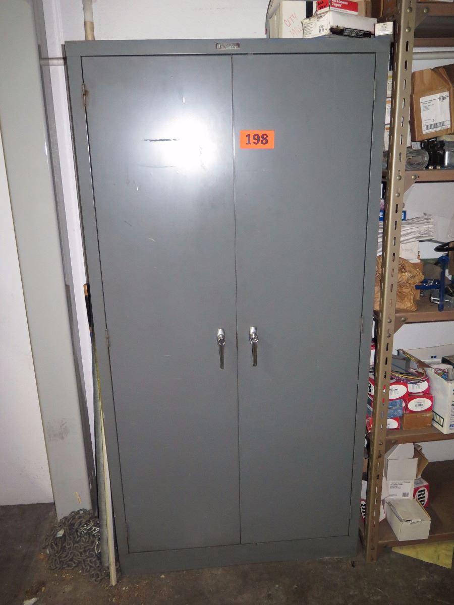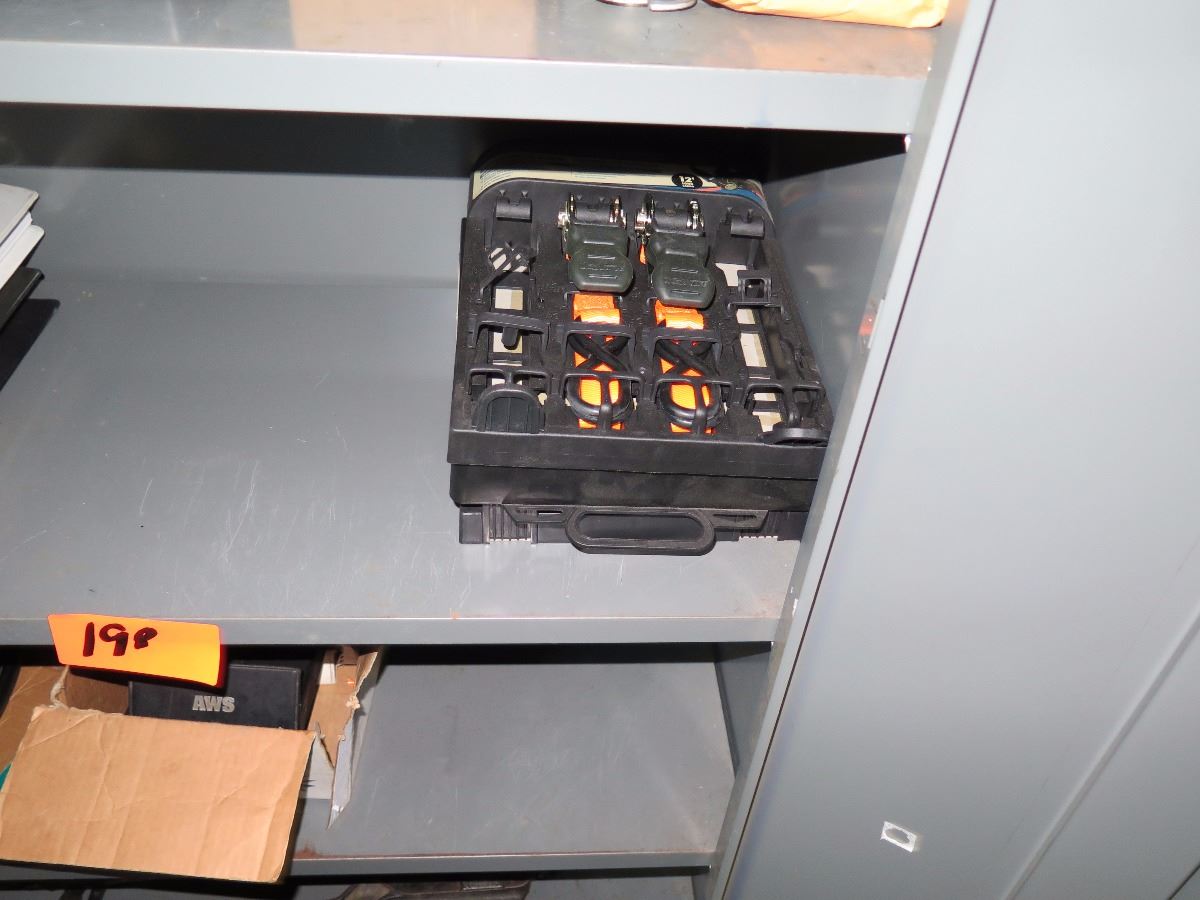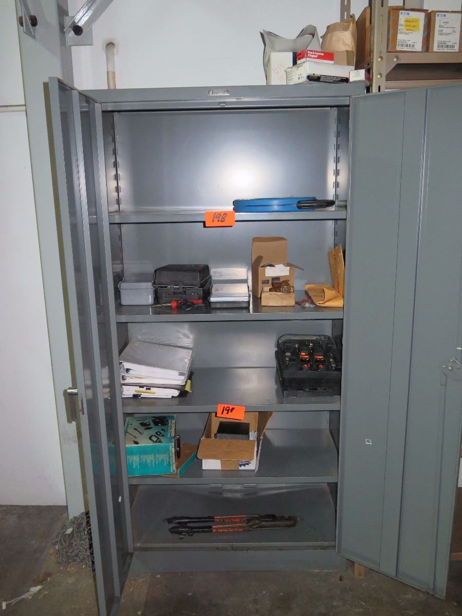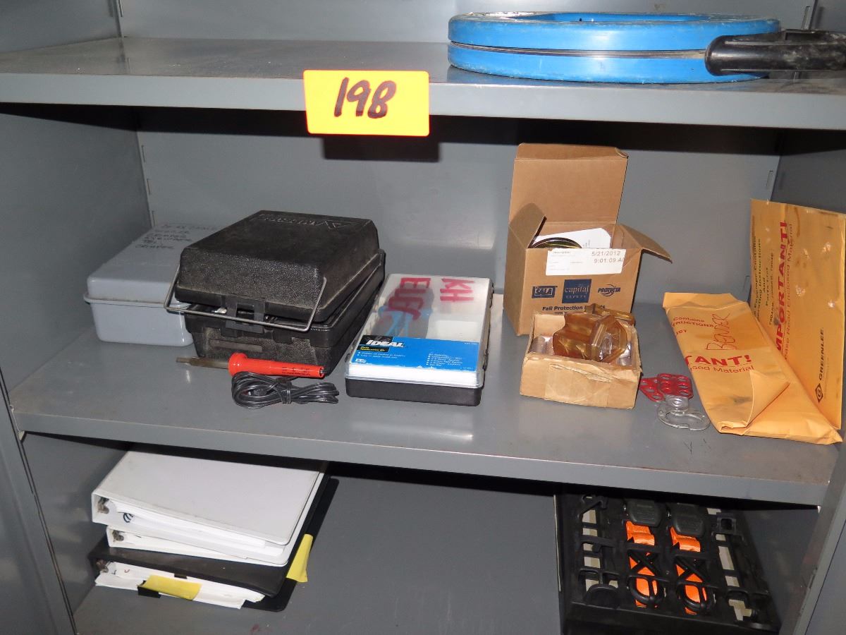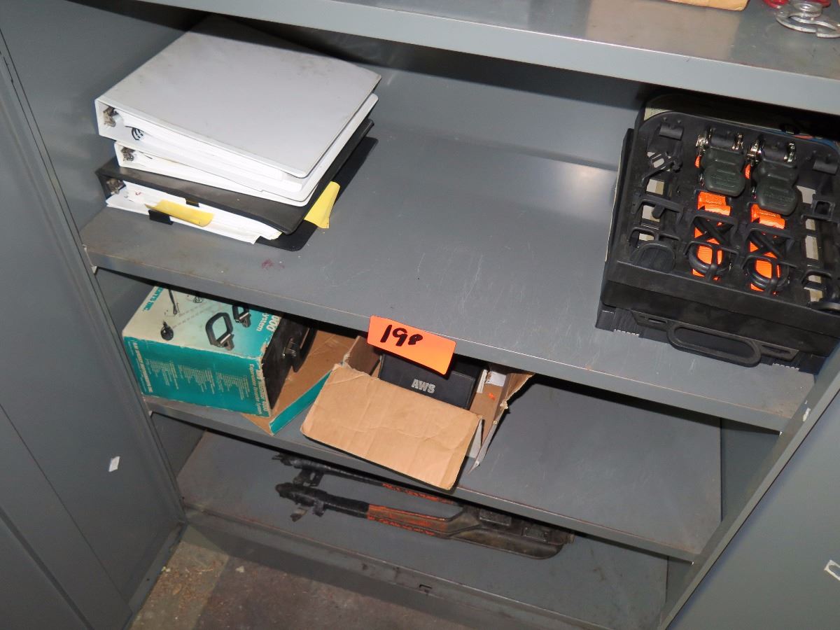 Metal Storage Cabinet (6'X3') w/Shelves and Misc. Contents - Ratchet Tie-Downs, Misc. Meters, etc.