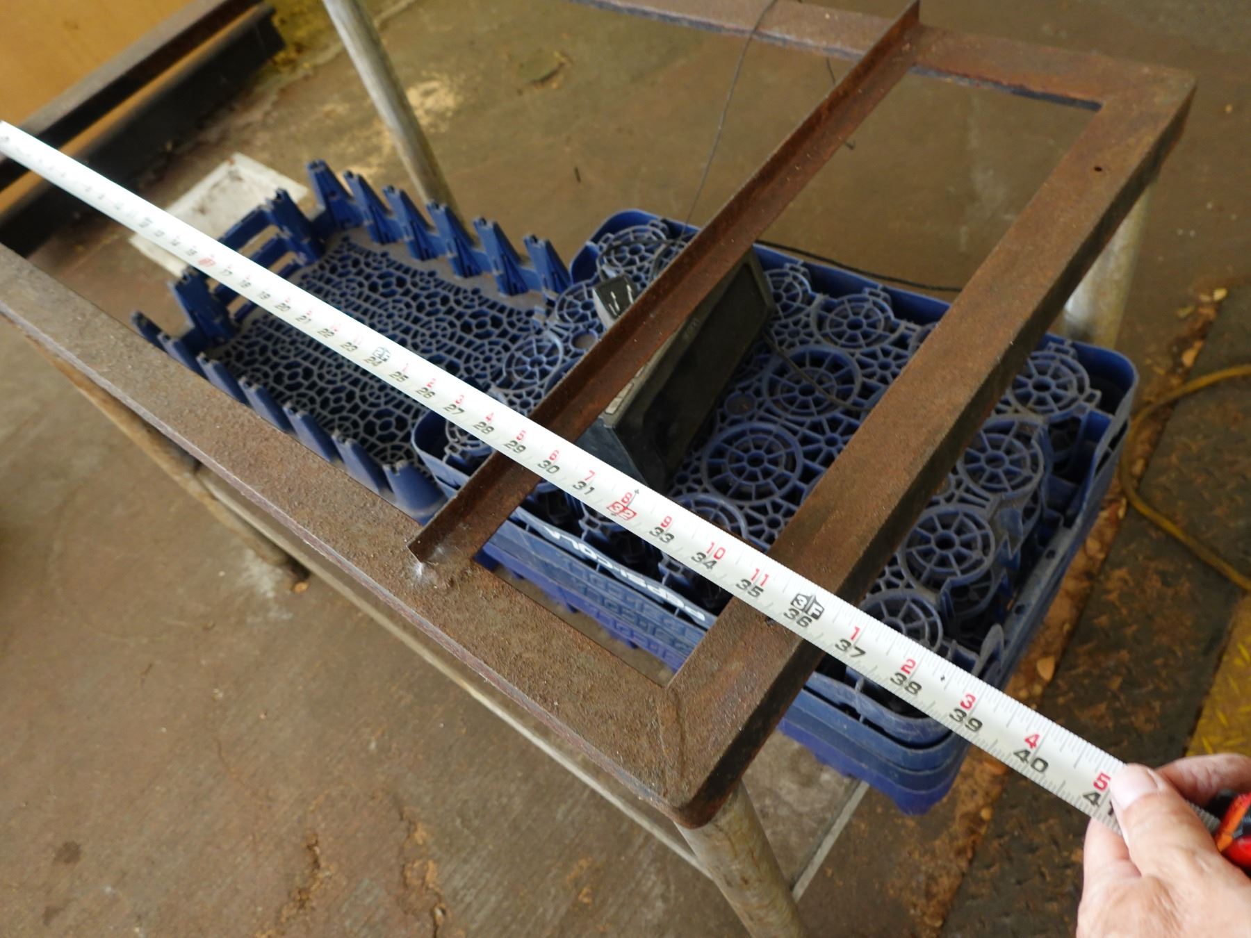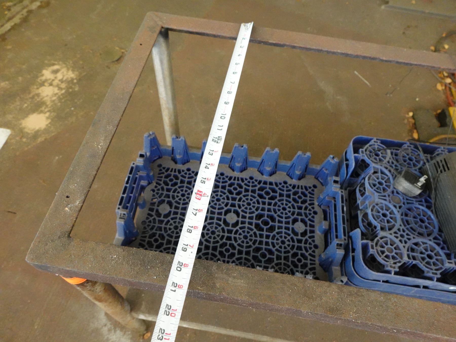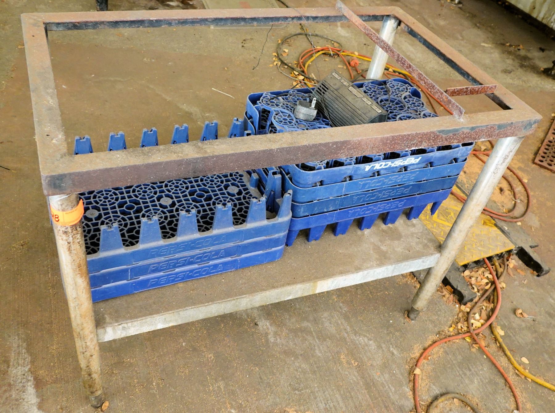 Metal Table Frame w/ Undershelf 36" x 21" x 27"H & Blue Plastic Racks.